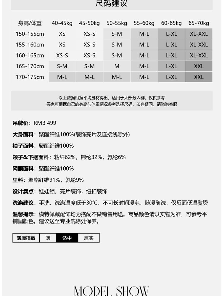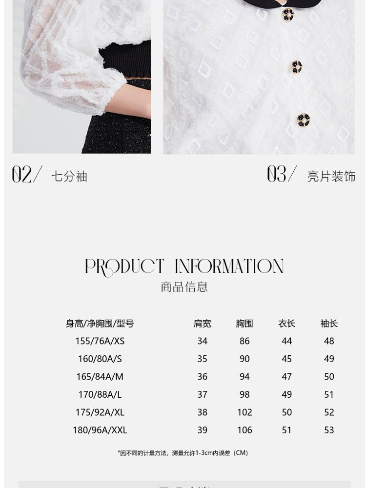 商品名称:【亮片装饰】春秋专柜款复古娃娃领蕾丝T恤衬衫女 196625