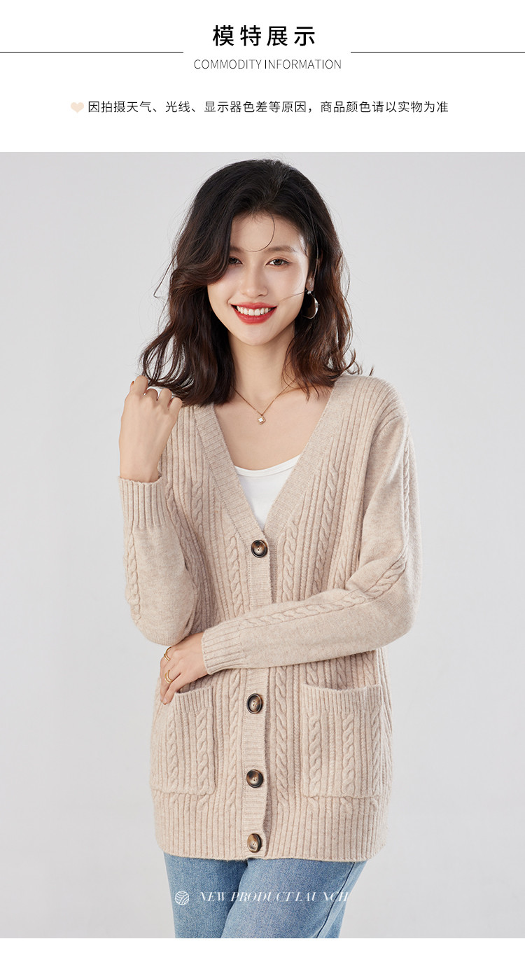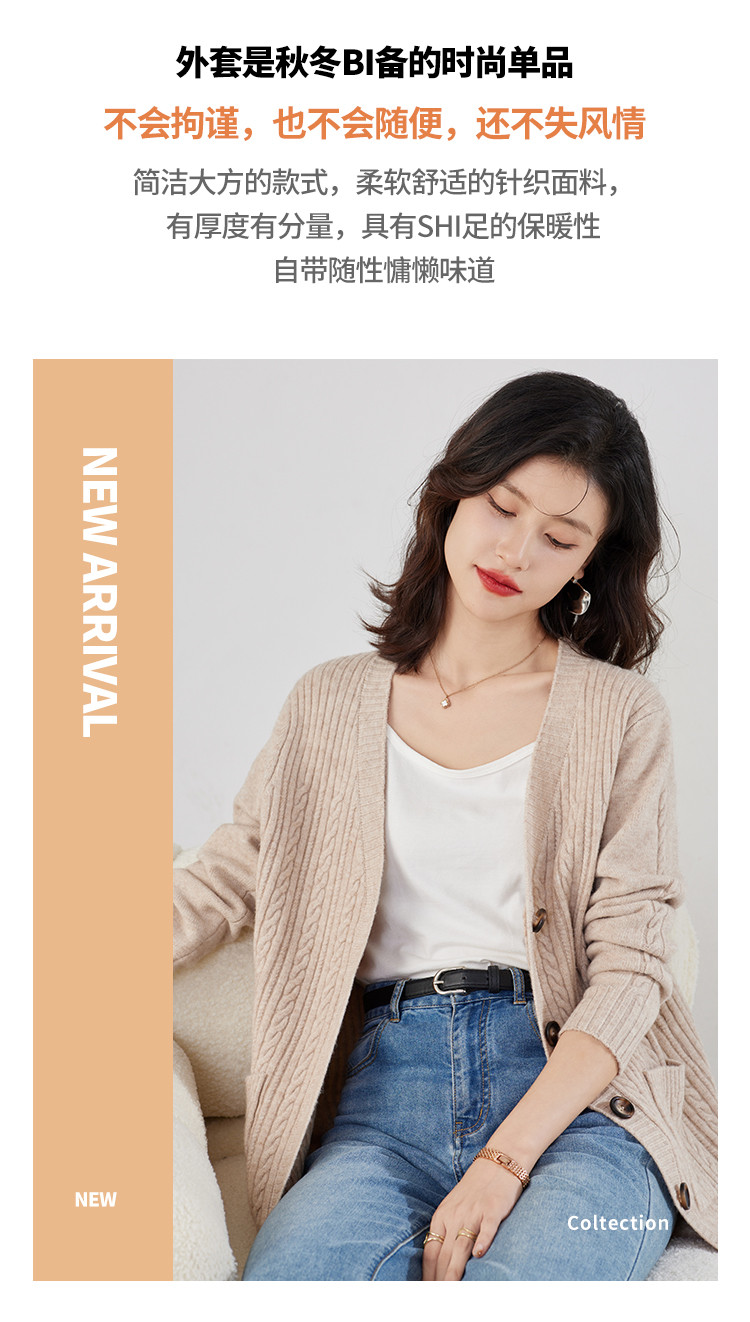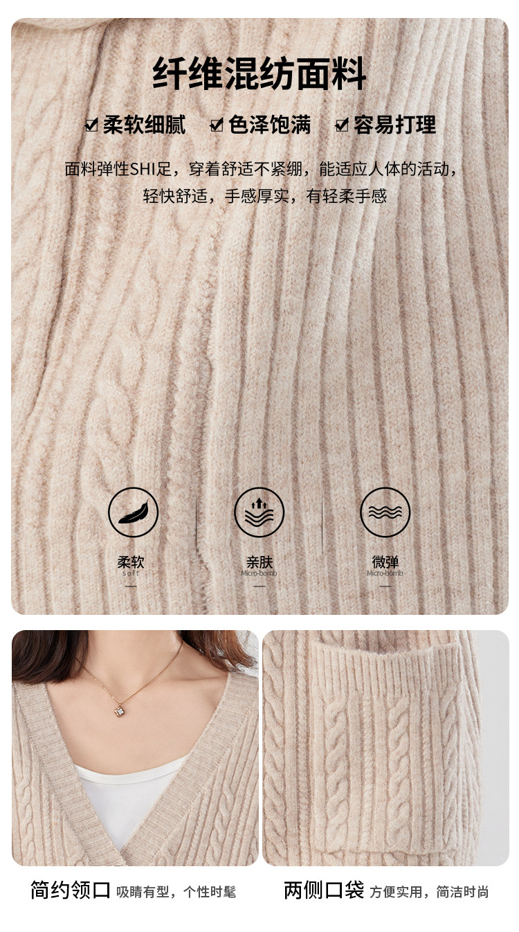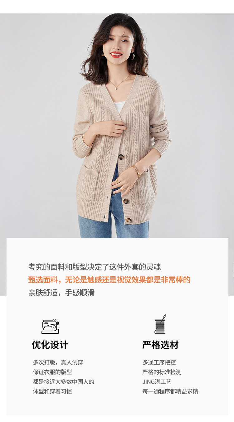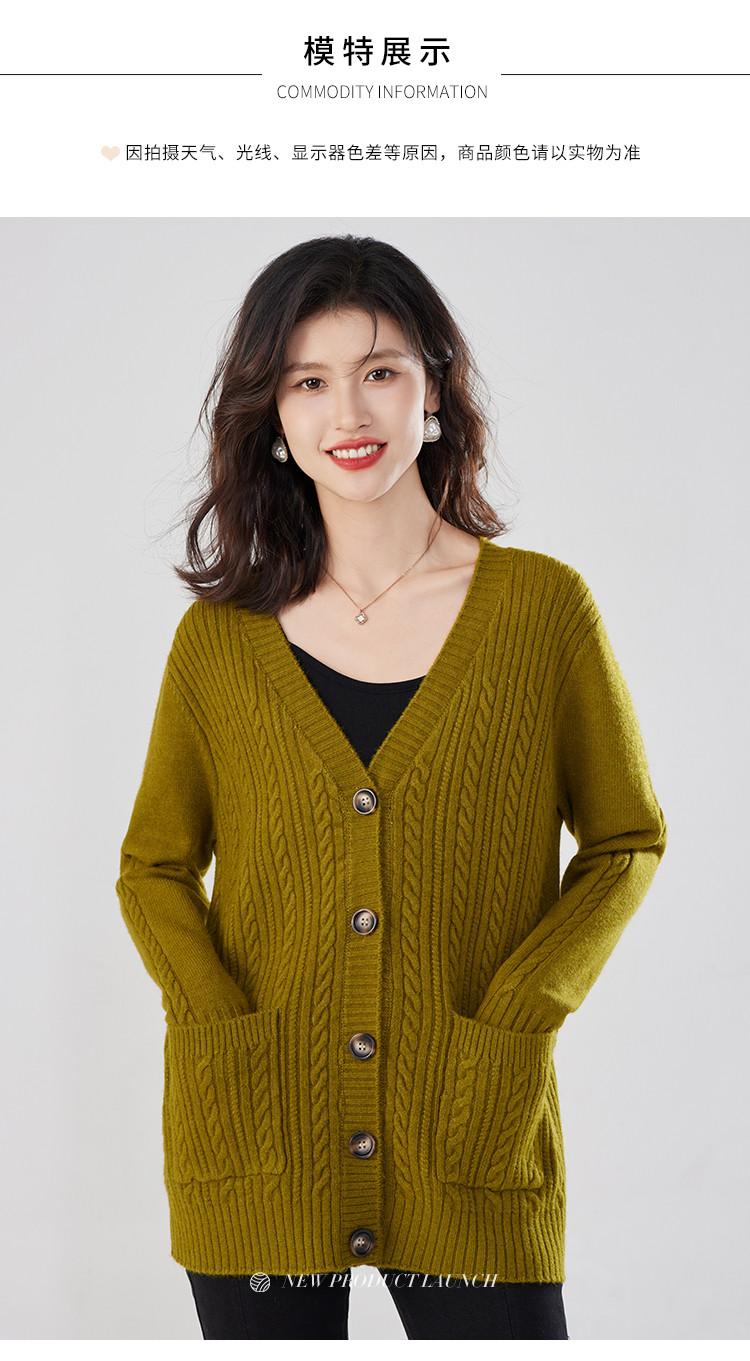 商品名称:【气质V领中长款】基础通勤百搭针织开衫外套女复古扭花毛衣外套 717151