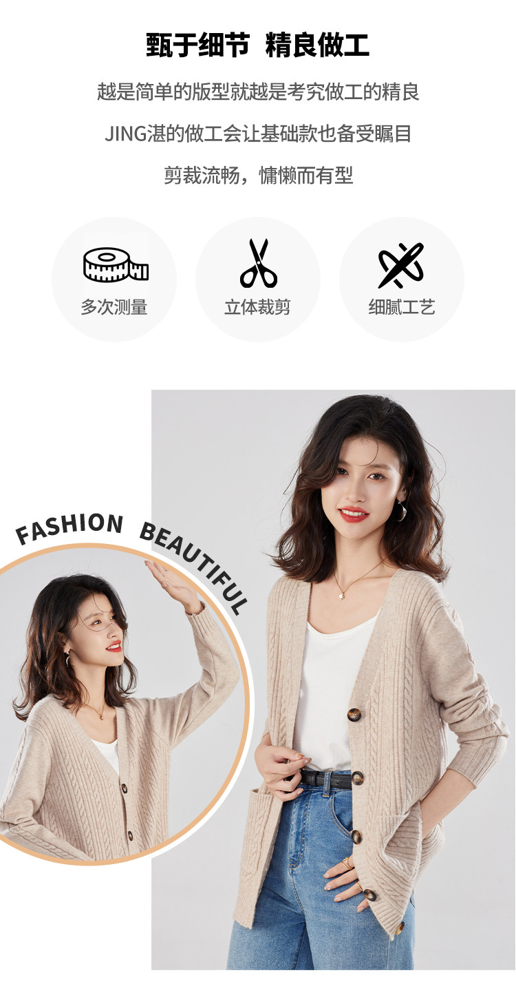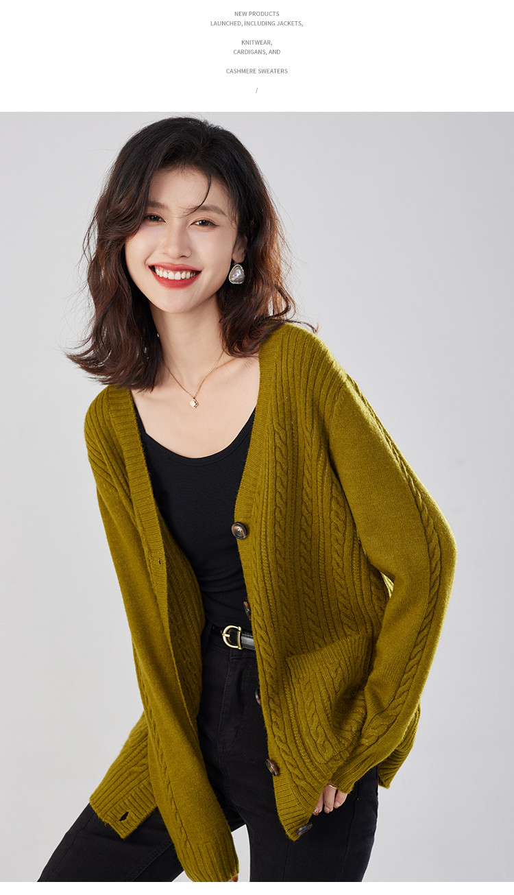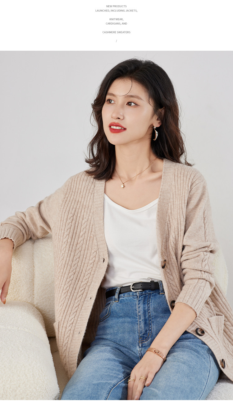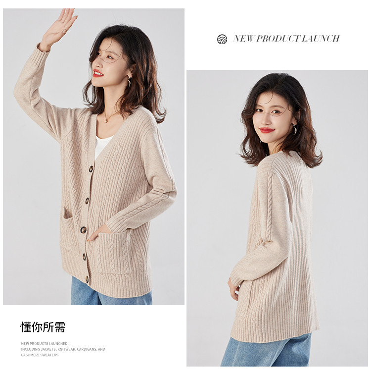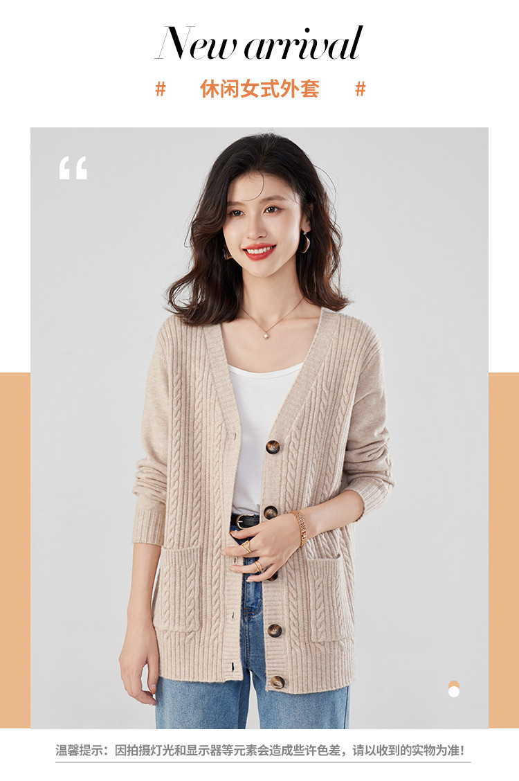 商品名称:【气质V领中长款】基础通勤百搭针织开衫外套女复古扭花毛衣外套 717151