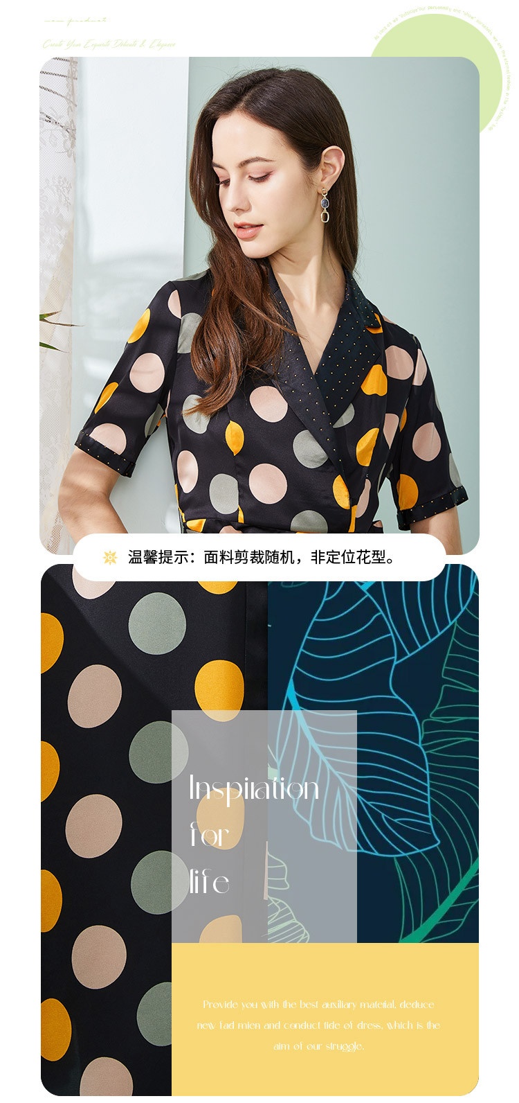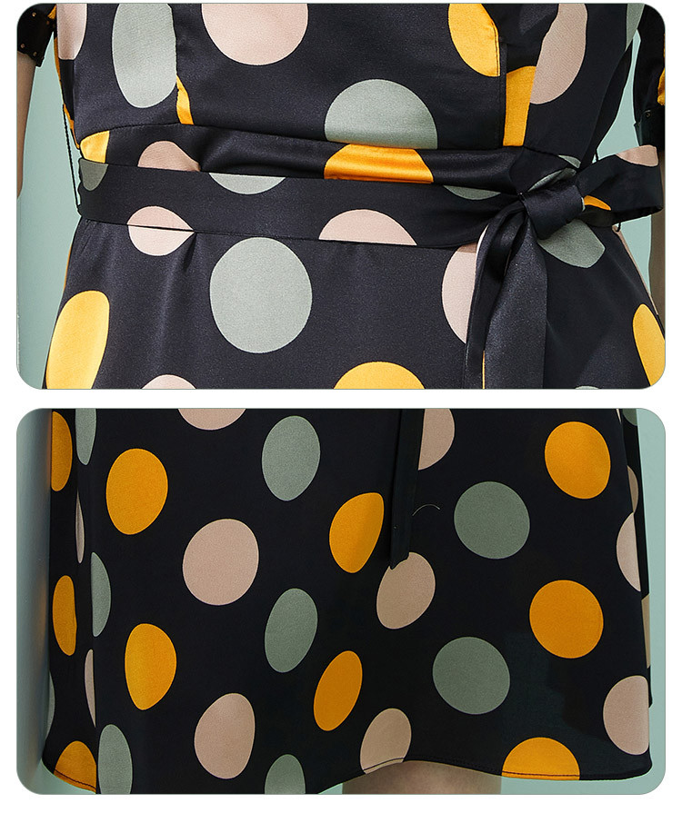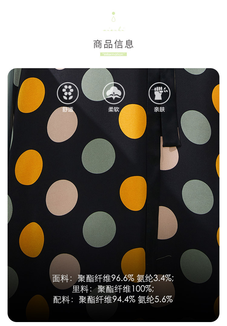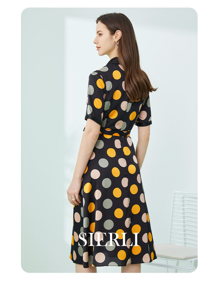 商品名称:商场同款秋季彩色不规则波点印花撞色烫钻西装领连衣裙 963551