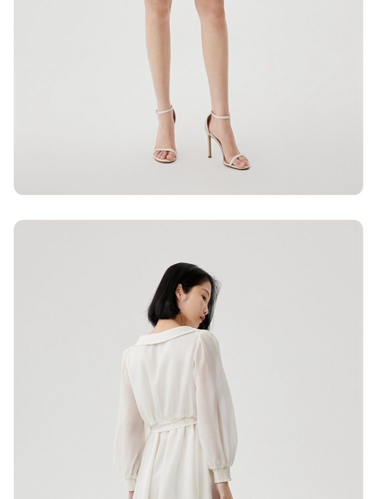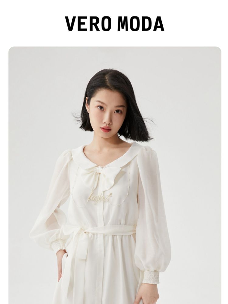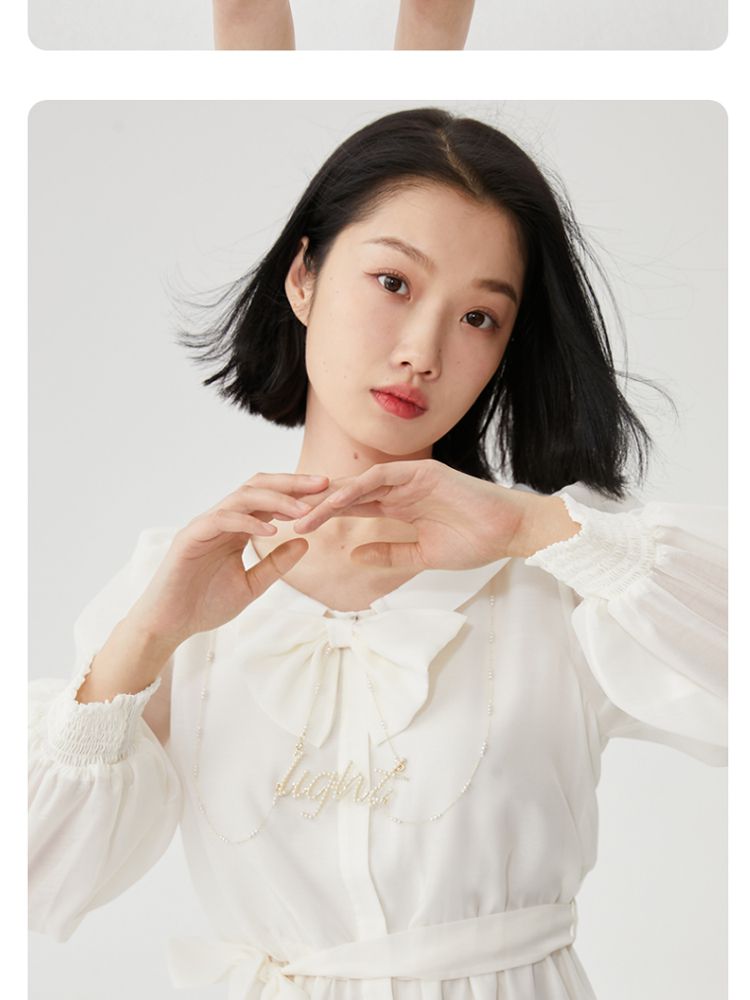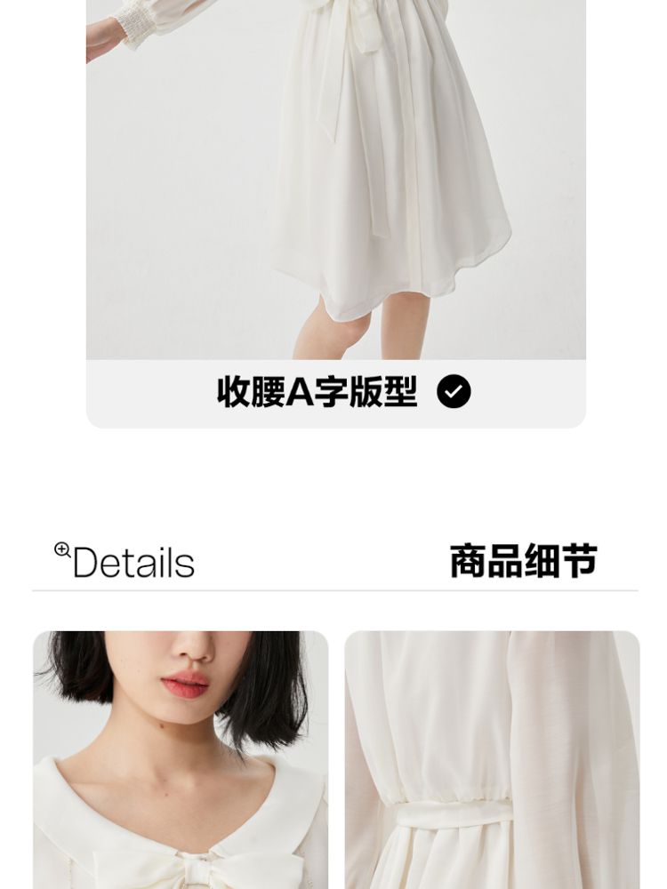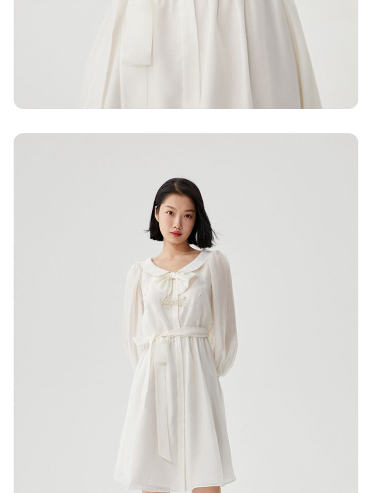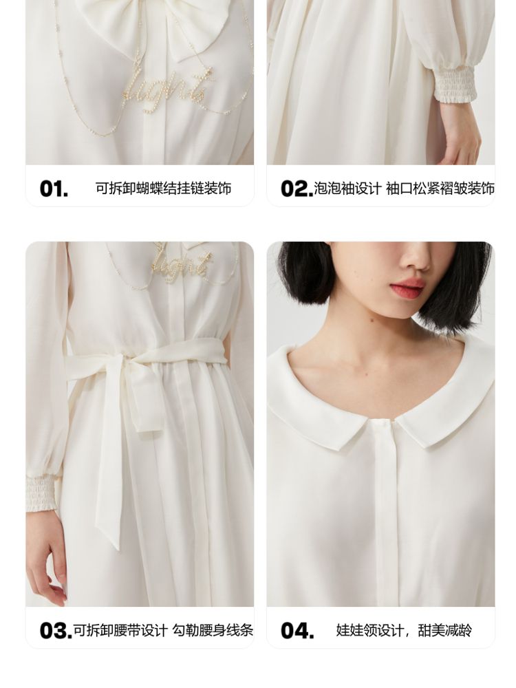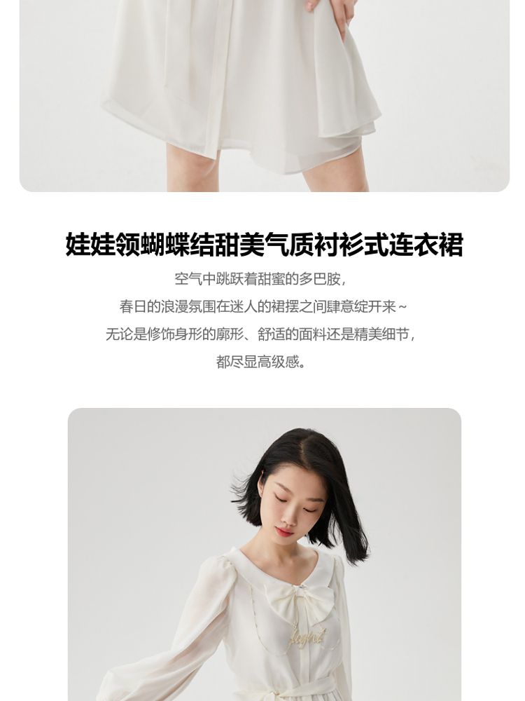 商品名称:【商场同款】春夏娃娃领泡泡袖蝴蝶结甜美衬衫式连衣裙百搭时尚 069713