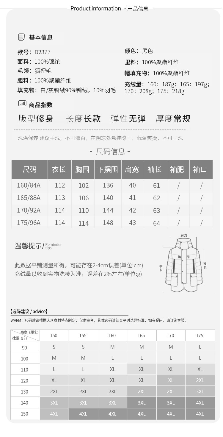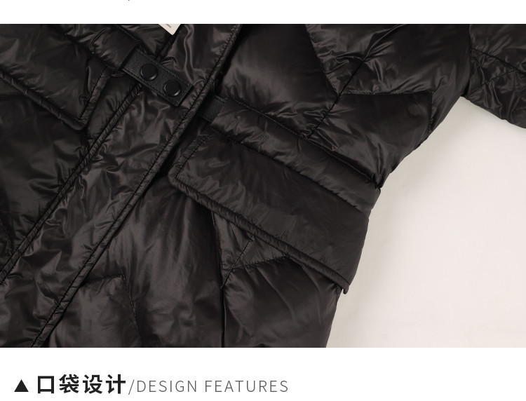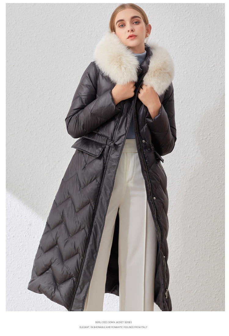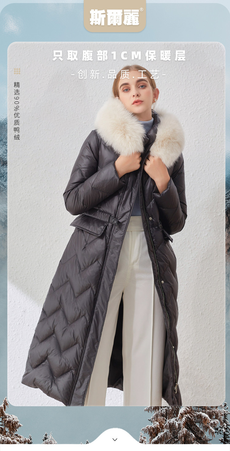 商品名称:【好物推荐】天然狐狸毛领翻盖口袋连帽保暖长款女修身显瘦羽绒服 109599