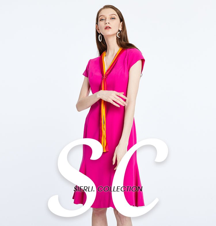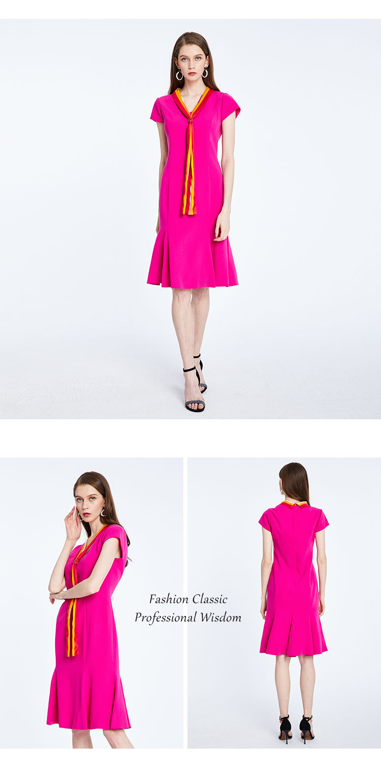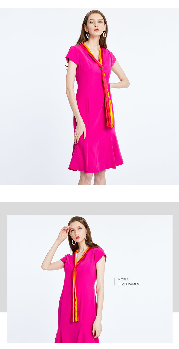 商场同款丝质修身中长款短袖连衣裙 813343