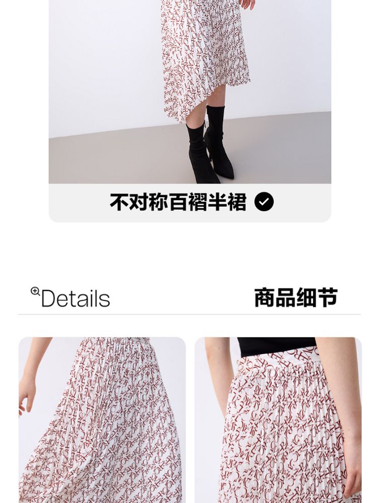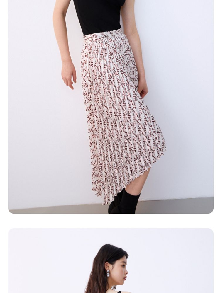 优雅高腰不对称百褶中长裙女气质百搭时尚春夏 192081