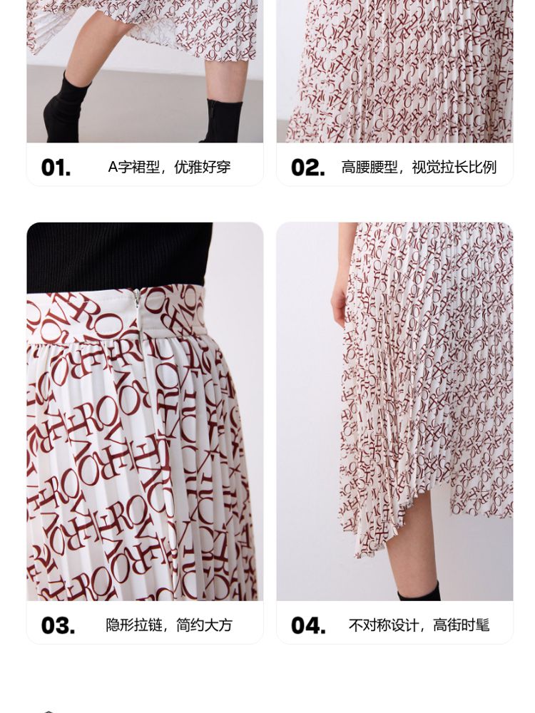 商品名称:优雅高腰不对称百褶中长裙女气质百搭时尚春夏 192081