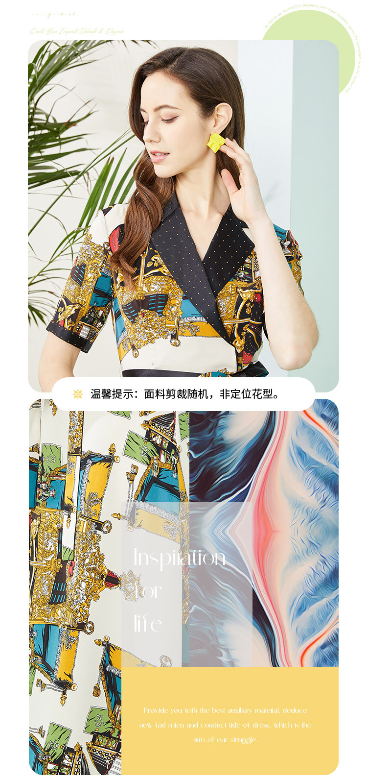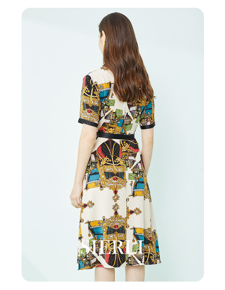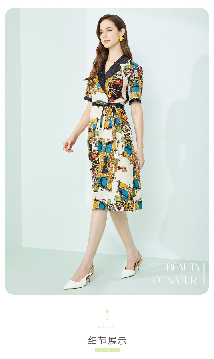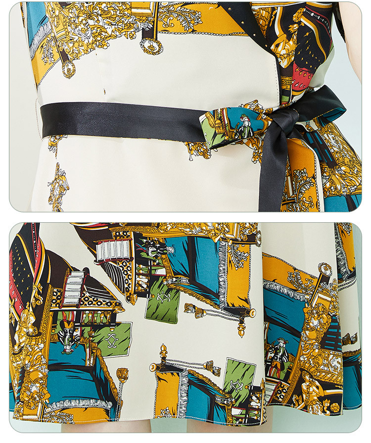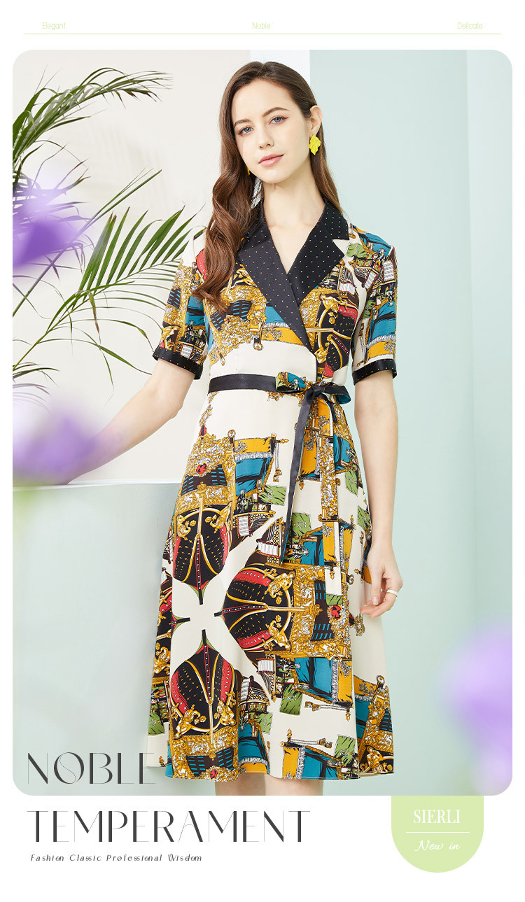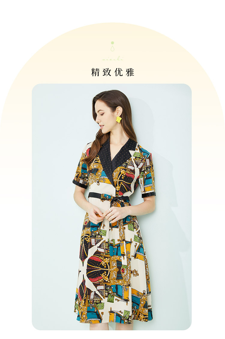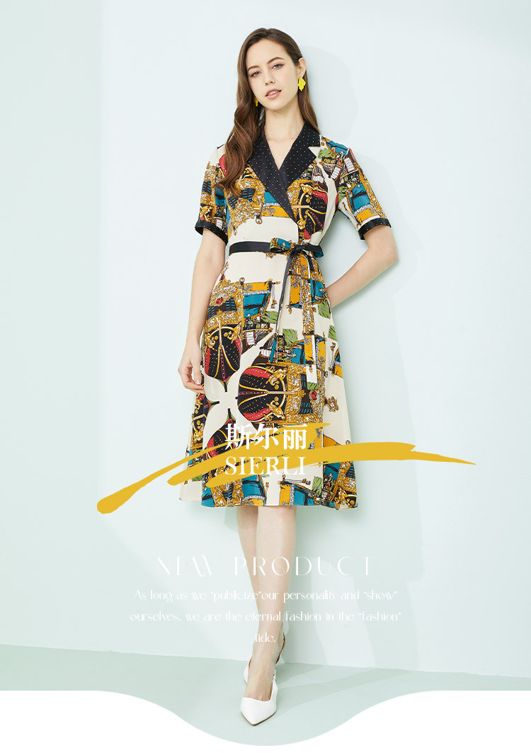 商品名称:商场同款秋季新小奢华皇冠印花撞色西装烫钻微收腰系带连衣裙 255967
