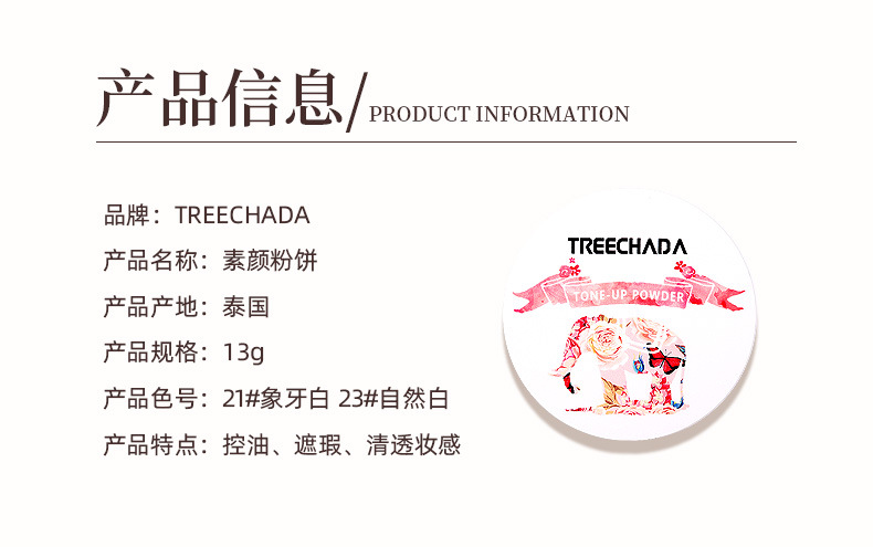 商品名称:TREECHADA 素颜粉饼 13g 修颜定妆粉控油持久自然遮瑕细腻轻薄