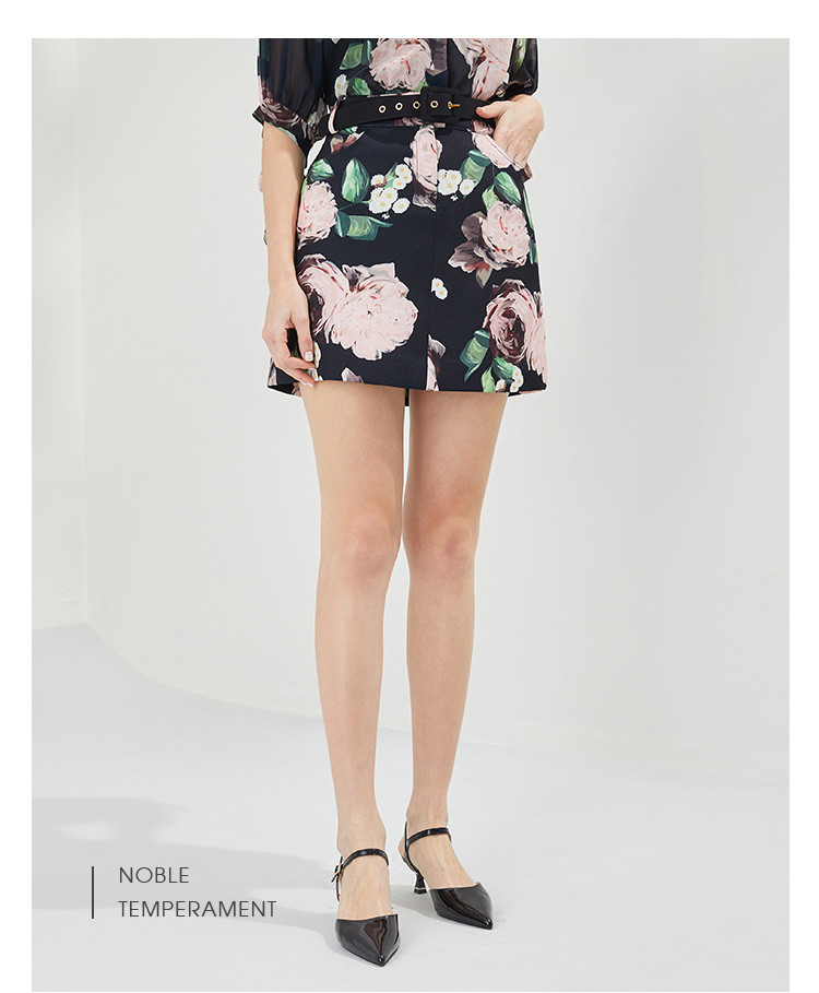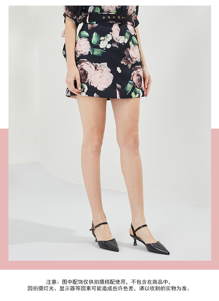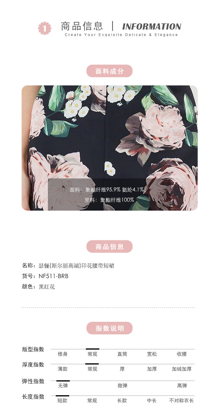 商品名称:夏季A字显瘦高腰印花腰带短裙百搭半截裙 544095
