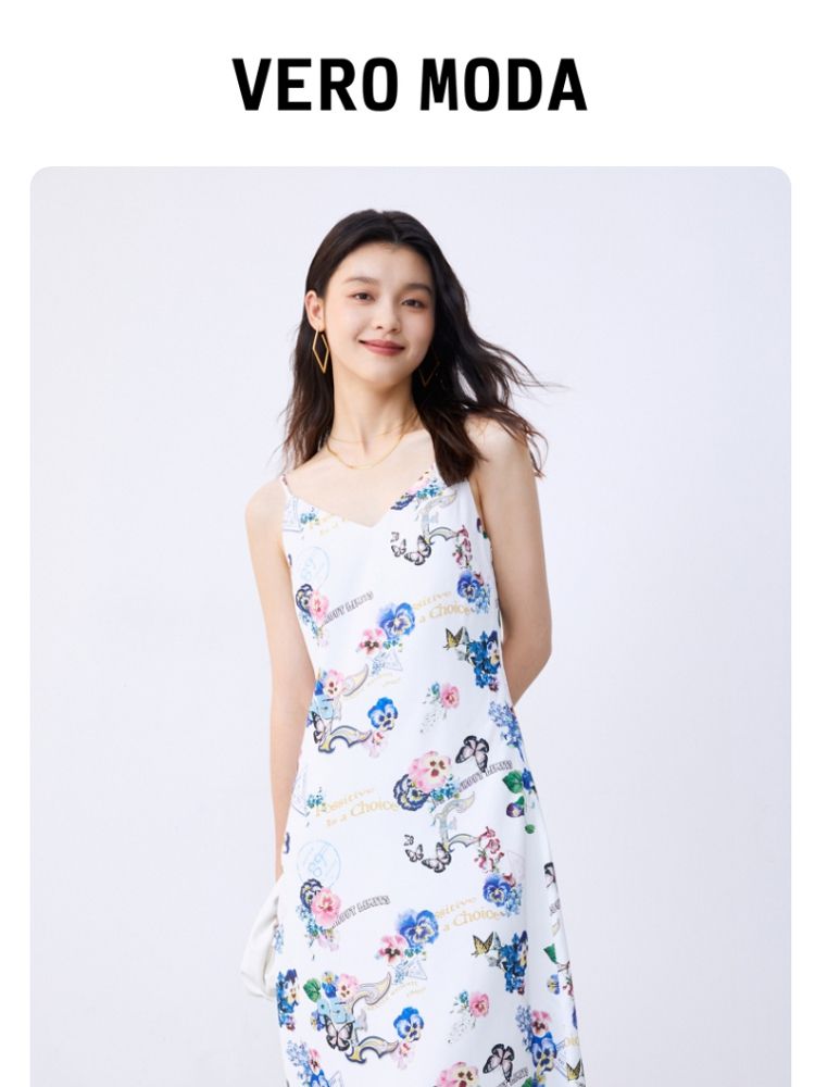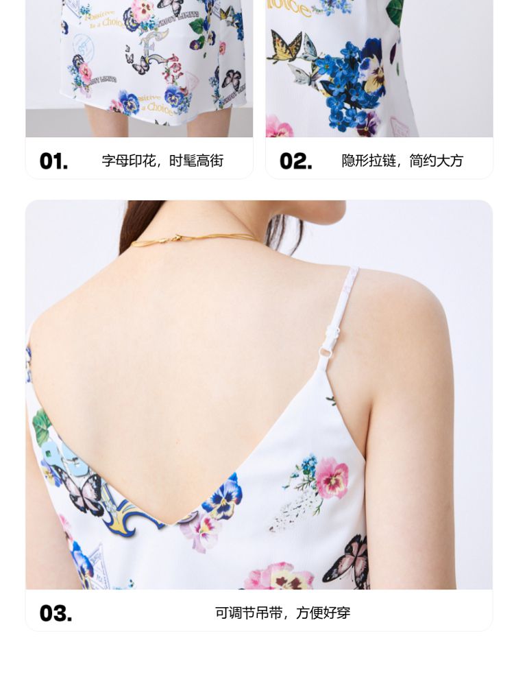 商品名称:【专柜款】春夏优雅印花吊带连衣裙女气质百搭时尚 391825