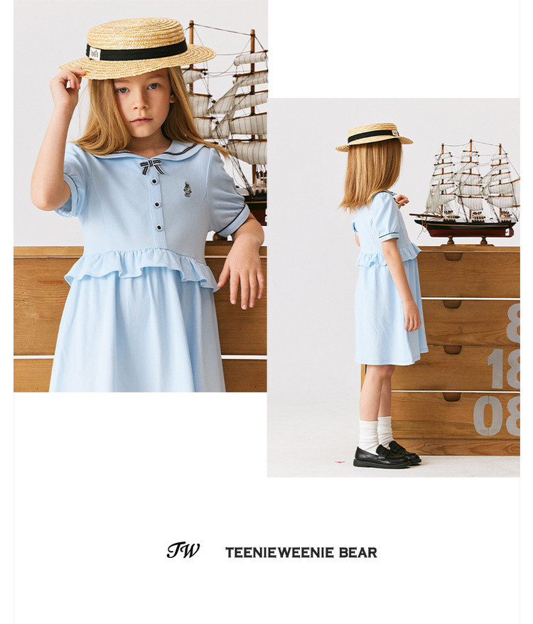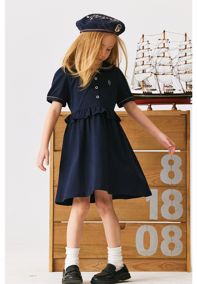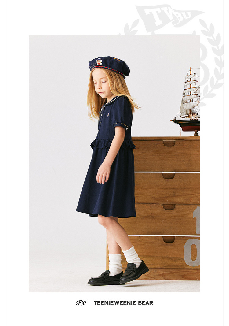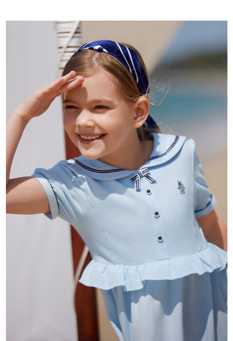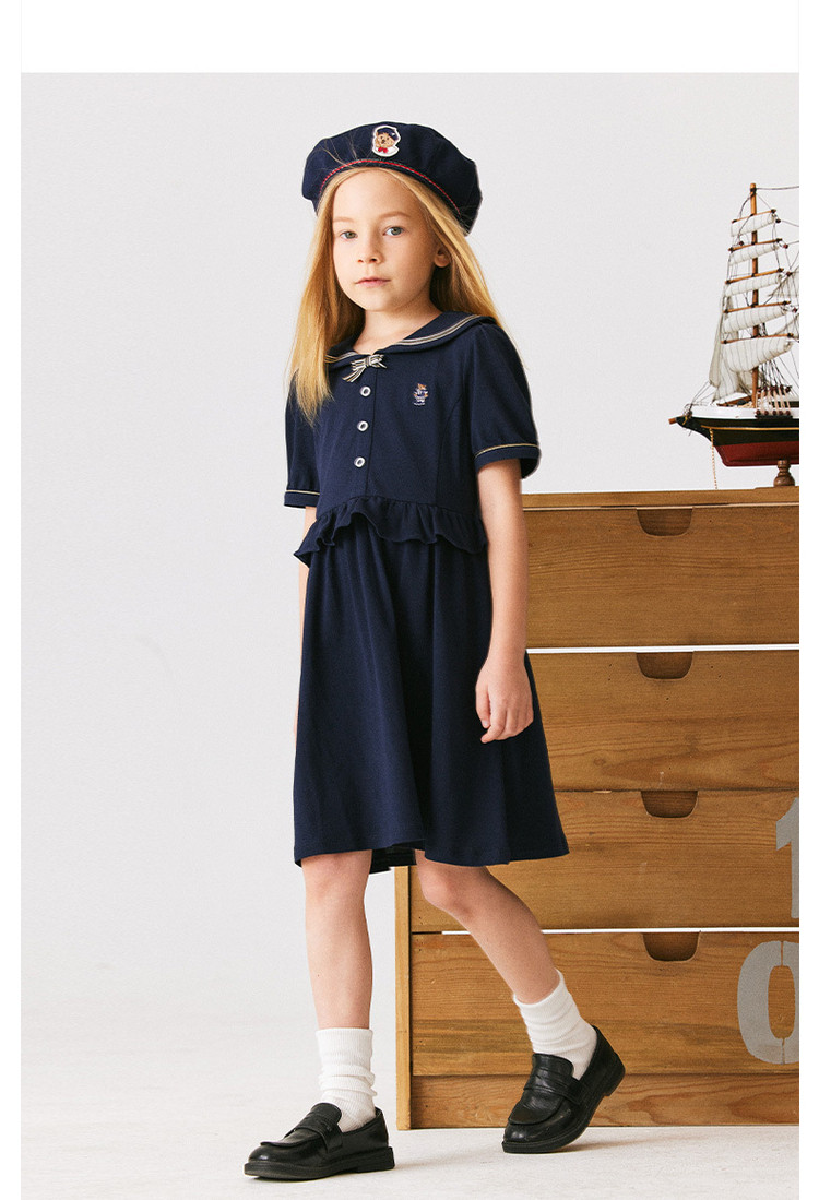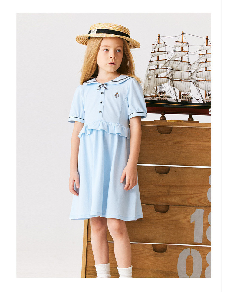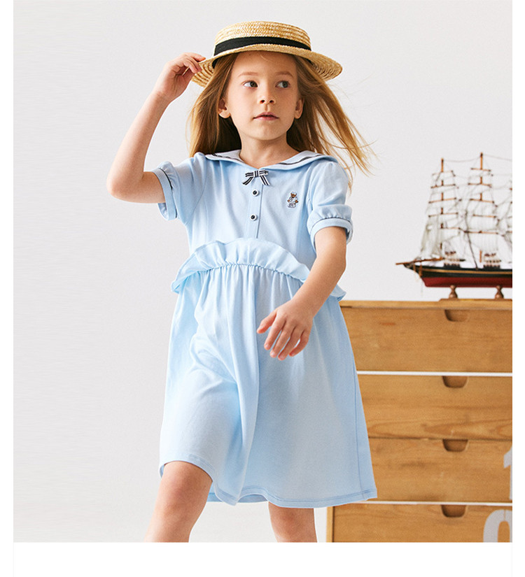 商品名称:小熊童装女童夏季休闲俏皮可爱水手领连衣裙 051969
