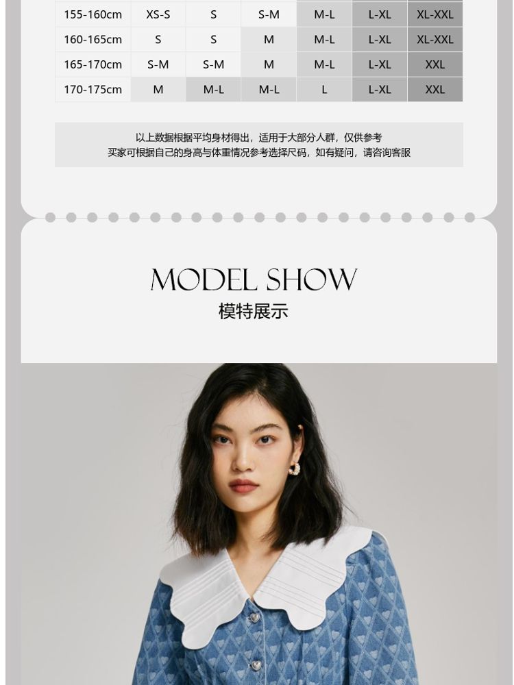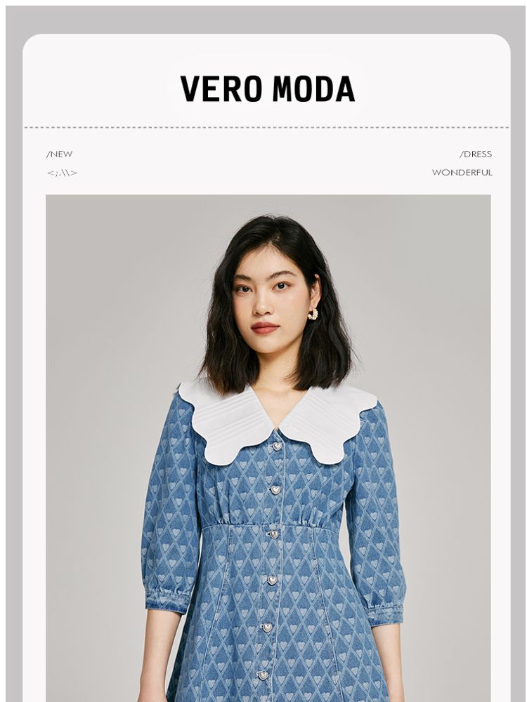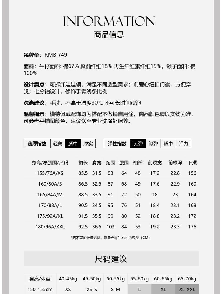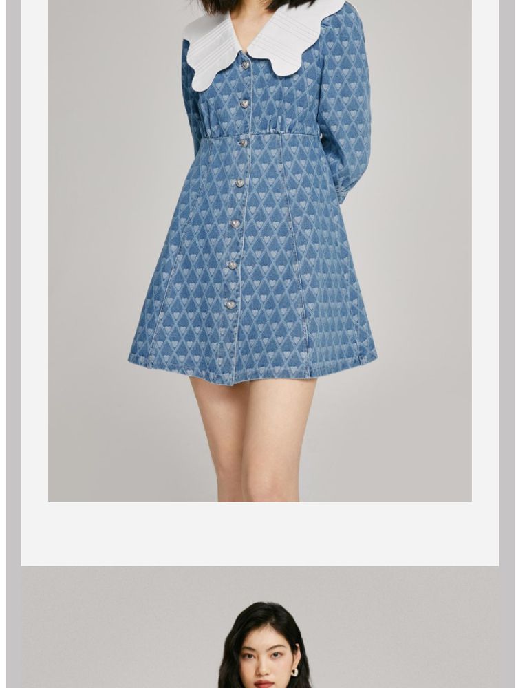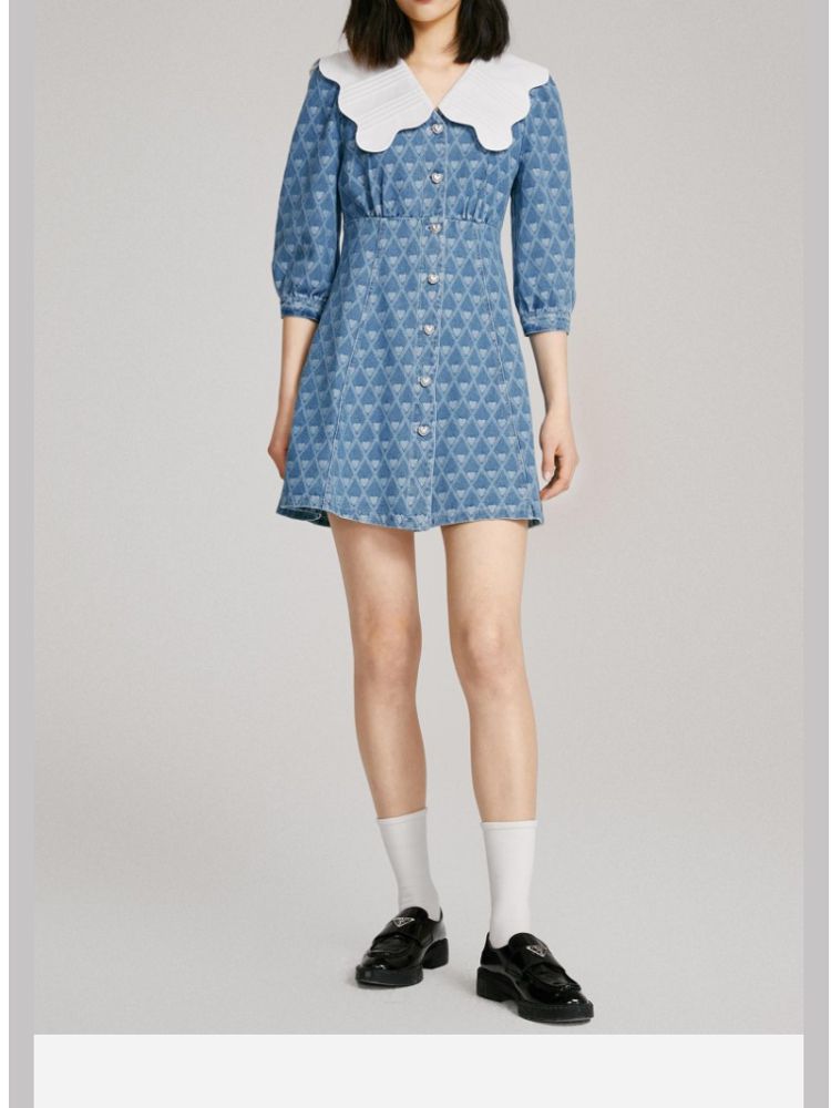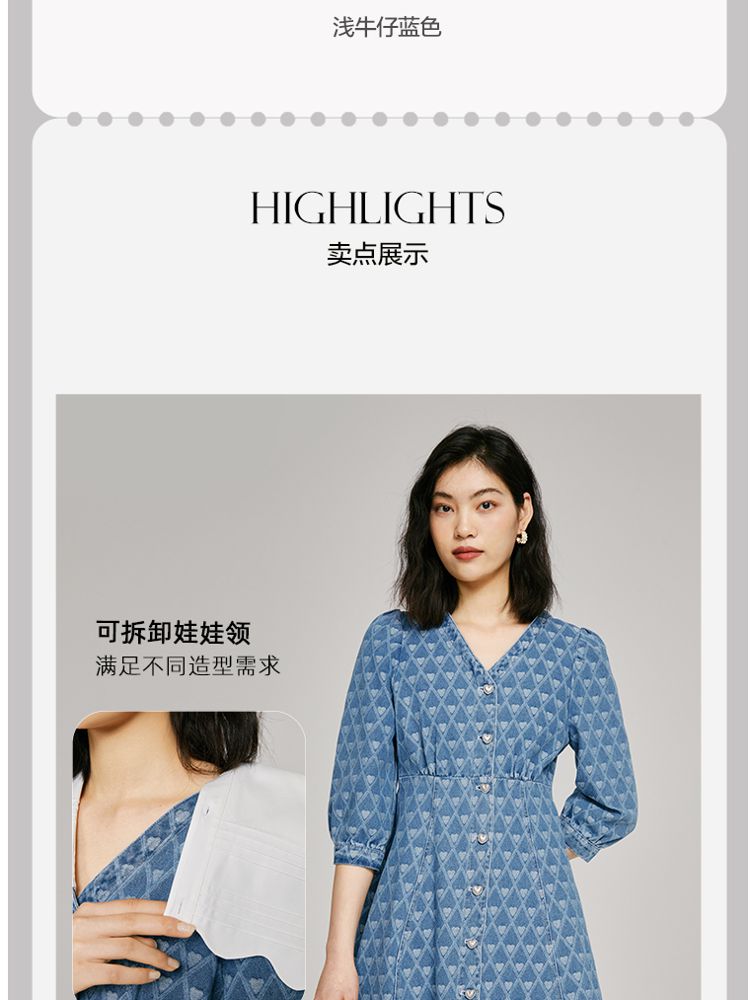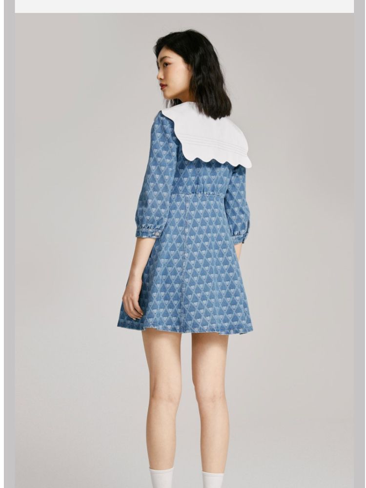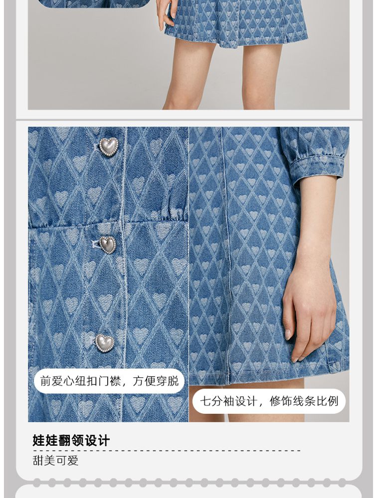商品名称:【爱心设计】专柜同款甜美娃娃翻领修身牛仔连衣裙 840401