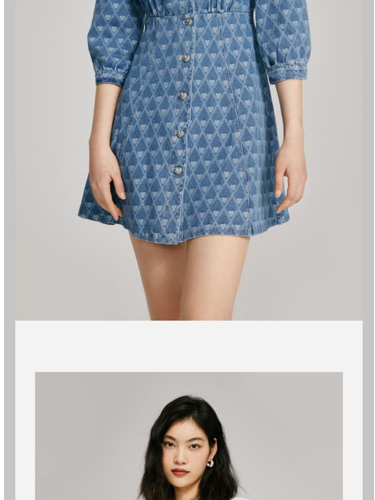 【爱心设计】专柜同款甜美娃娃翻领修身牛仔连衣裙 840401