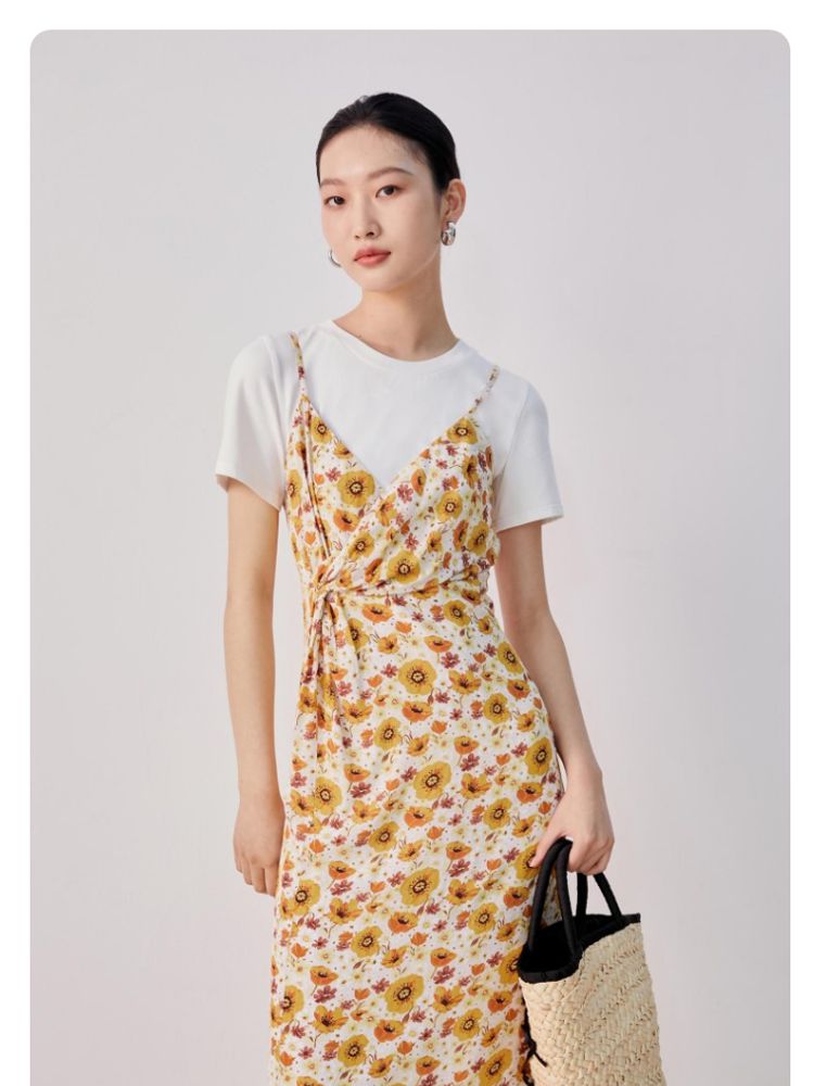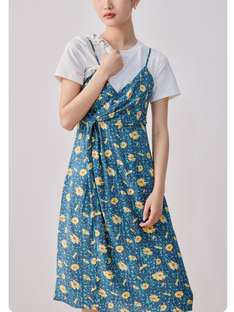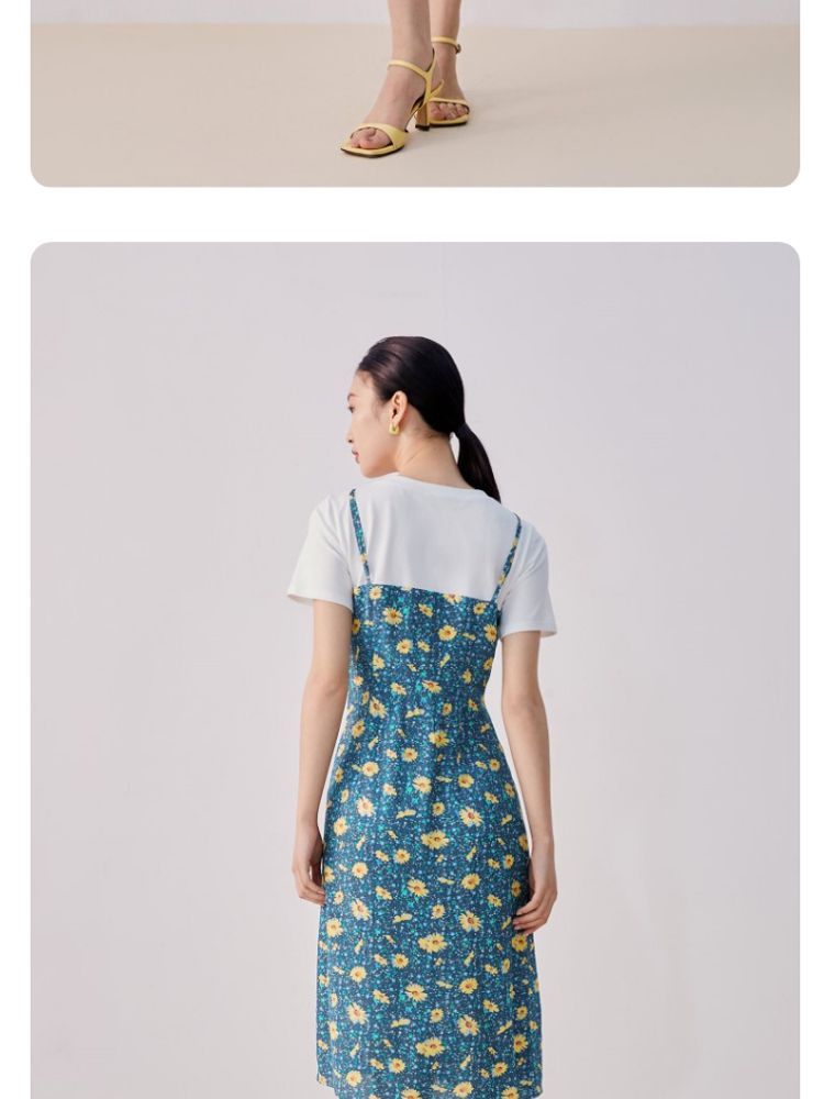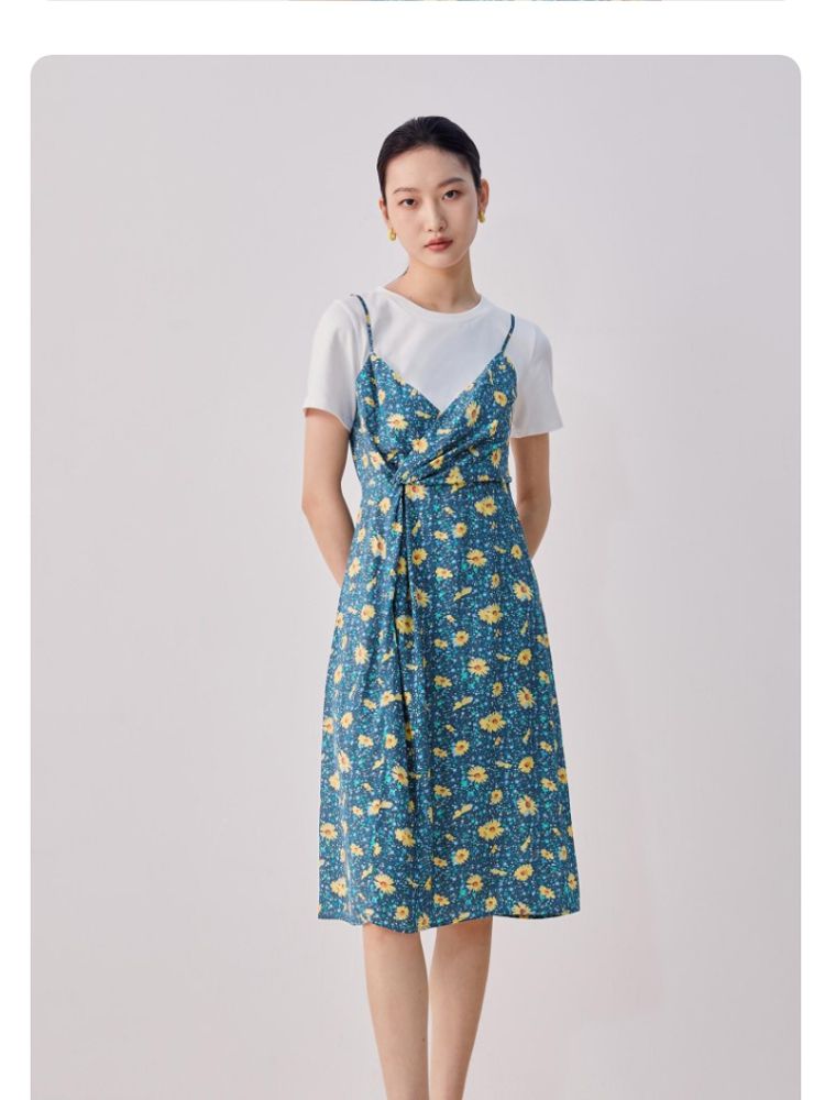 【假两件吊带裙】春夏直身圆领印花甜美法式连衣裙气质百搭时尚 720465
