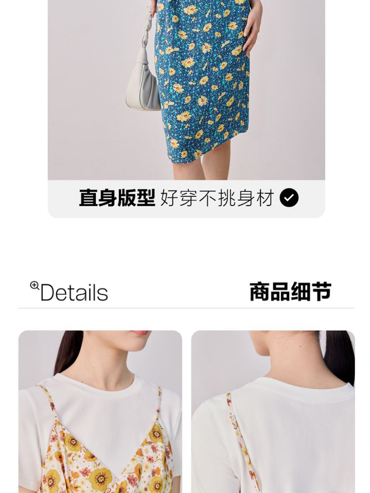 商品名称:【假两件吊带裙】春夏直身圆领印花甜美法式连衣裙气质百搭时尚 720465