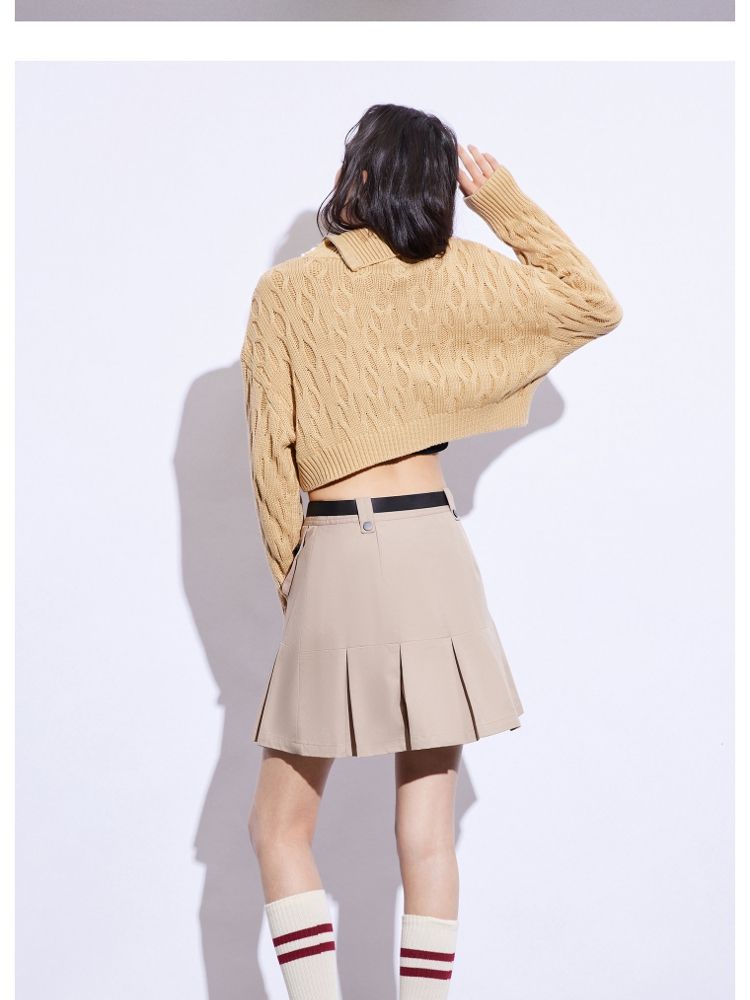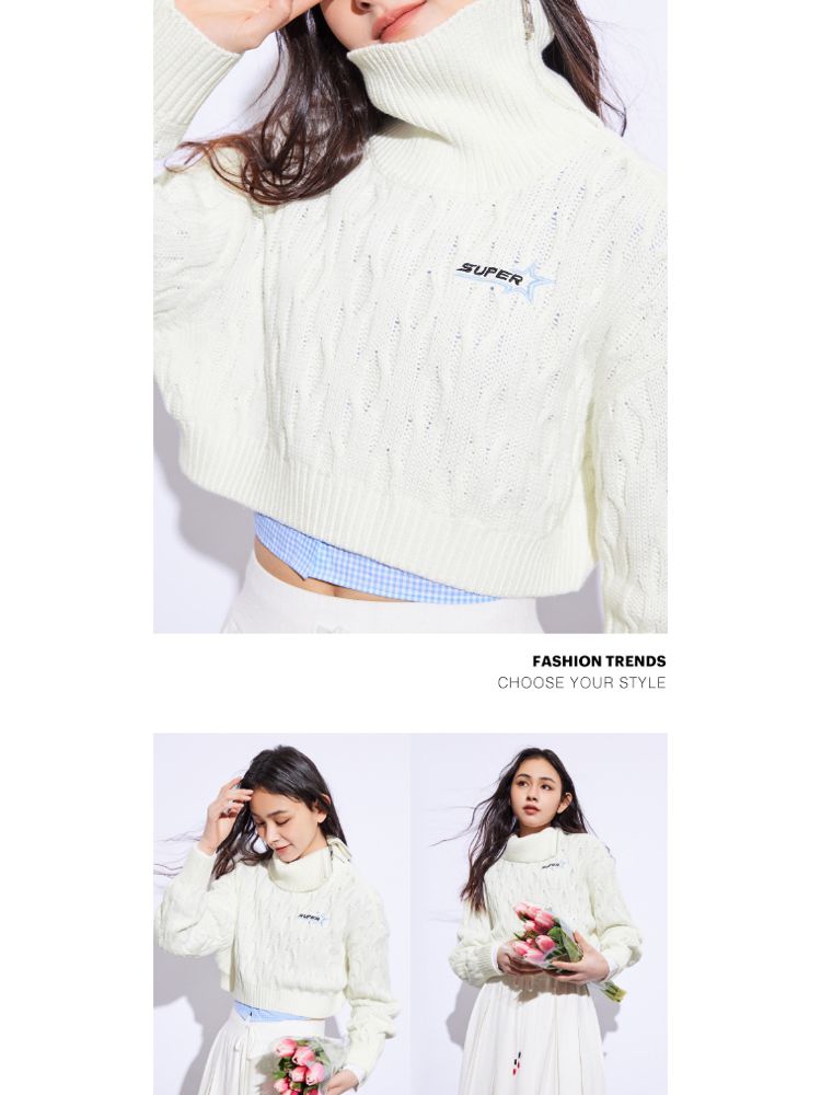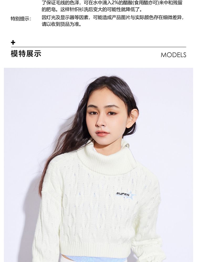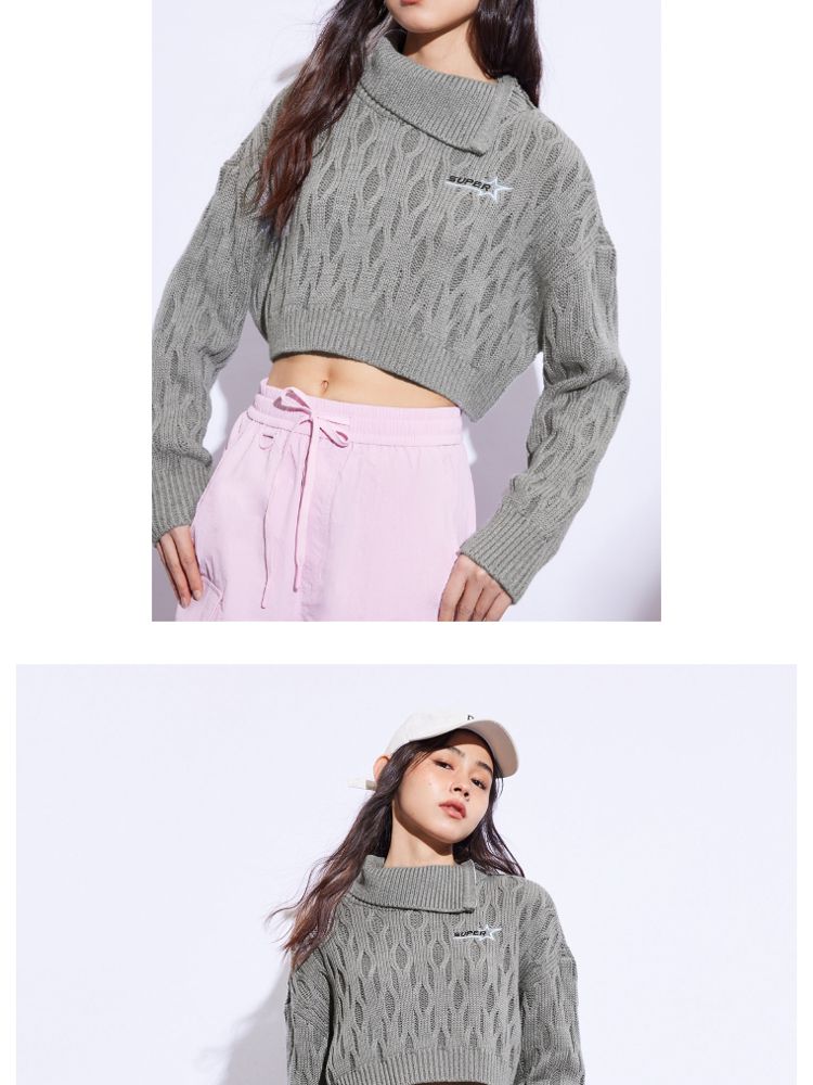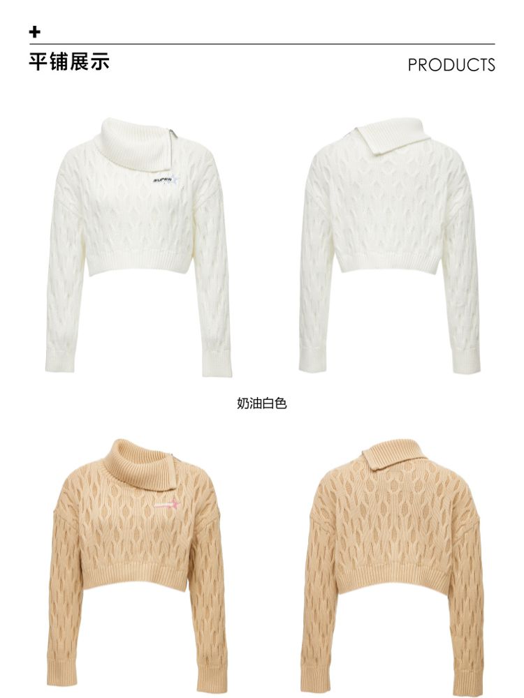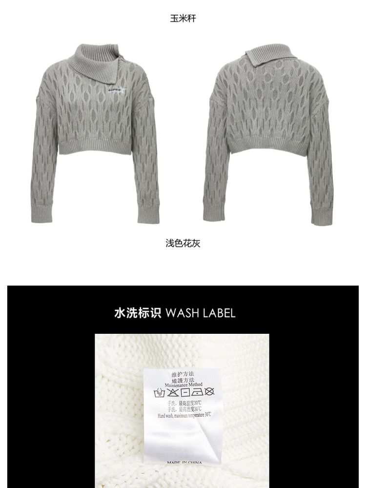 商品名称:【休闲气质】夏季短款翻领落肩长袖针织衫女 494234