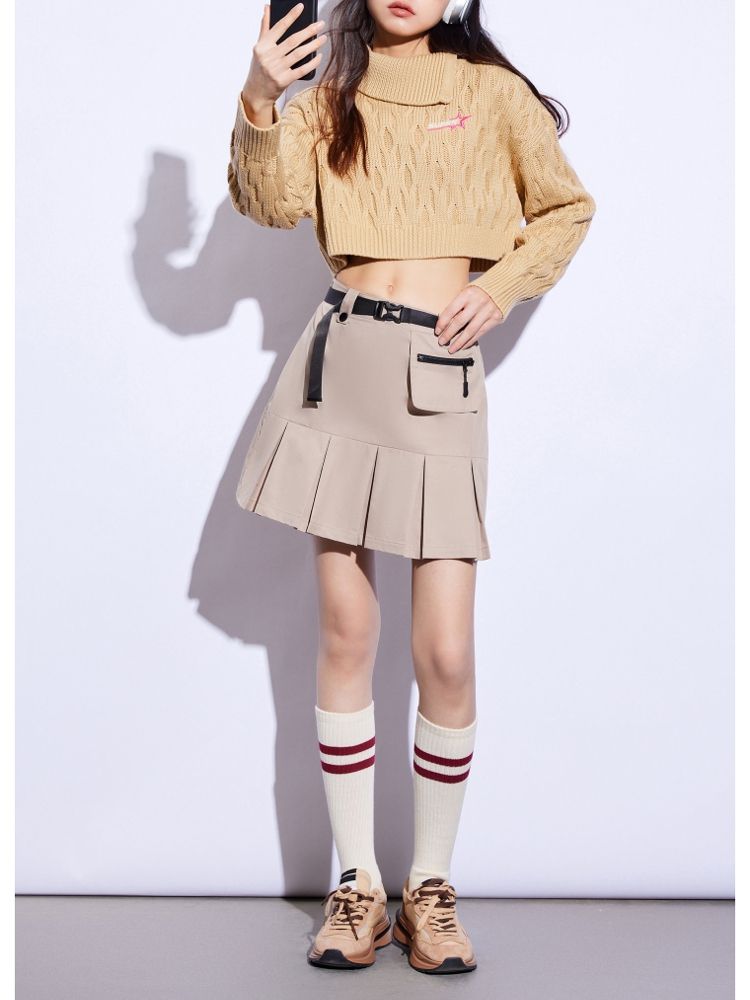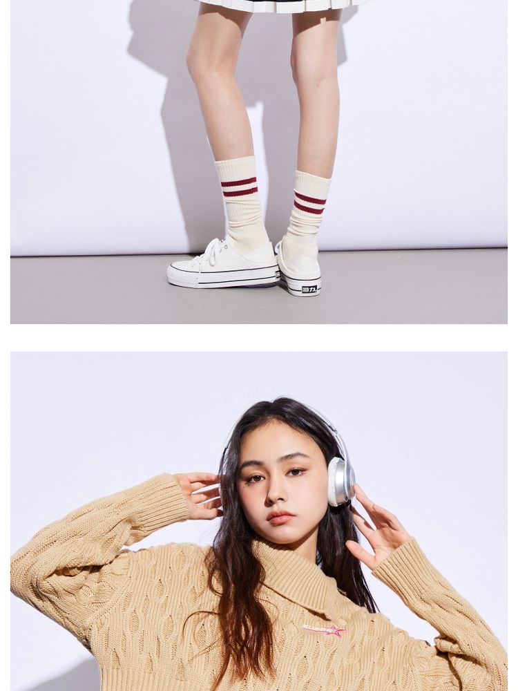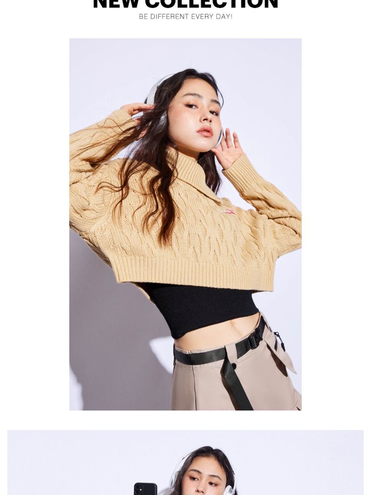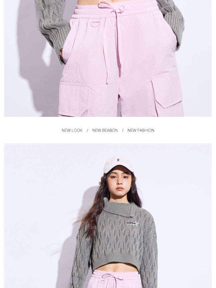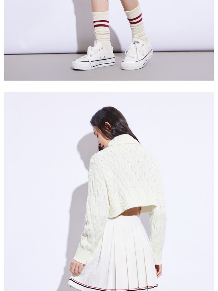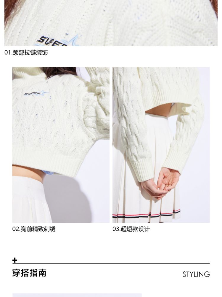 商品名称:【休闲气质】夏季短款翻领落肩长袖针织衫女 494234