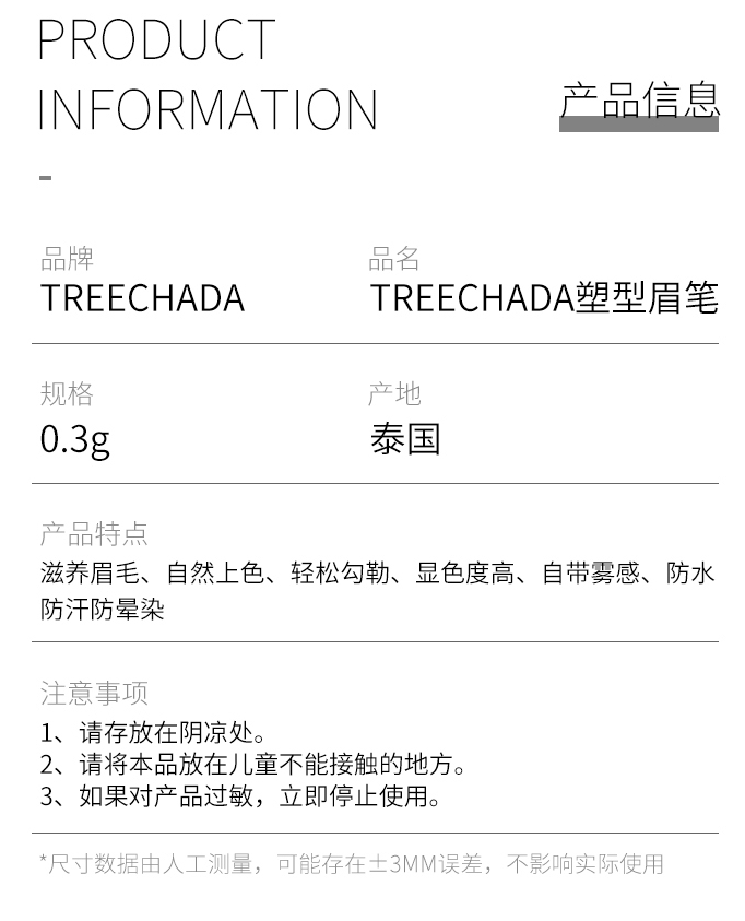 商品名称:treechada 塑型眉笔笔头三角防水防汗持久极超细