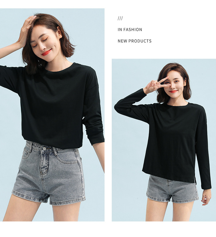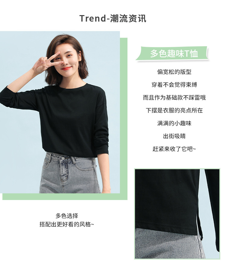 商品名称:米子旗春秋款修身纯色T恤女韩版百搭长袖上衣 228442