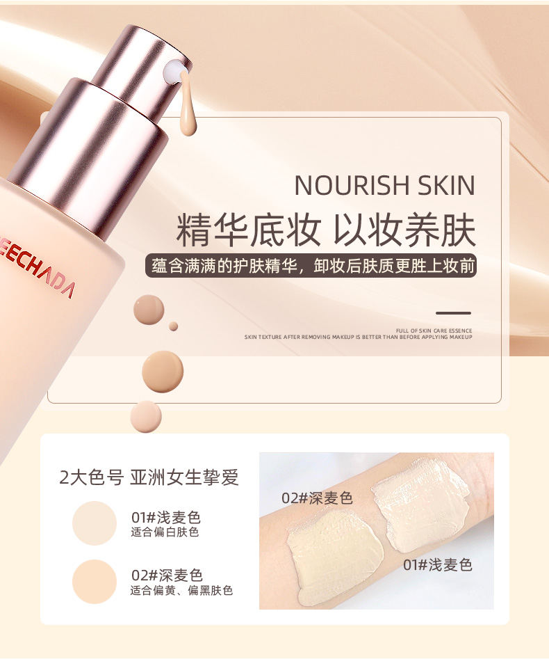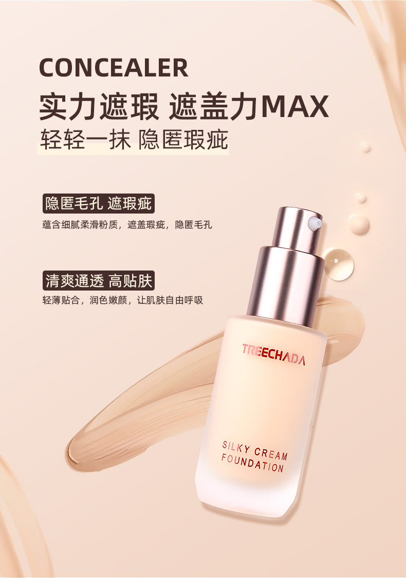 商品名称:TREECHADA 丝滑养肤粉底液保湿遮瑕隐形毛孔清透水润平价提亮