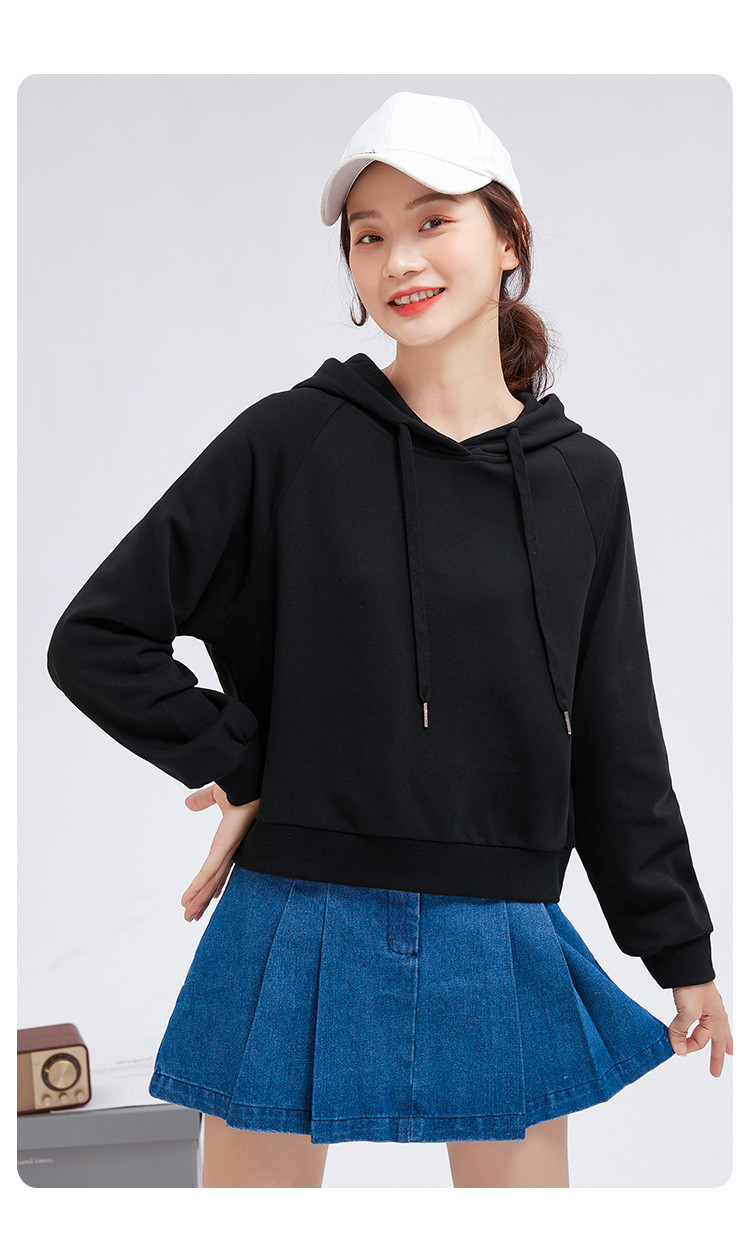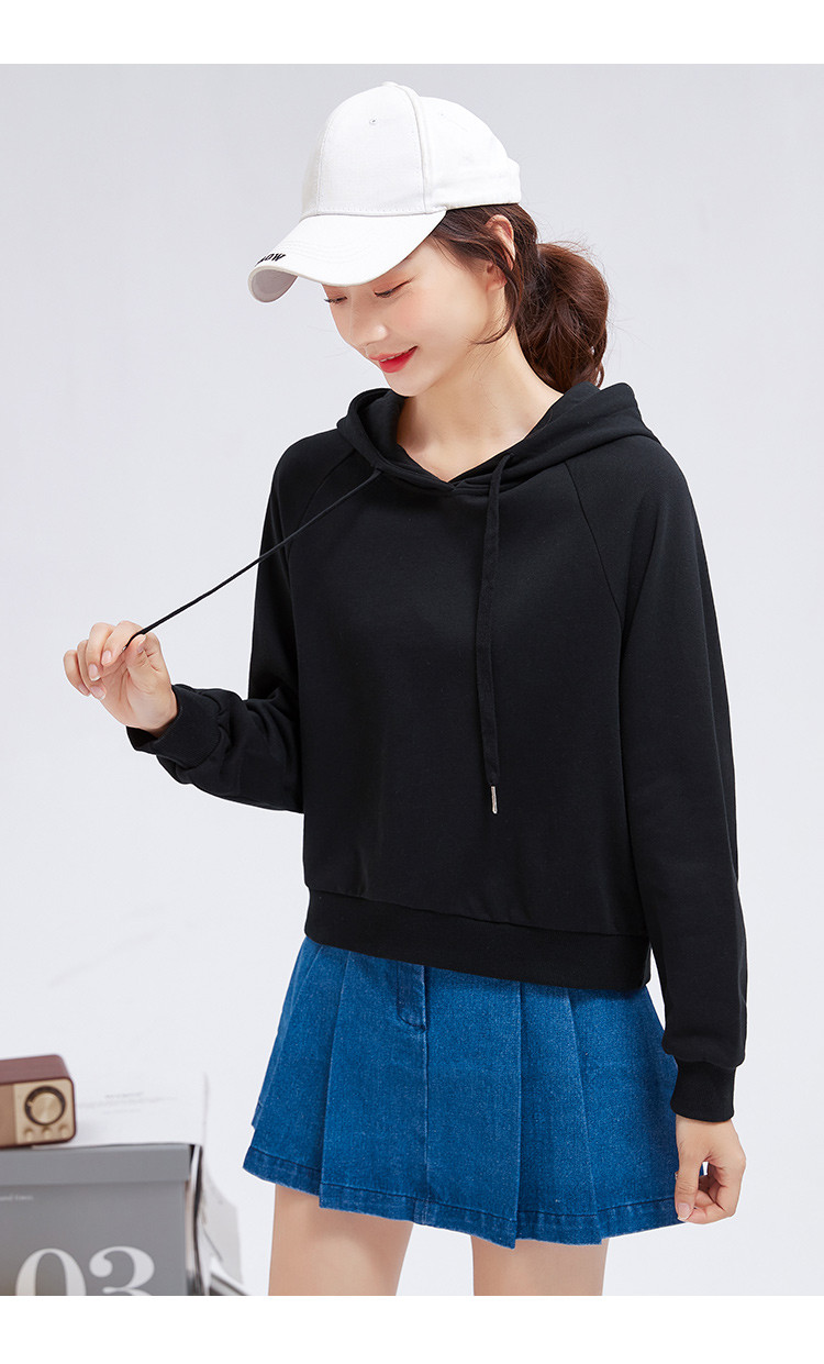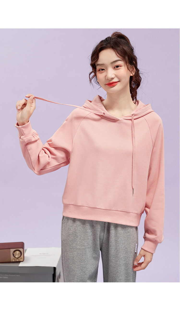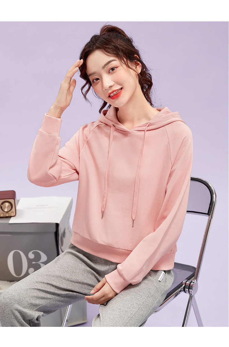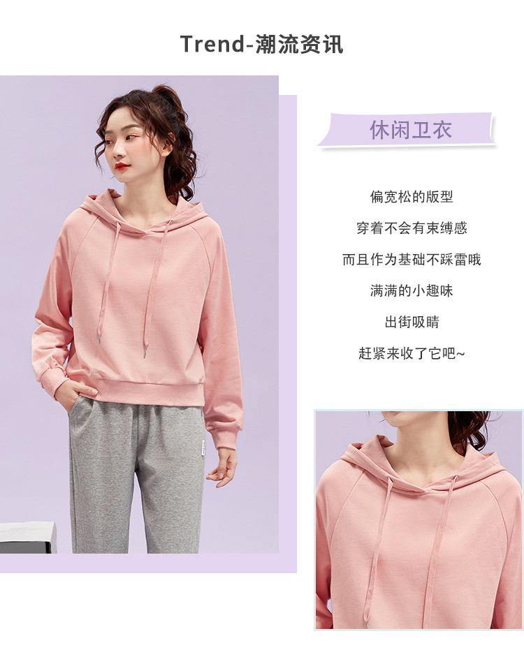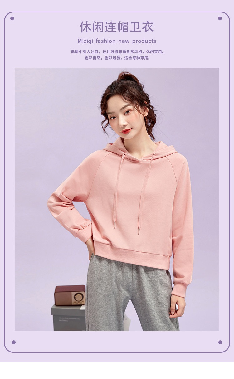 商品名称:米子旗女式卫衣外套上衣女春秋纯色百搭简约减龄元气显白长袖 247898