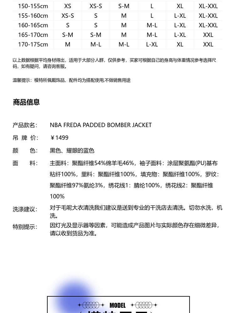 商品名称:【NBA联名款】夏季撞色宽松双面毛呢外套女 578586