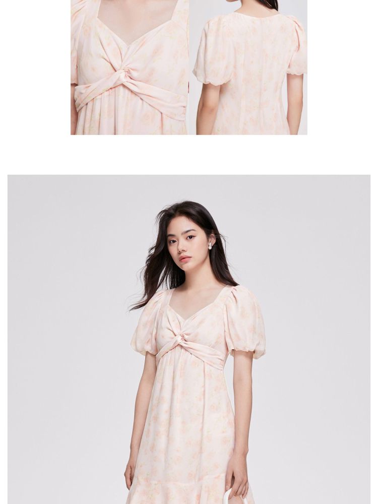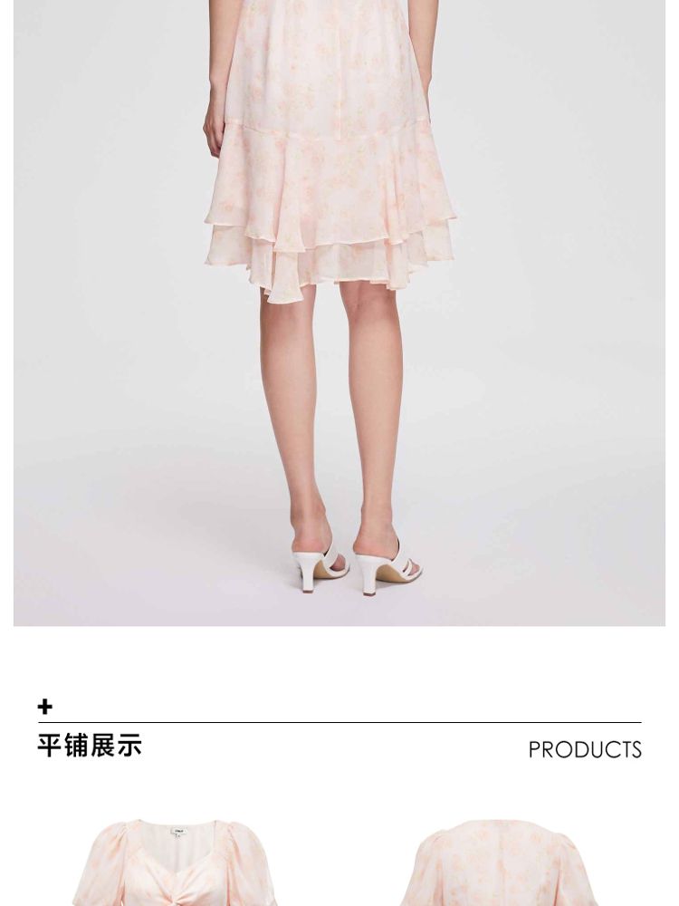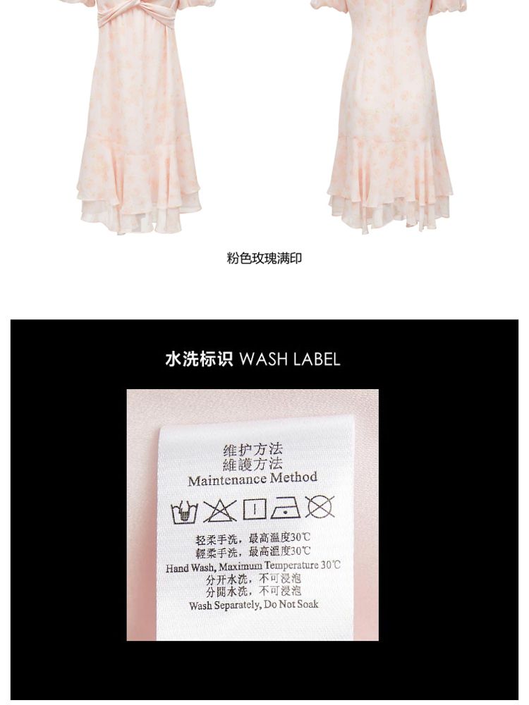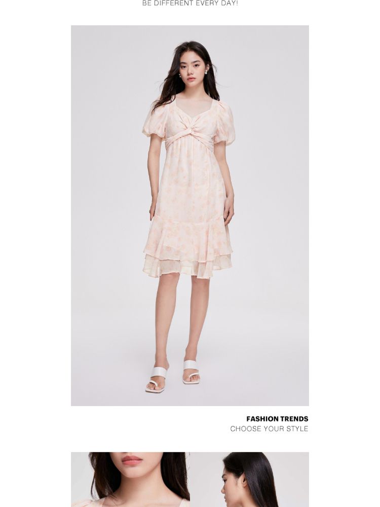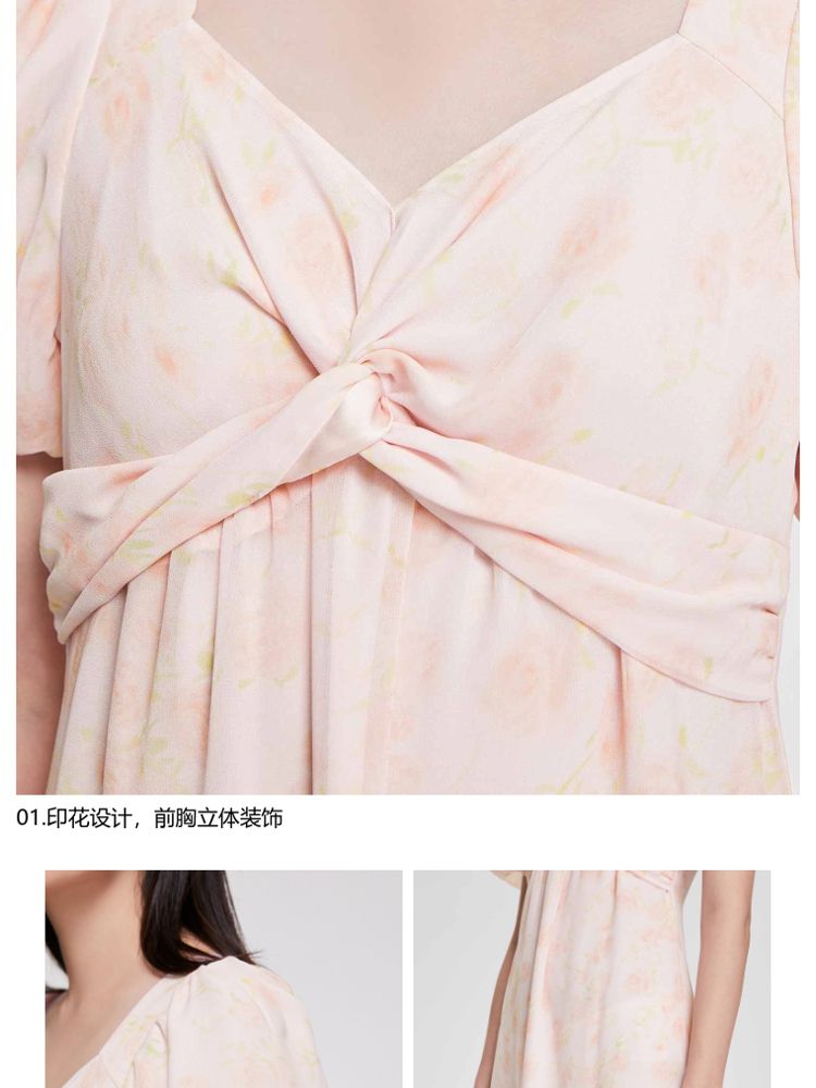 商品名称:【福利款】夏季印花泡泡袖V领中裙雪纺连衣裙女 548826