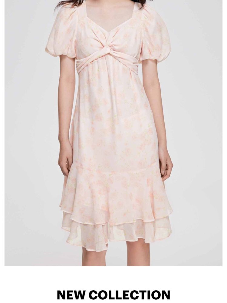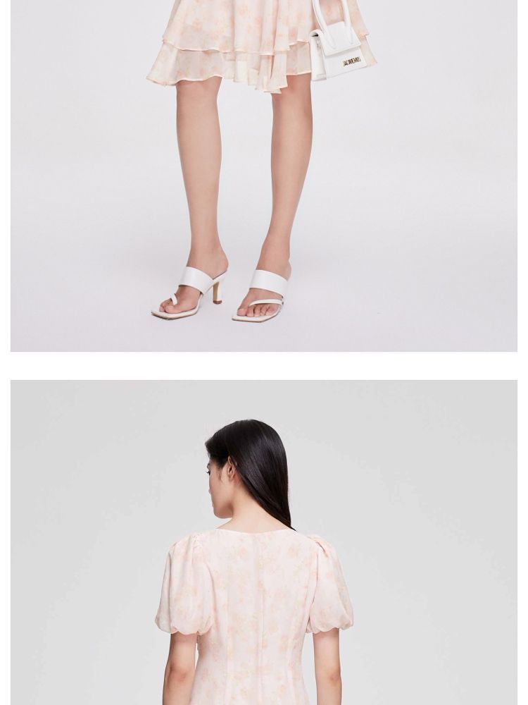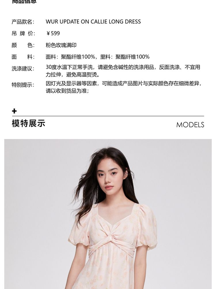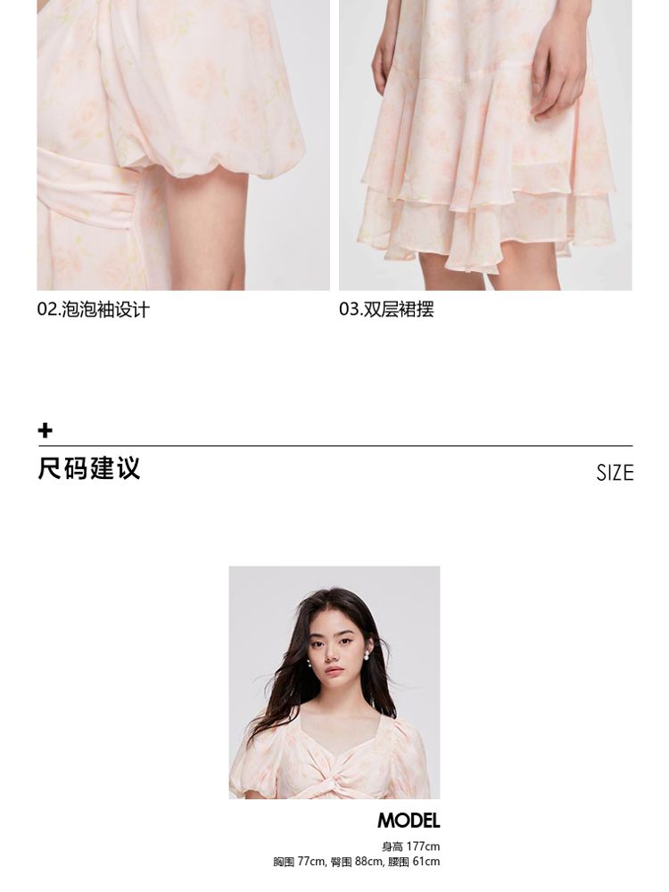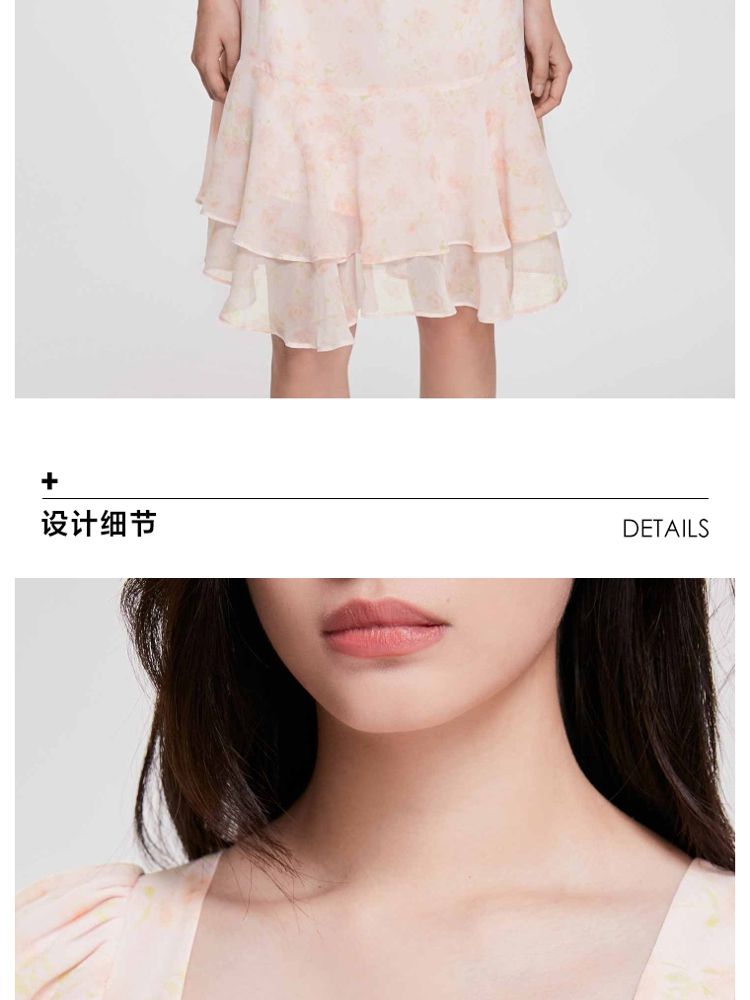 商品名称:【福利款】夏季印花泡泡袖V领中裙雪纺连衣裙女 548826