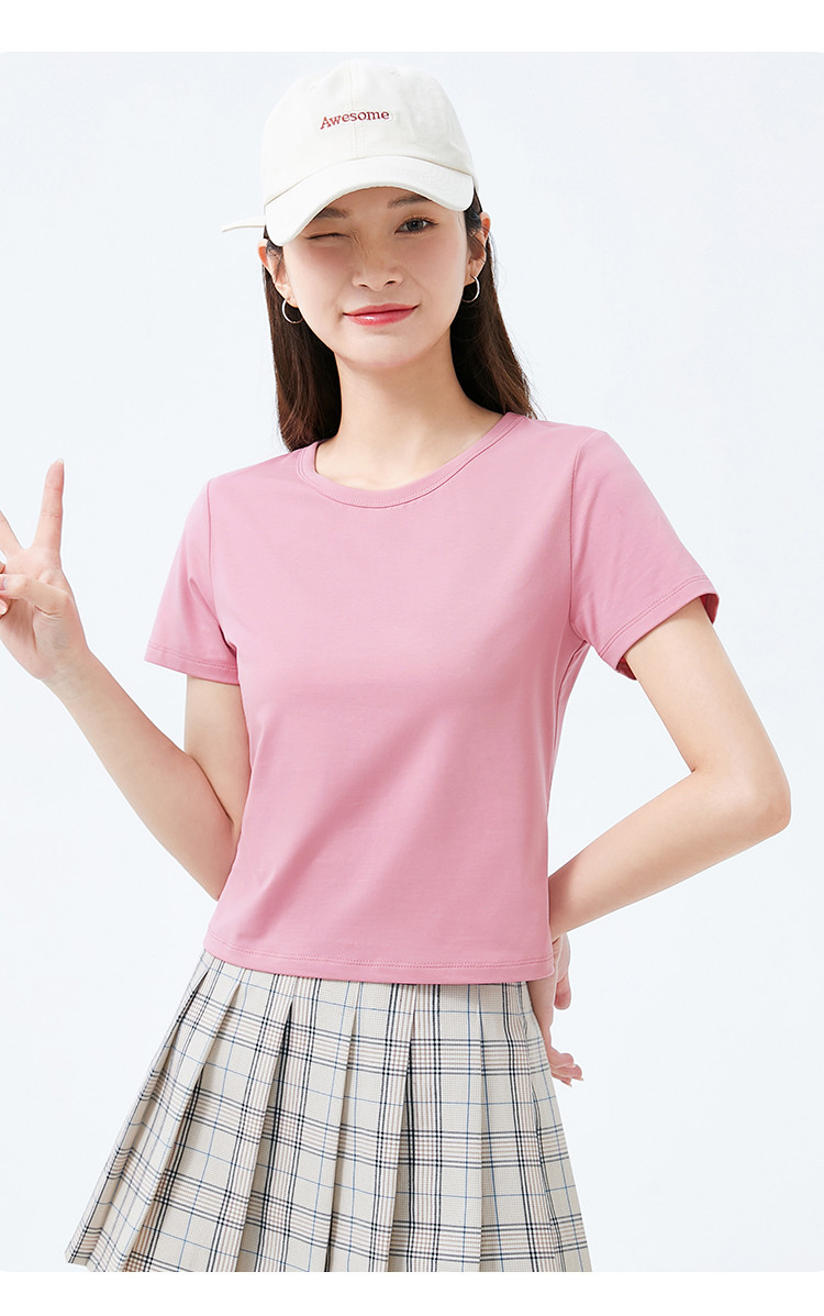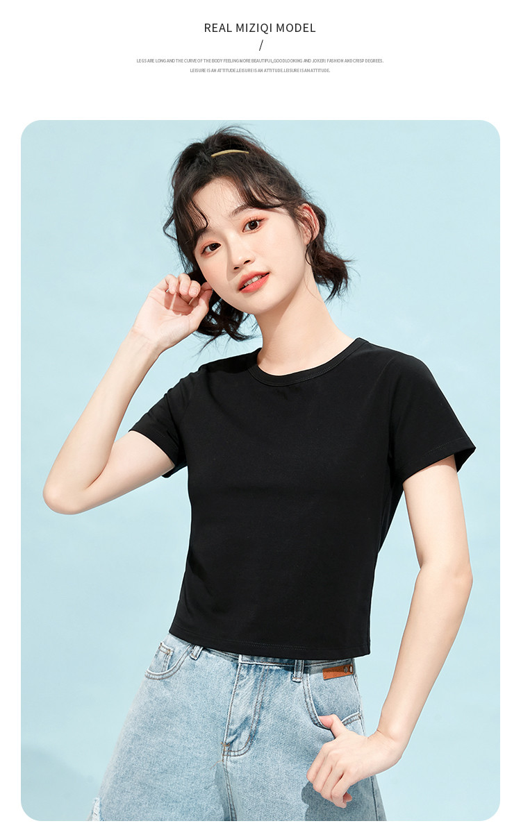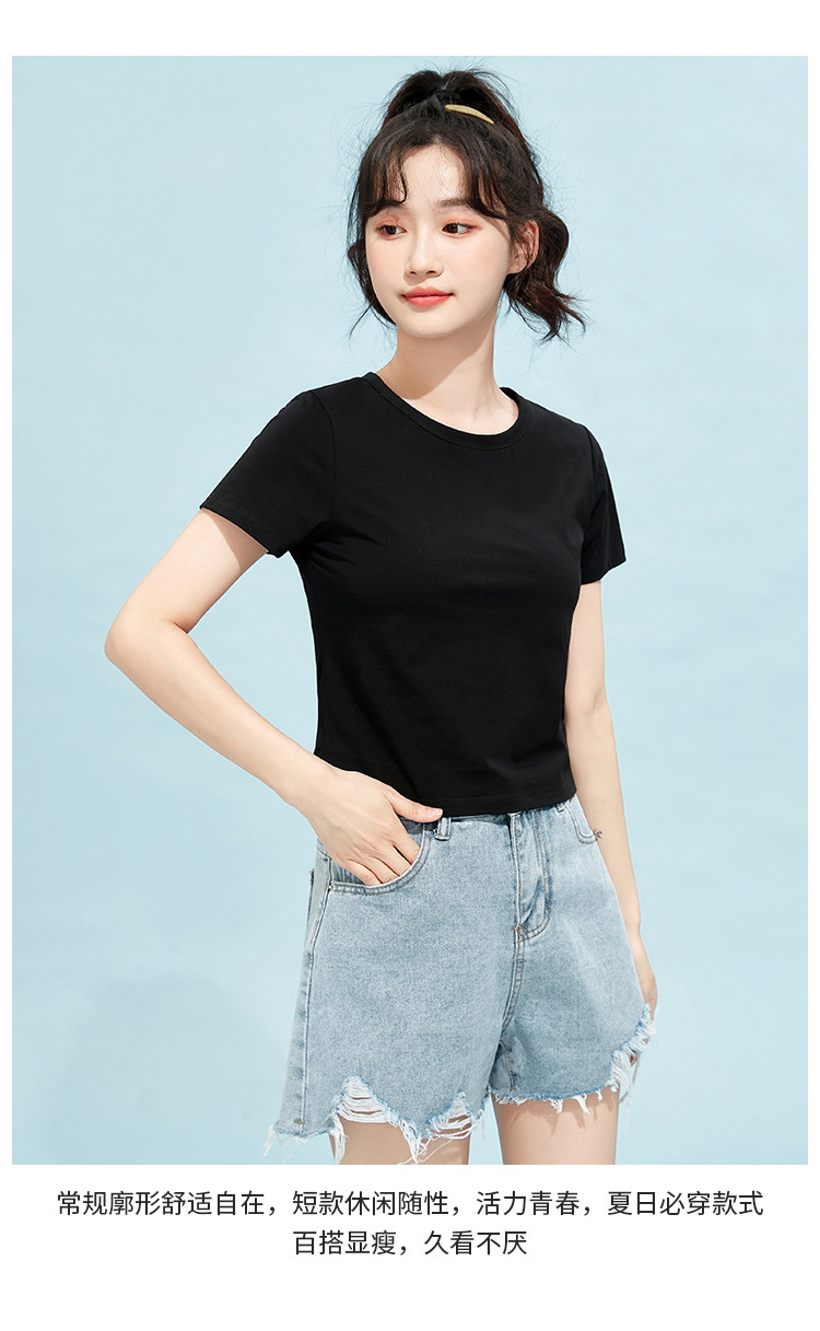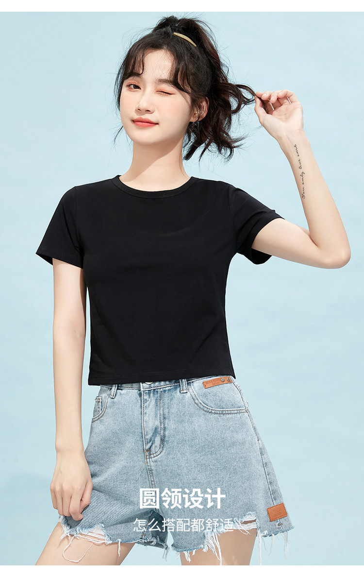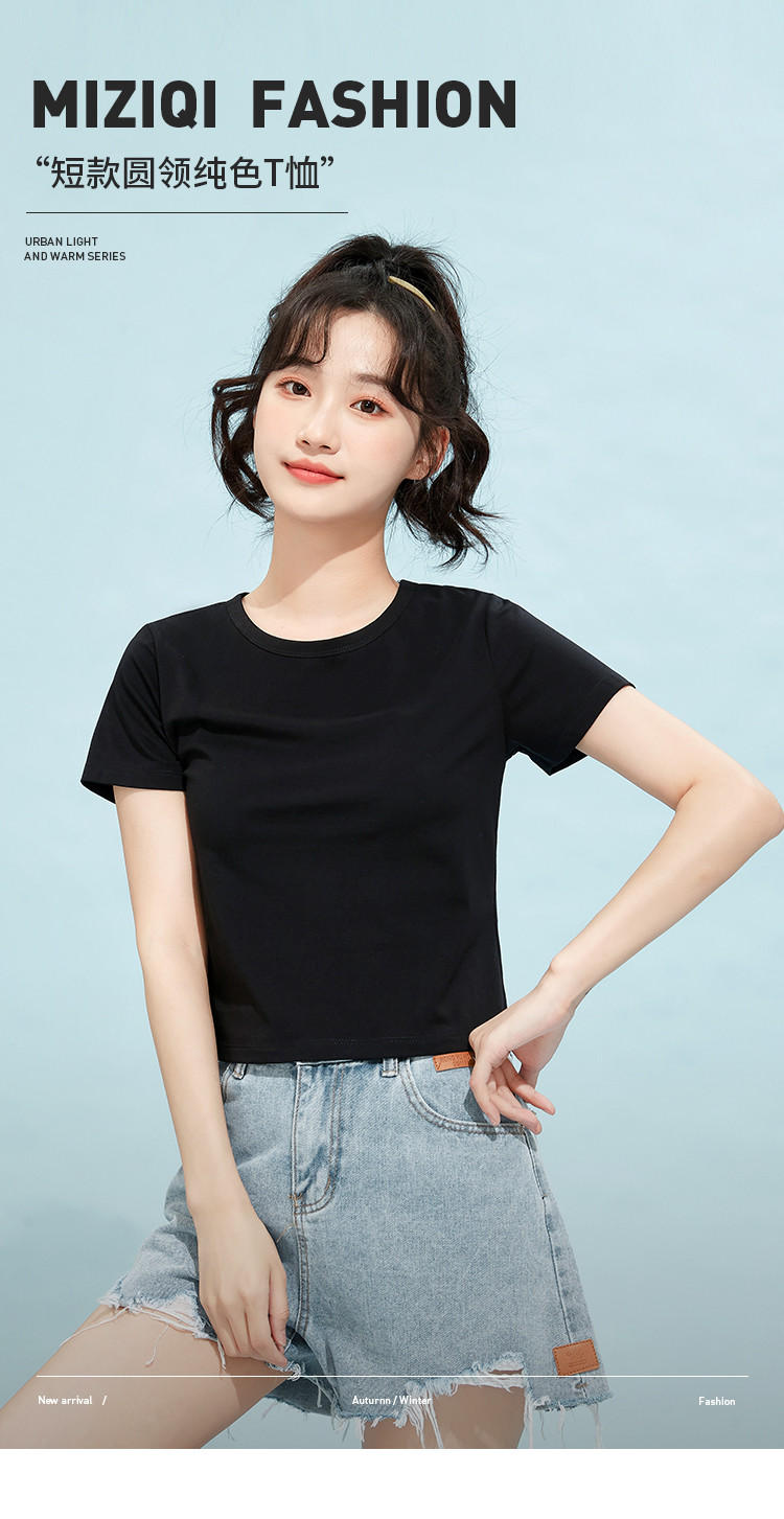 商品名称:米子旗夏季款圆领纯色T恤女短款修身短袖上衣 003354