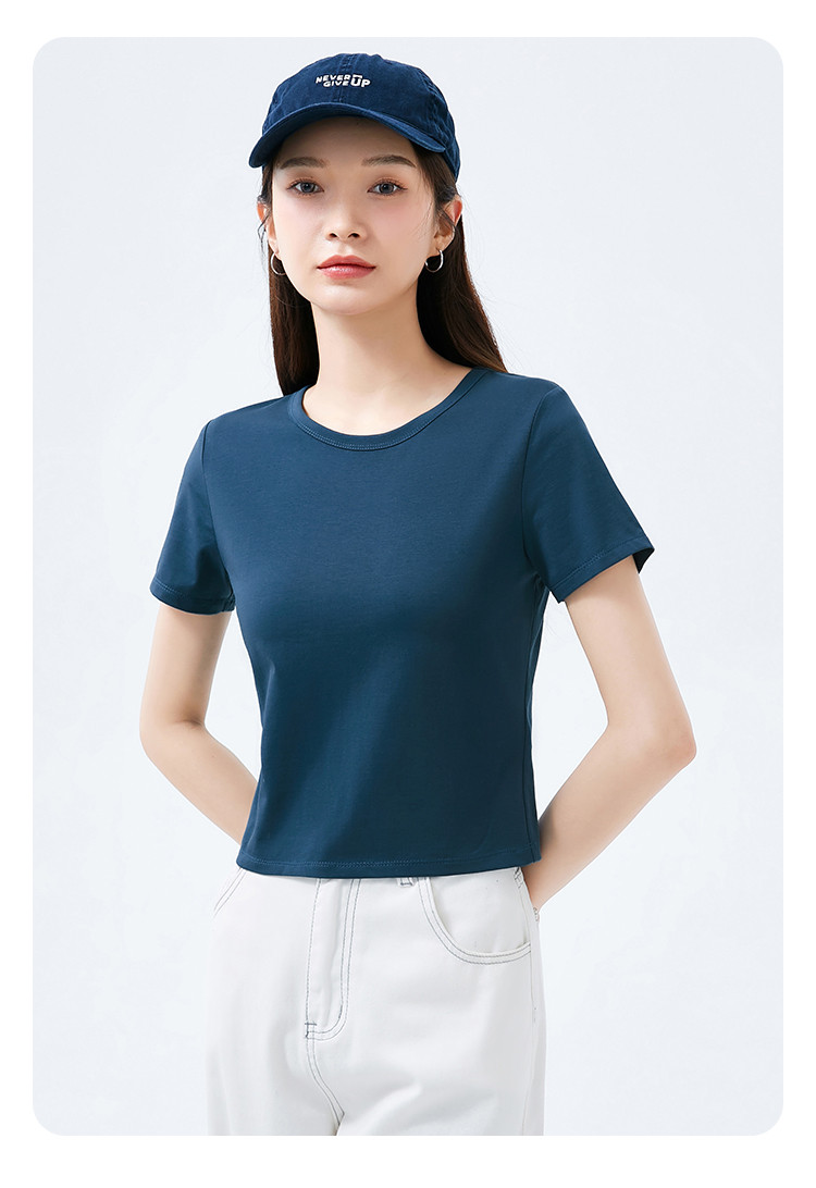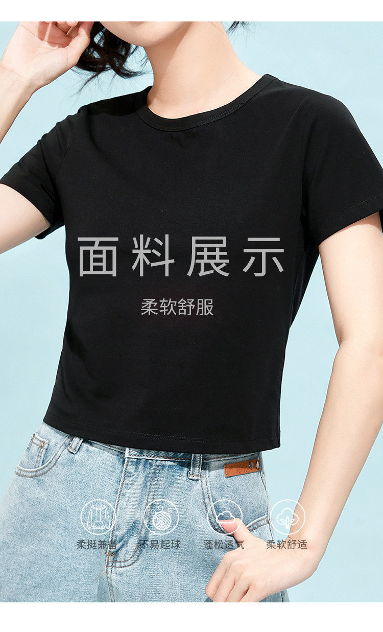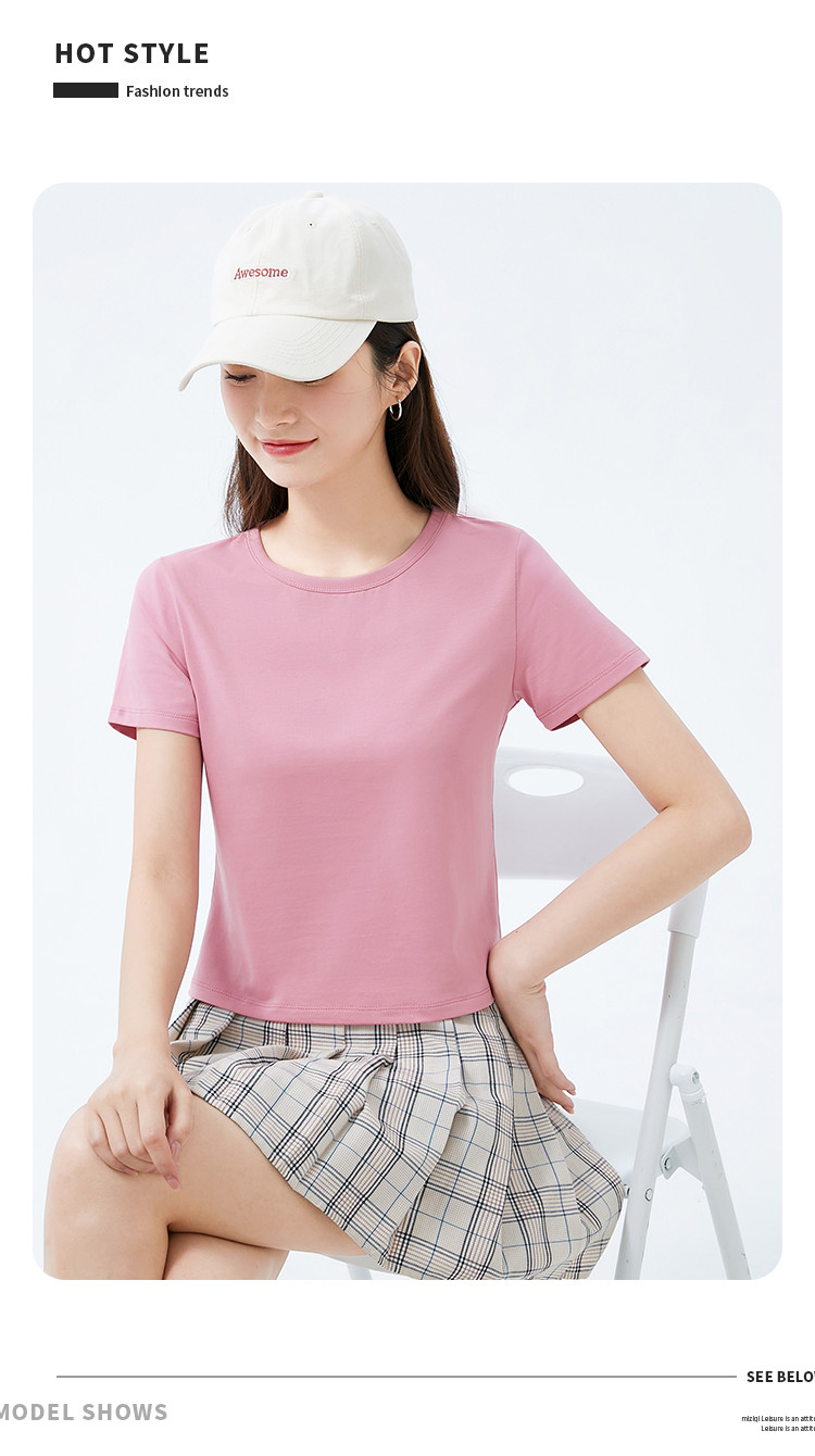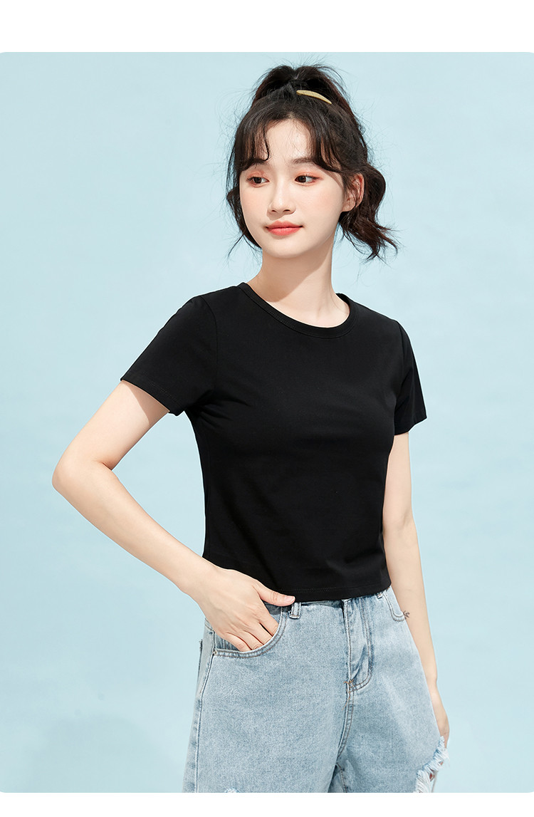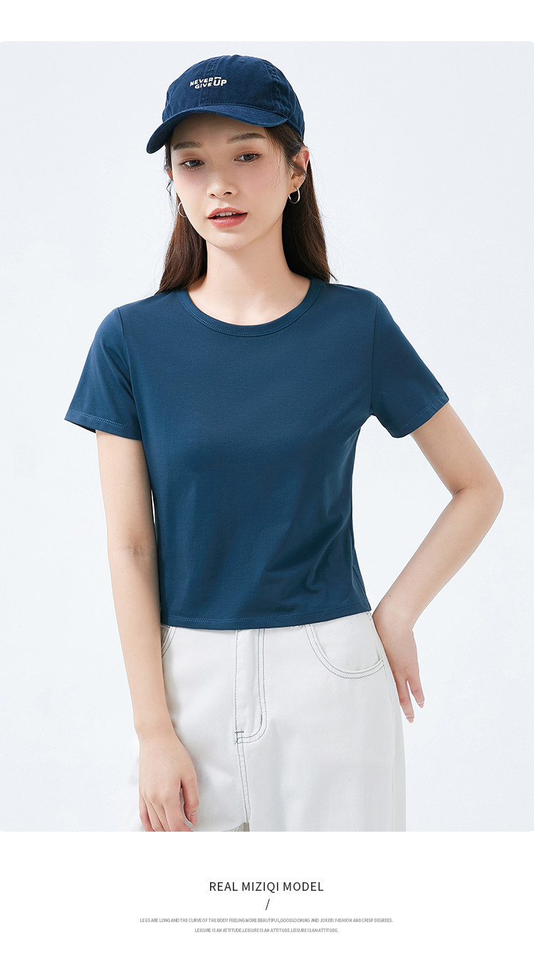 商品名称:米子旗夏季款圆领纯色T恤女短款修身短袖上衣 003354