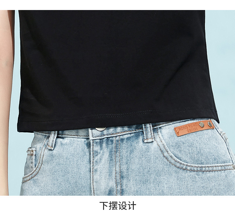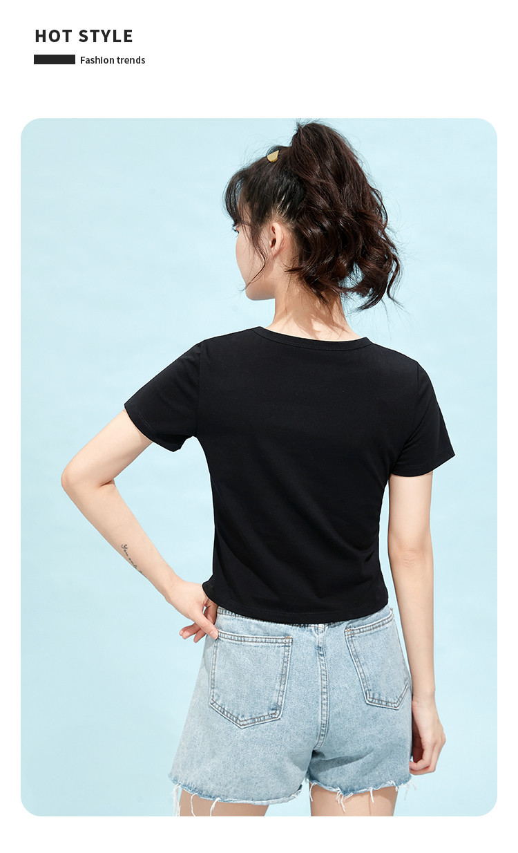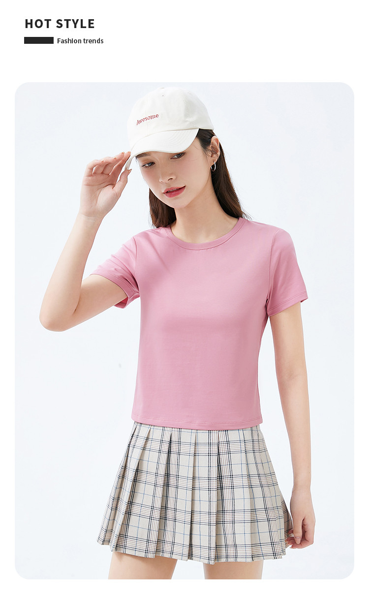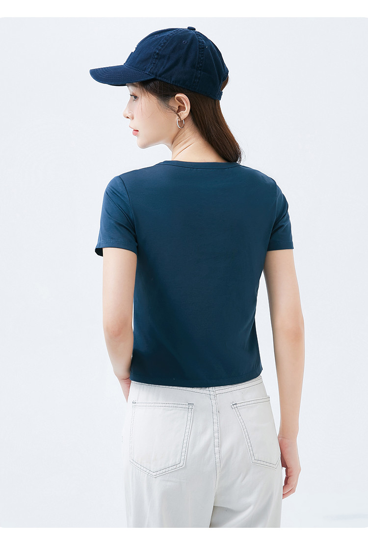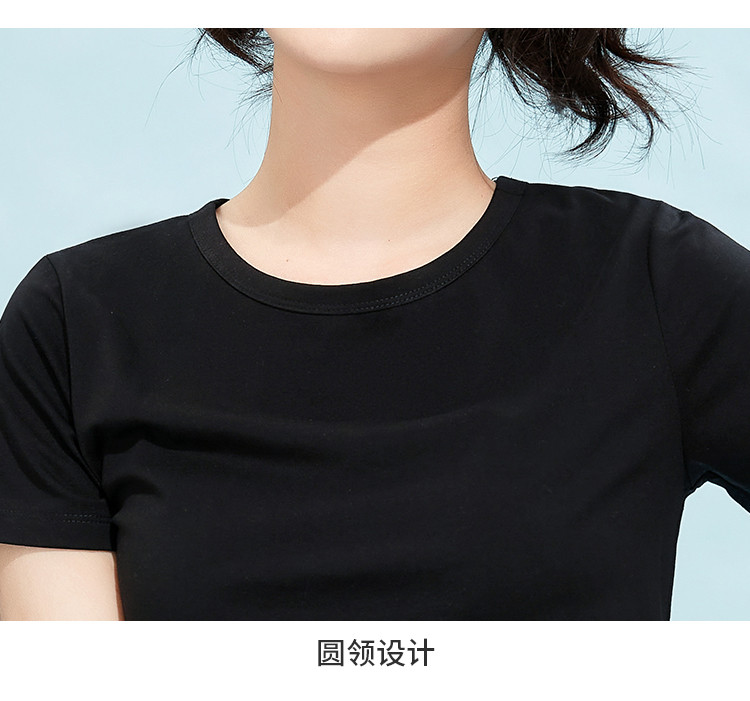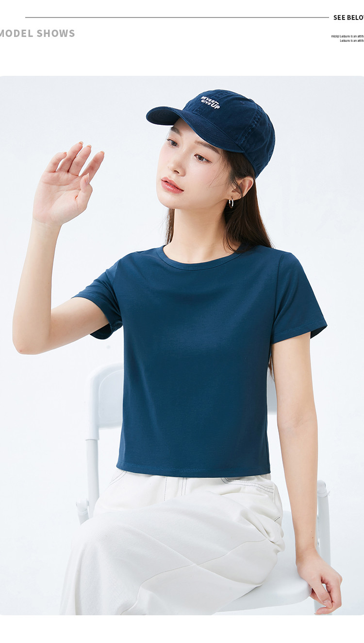商品名称:米子旗夏季款圆领纯色T恤女短款修身短袖上衣 003354