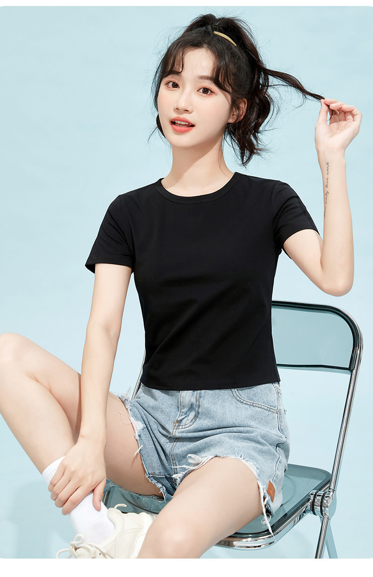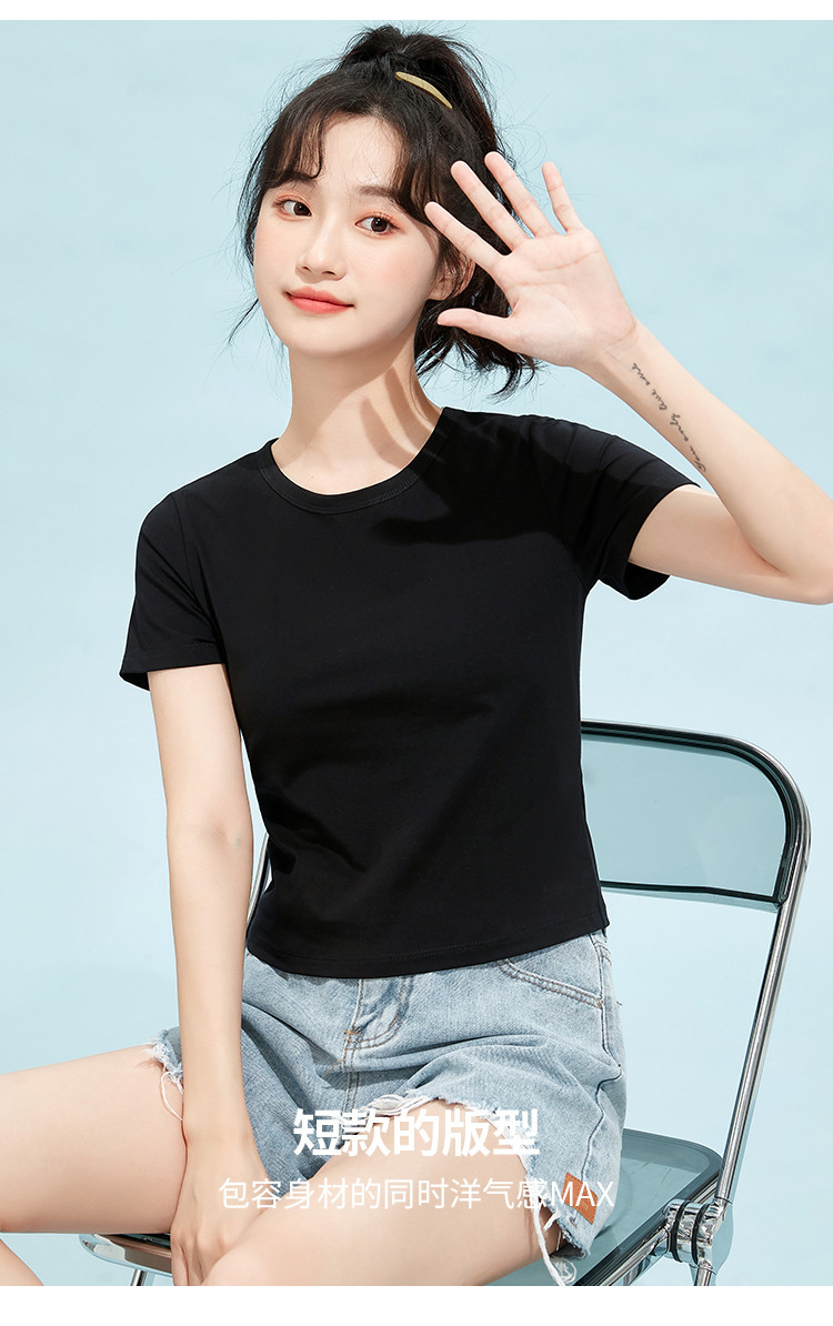米子旗夏季款圆领纯色T恤女短款修身短袖上衣 003354