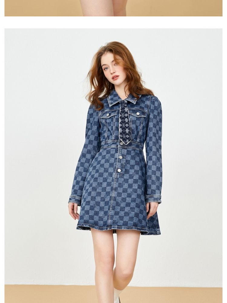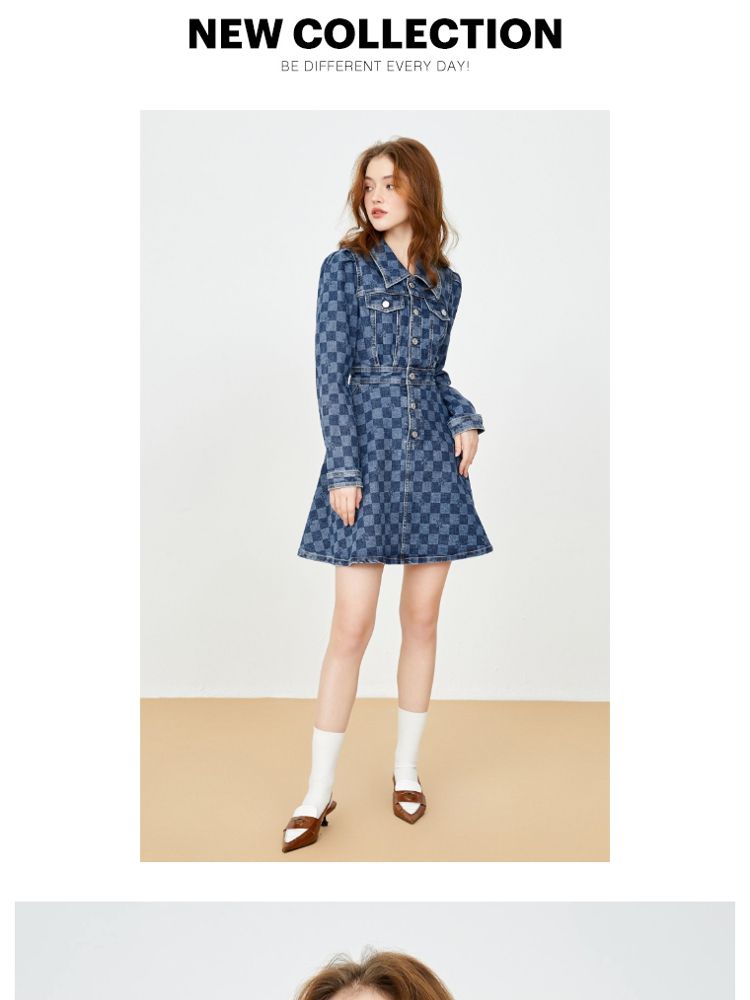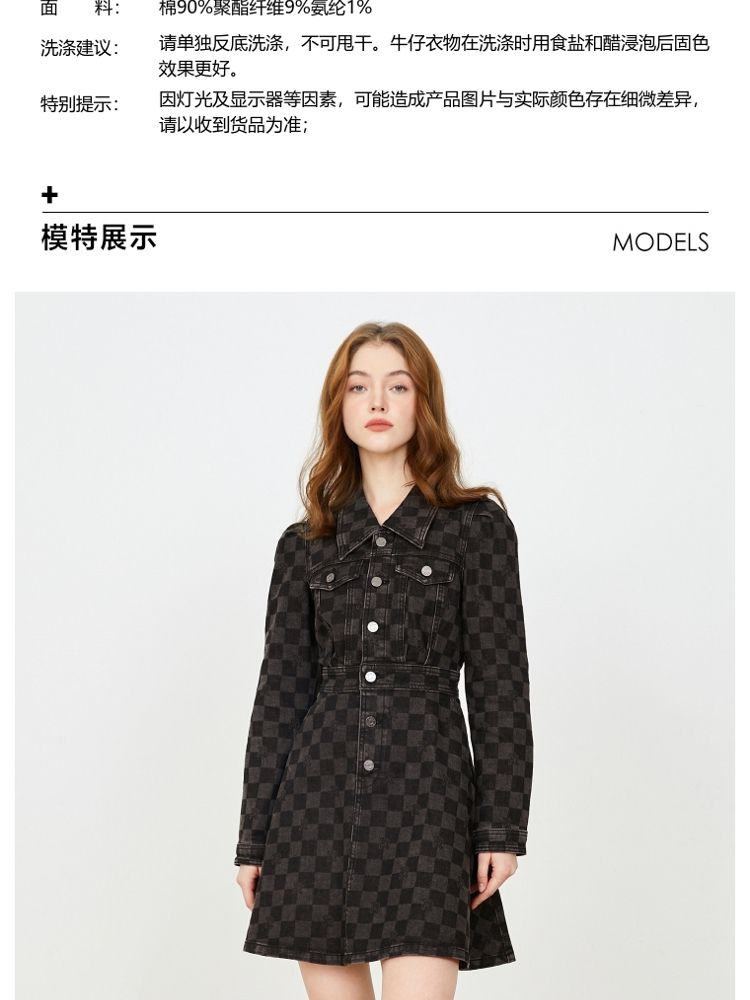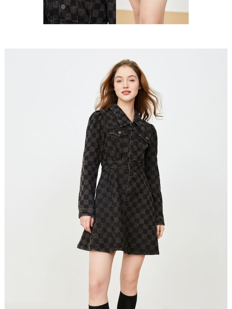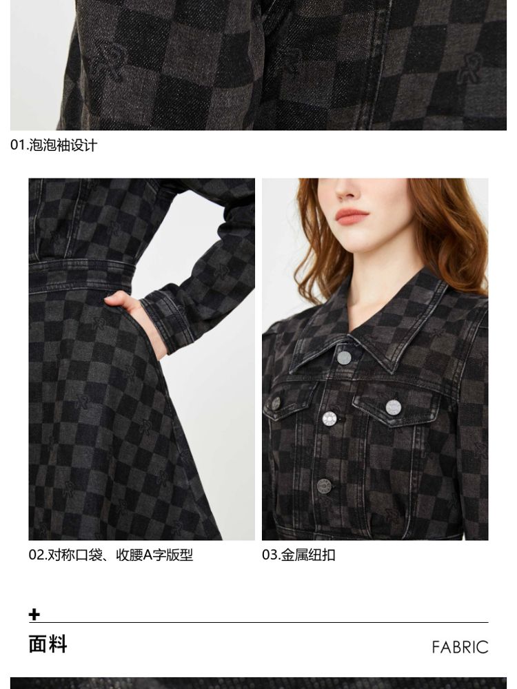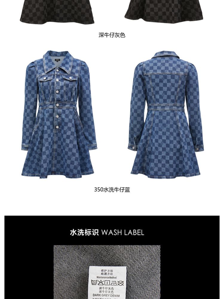 商品名称:【福利款】夏季棋盘格泡泡袖莱卡牛仔短款连衣裙女 255066