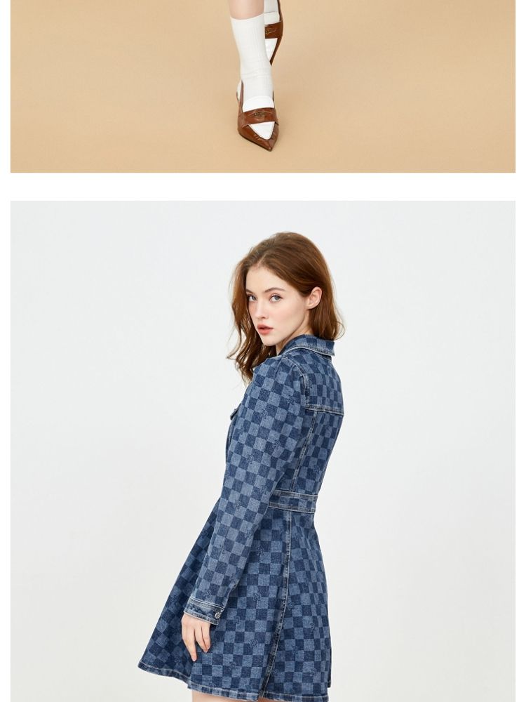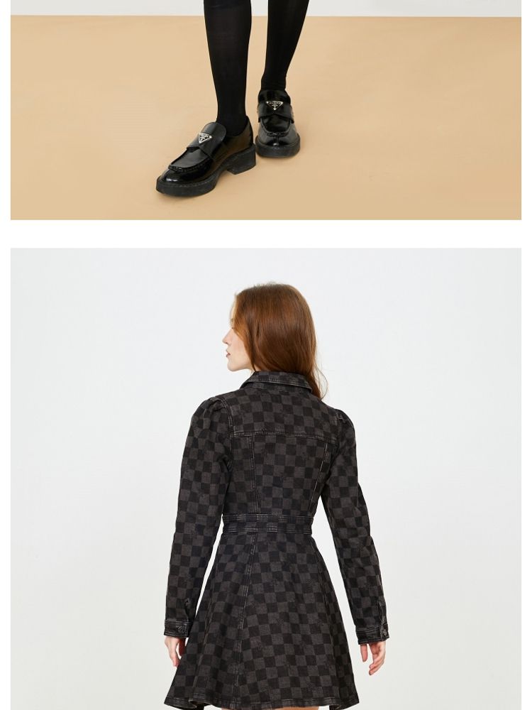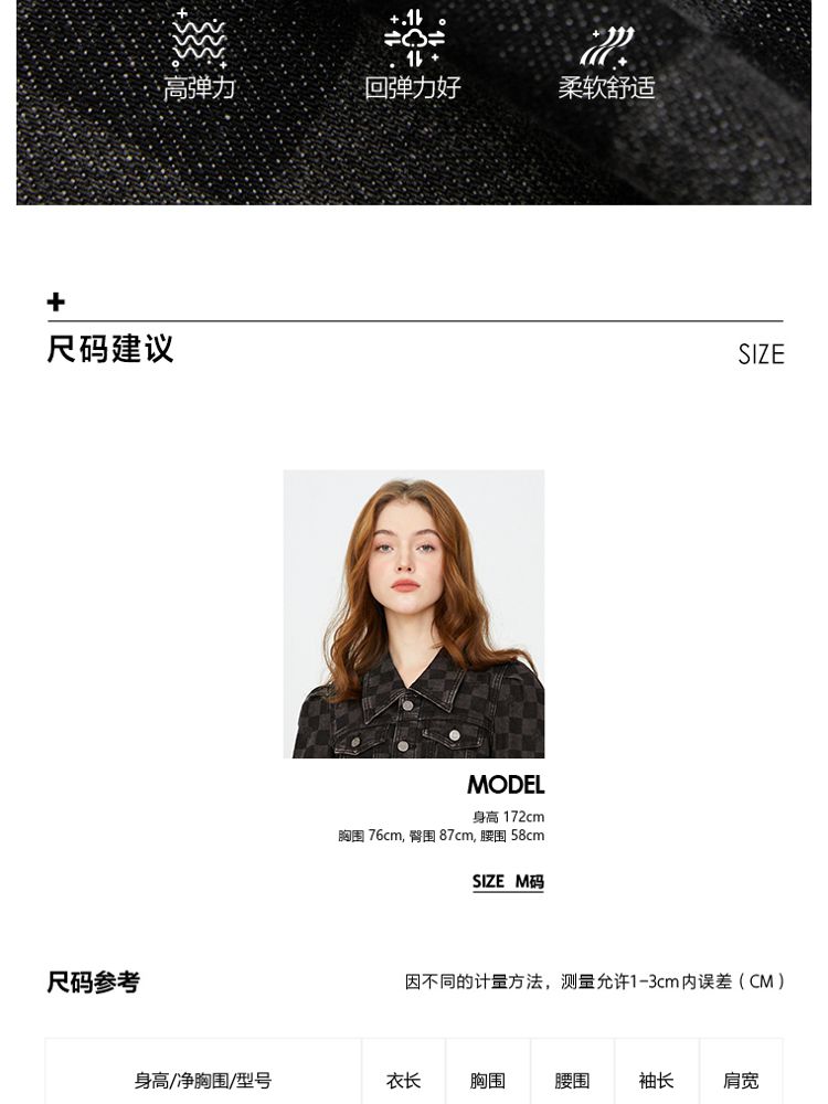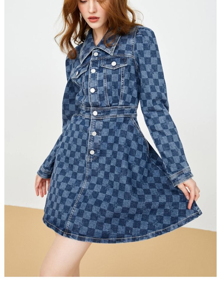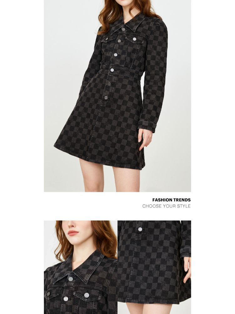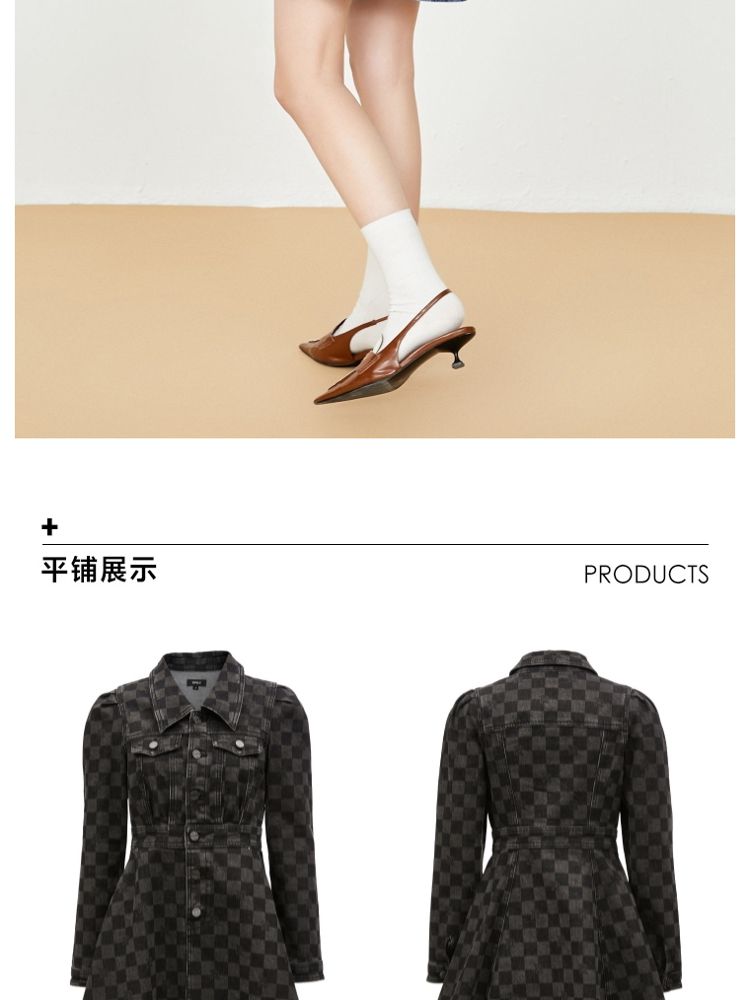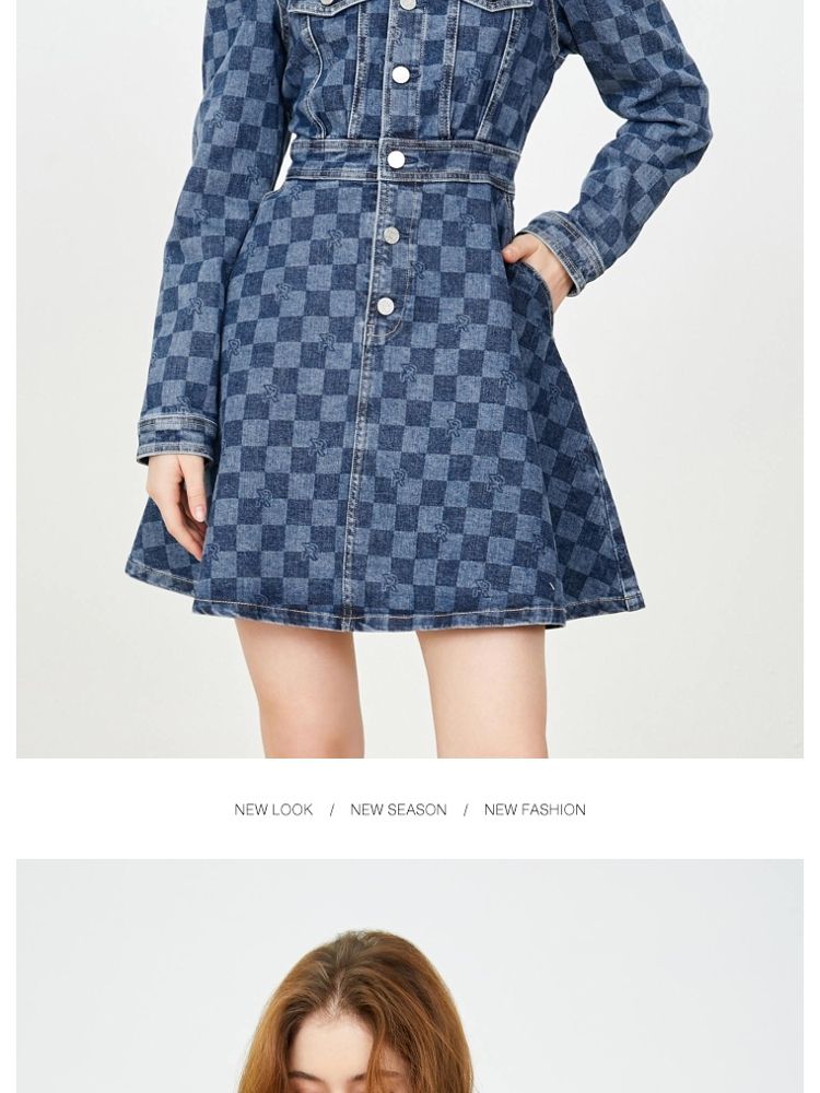 商品名称:【福利款】夏季棋盘格泡泡袖莱卡牛仔短款连衣裙女 255066