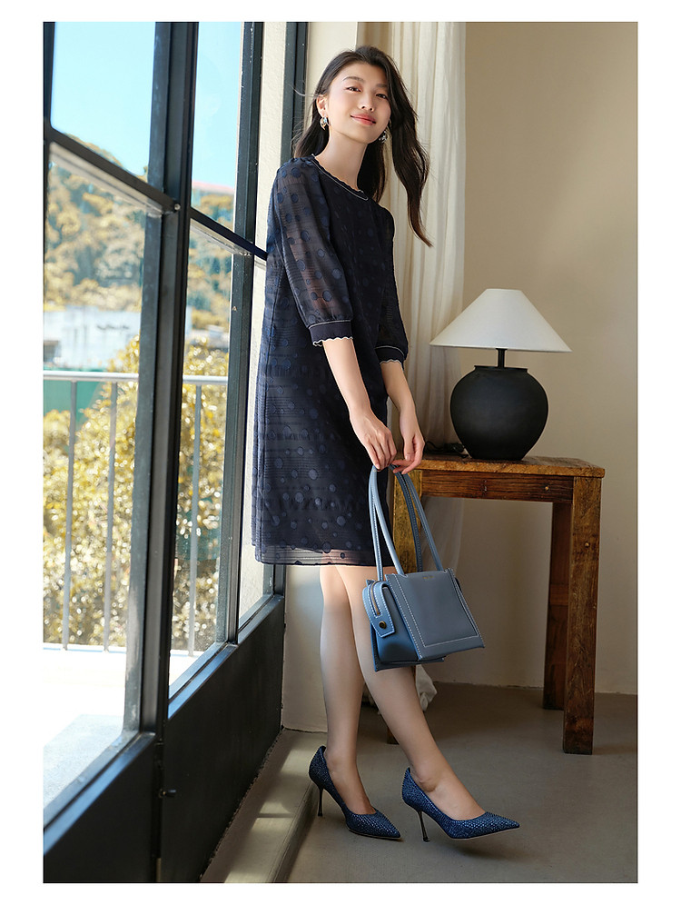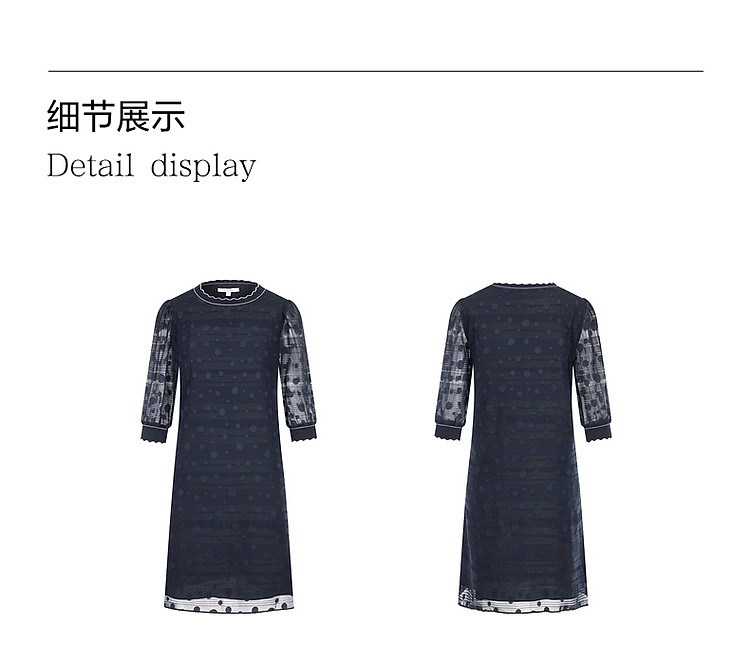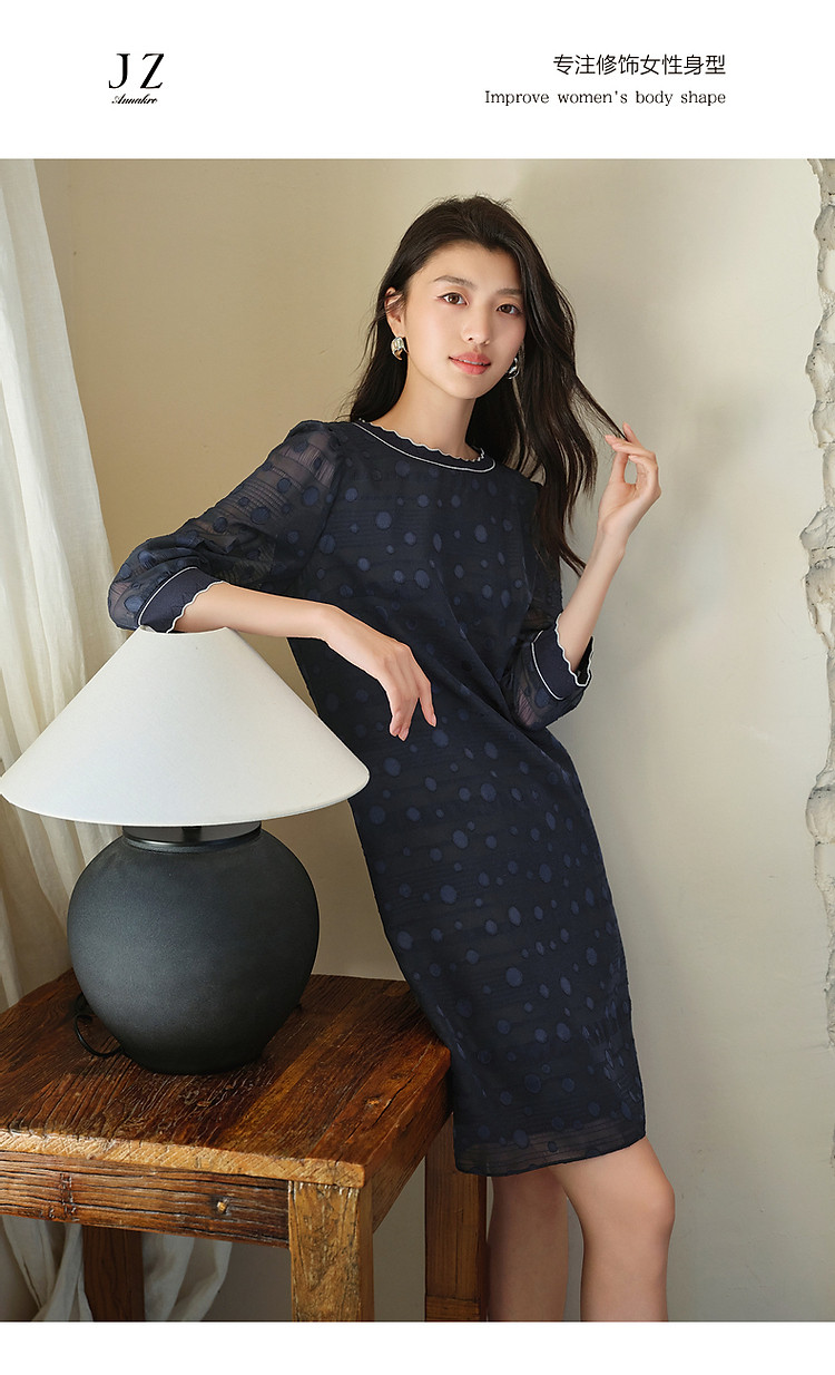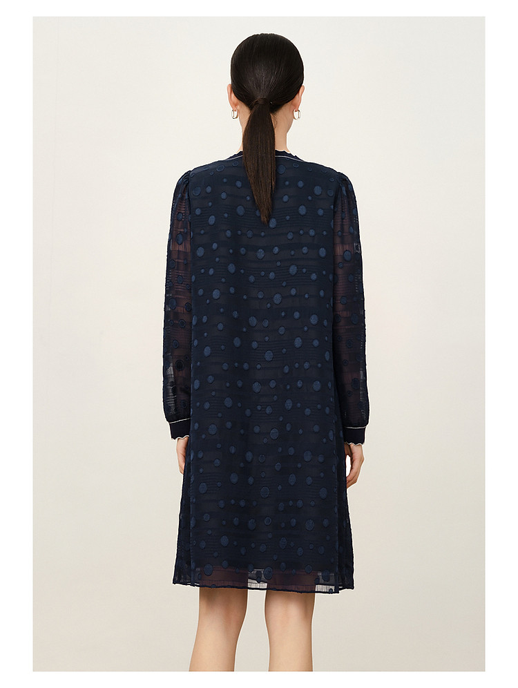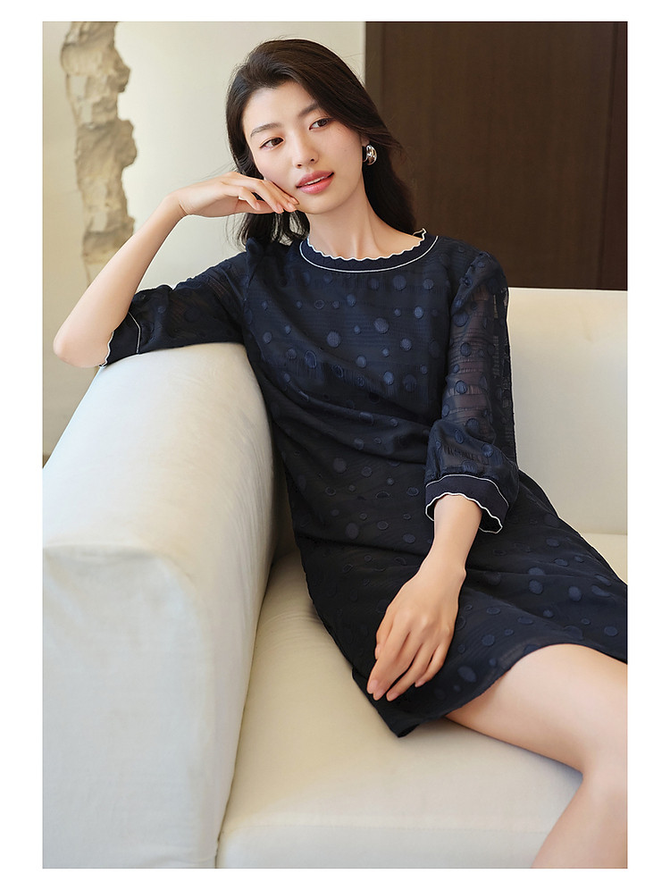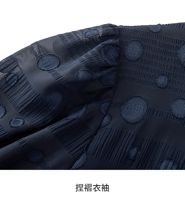 商品名称:旗下安娜蔻系列洋气丈青波普风H型波点剪花雪纺连衣裙女 048460