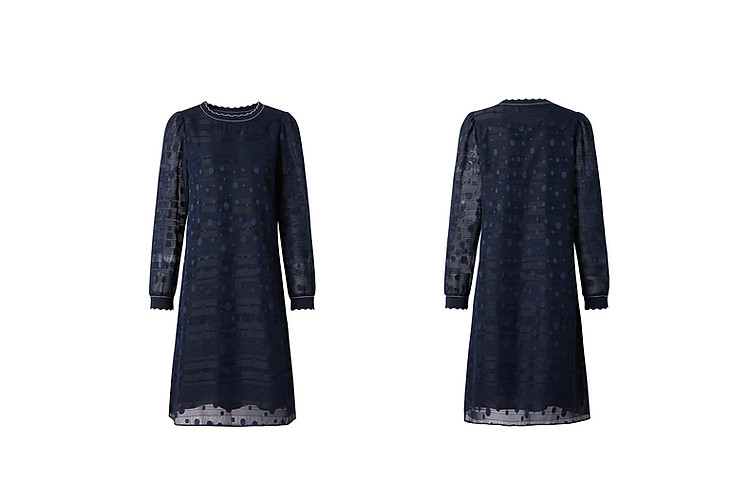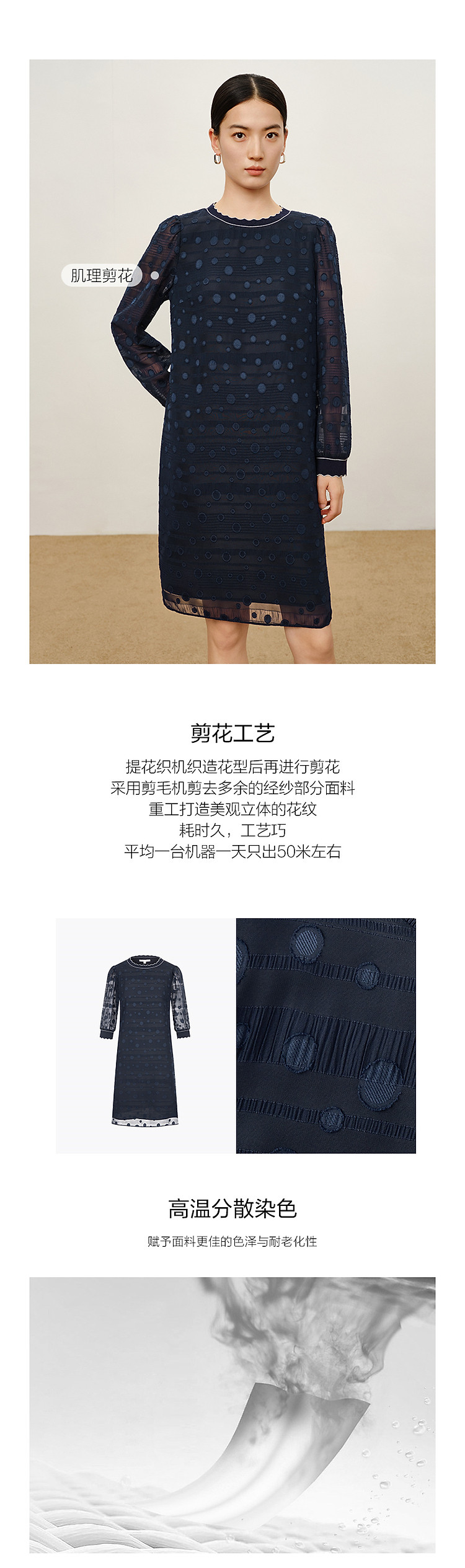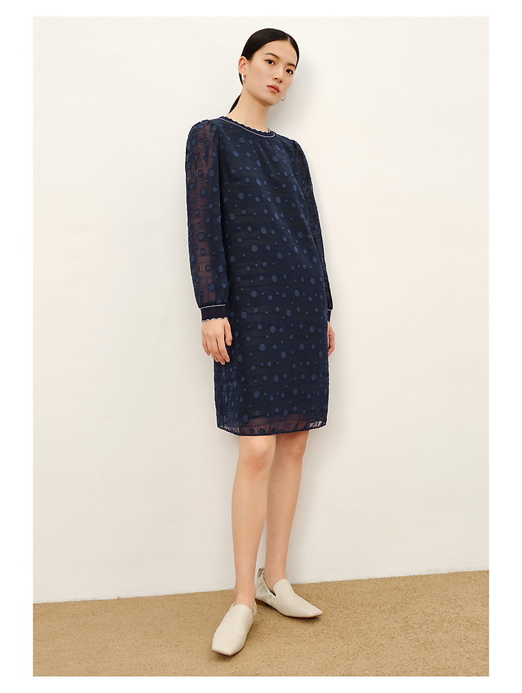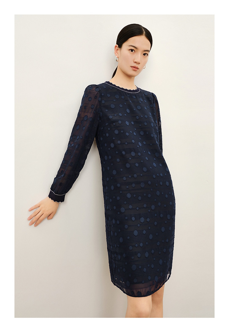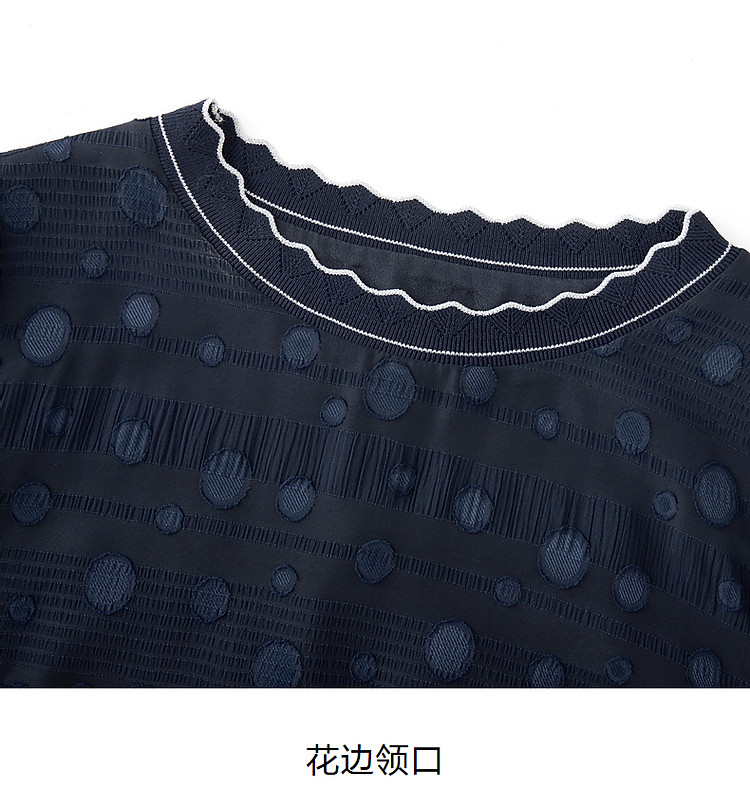 商品名称:旗下安娜蔻系列洋气丈青波普风H型波点剪花雪纺连衣裙女 048460