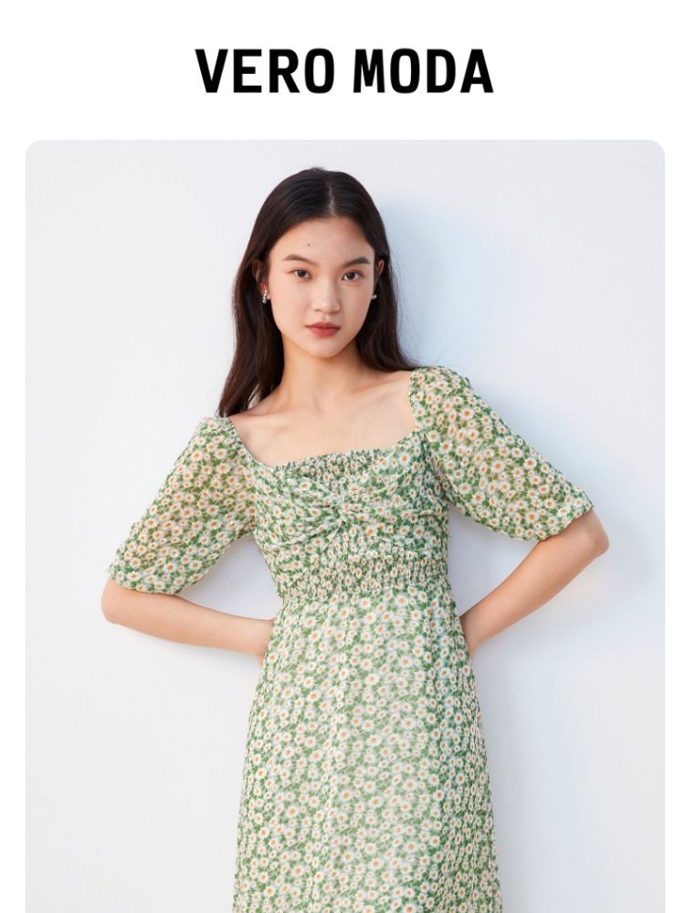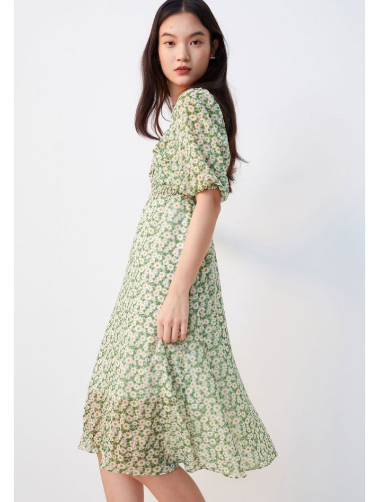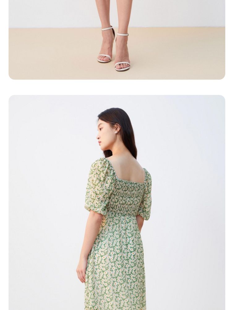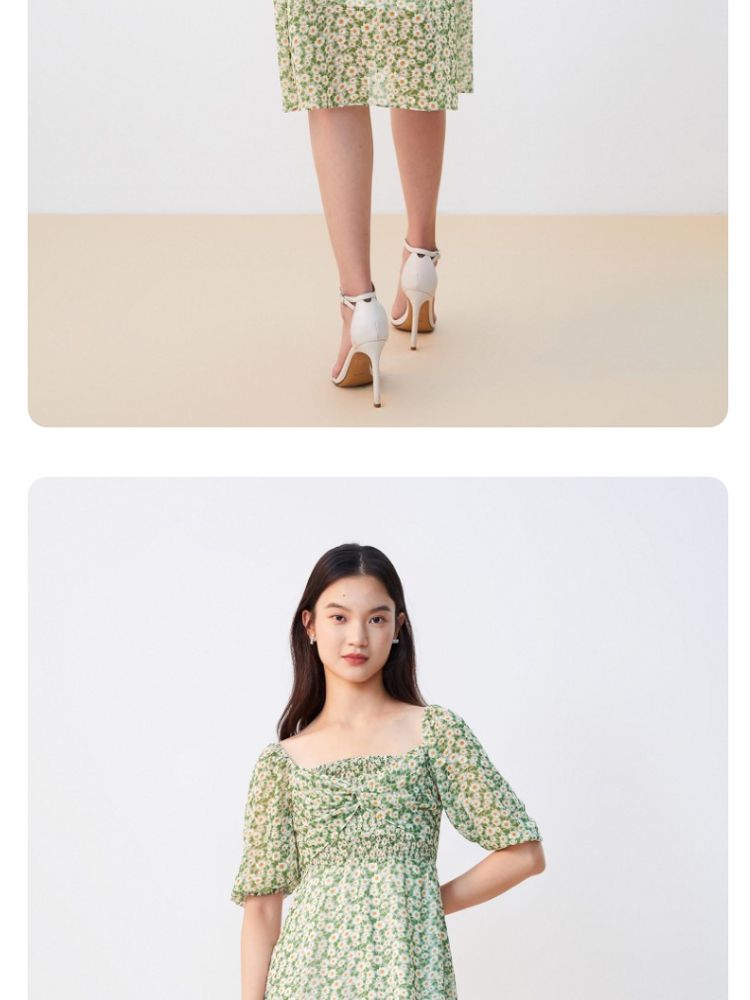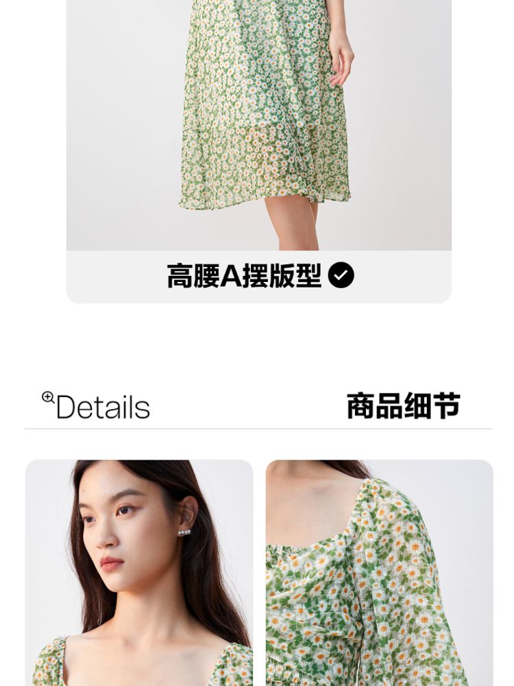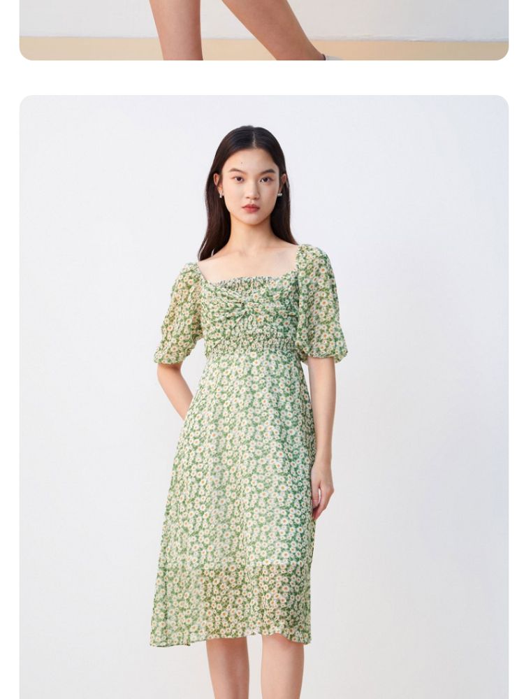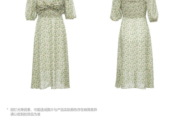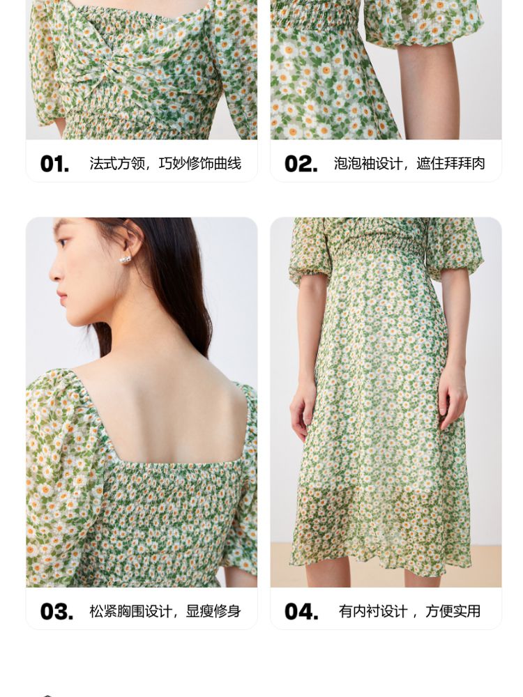 商品名称:【法式优雅】春夏专柜款甜美花朵闪线方领泡泡袖连衣裙百搭时尚 598289