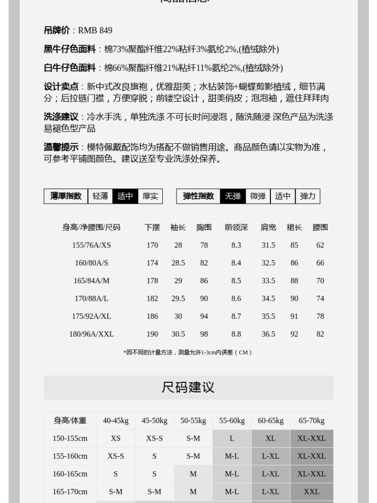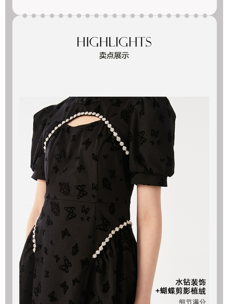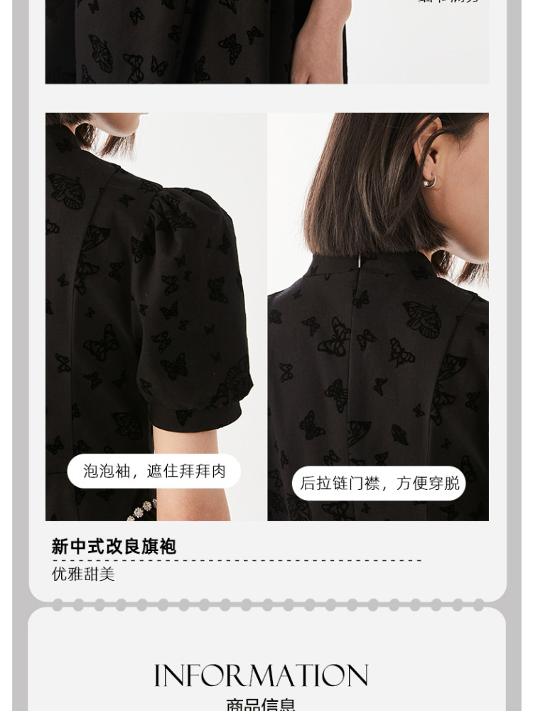 商品名称:【新中式】连衣裙气质新中式改良旗袍镂空A摆泡泡袖 538257