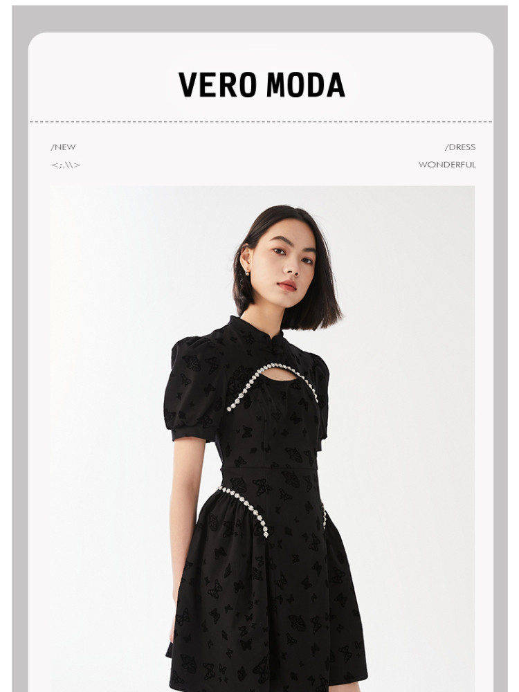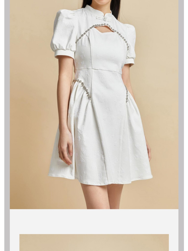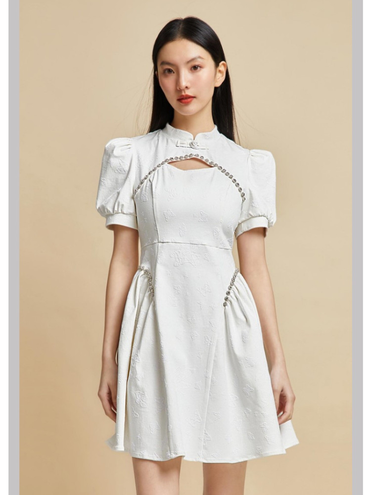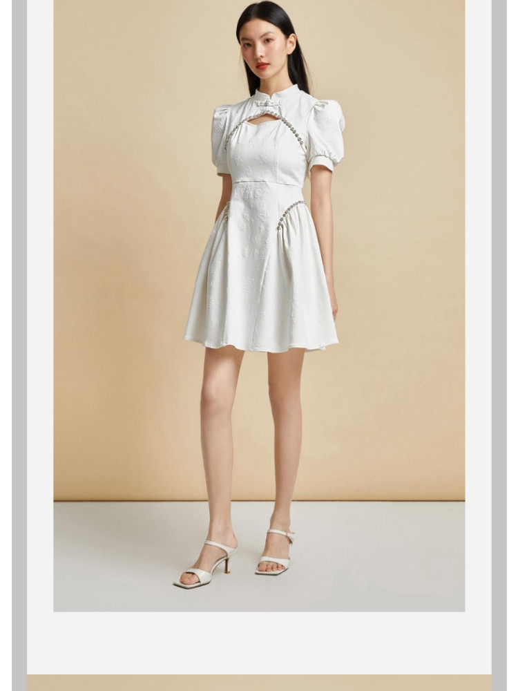 【新中式】连衣裙气质新中式改良旗袍镂空A摆泡泡袖 538257