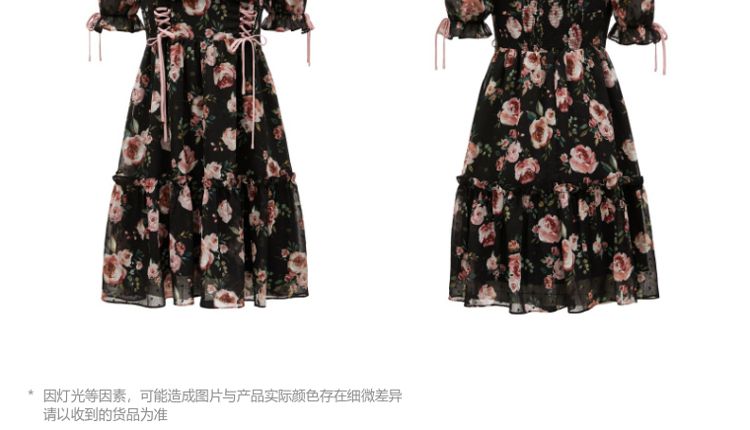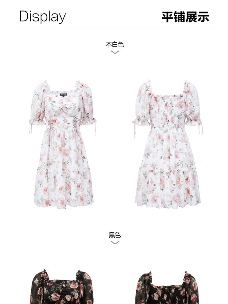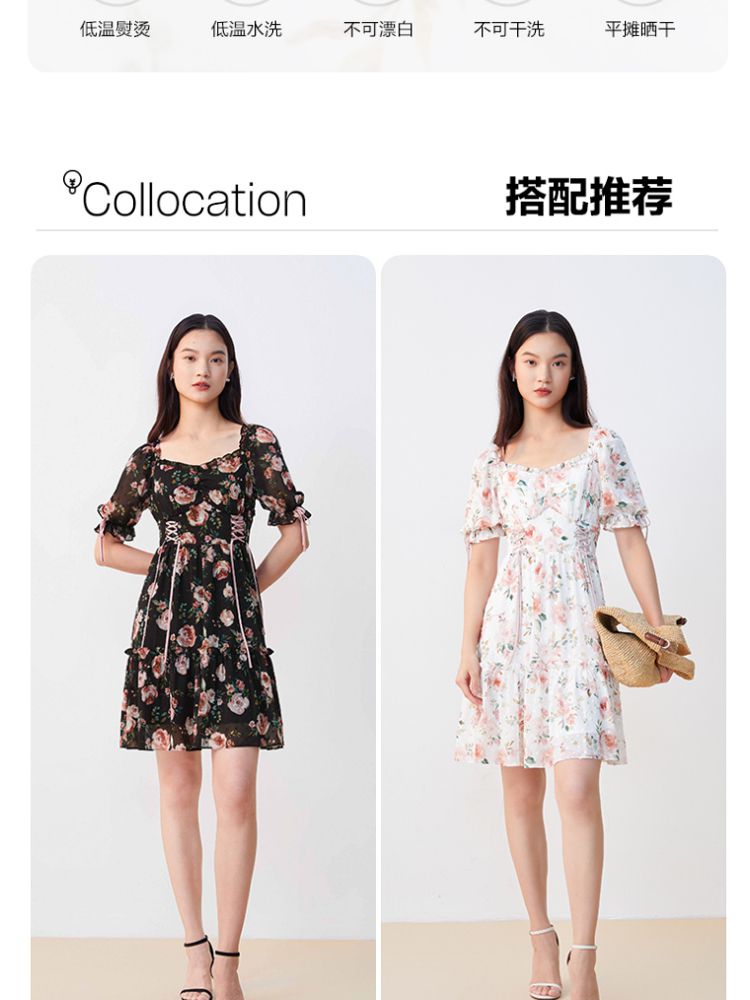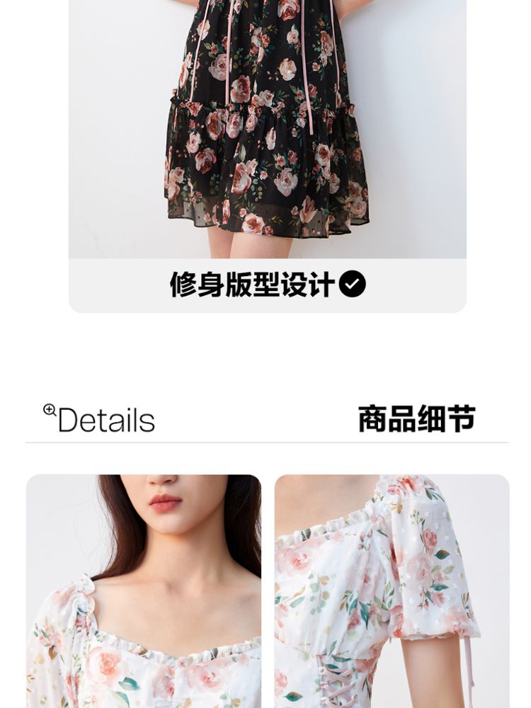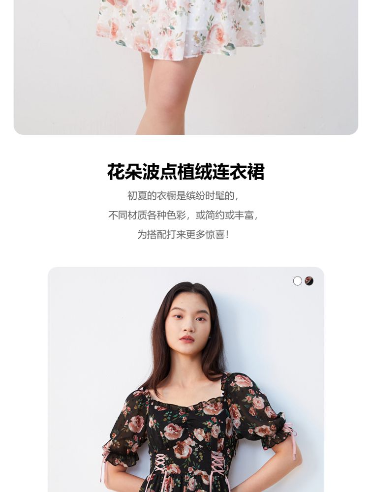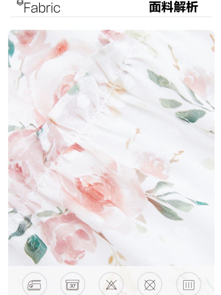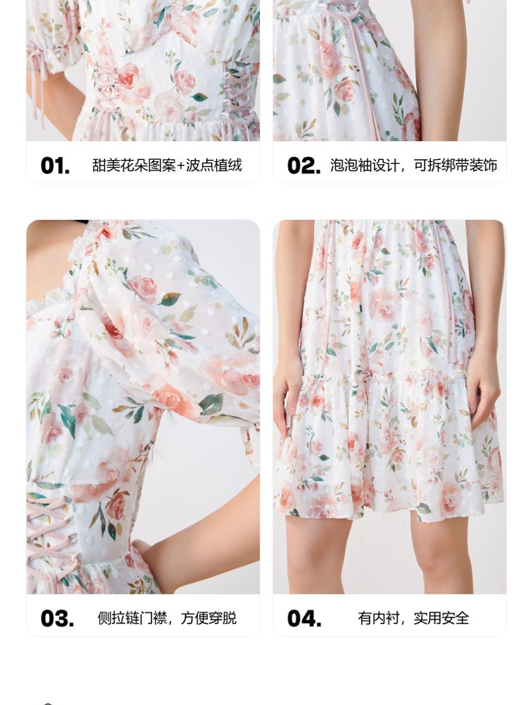 商品名称:【花朵波点】连衣裙夏植绒高级感绑带木耳边泡泡袖甜美度假减龄 287185