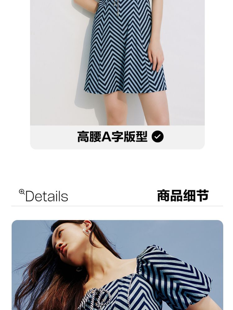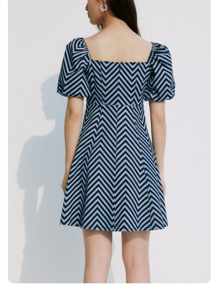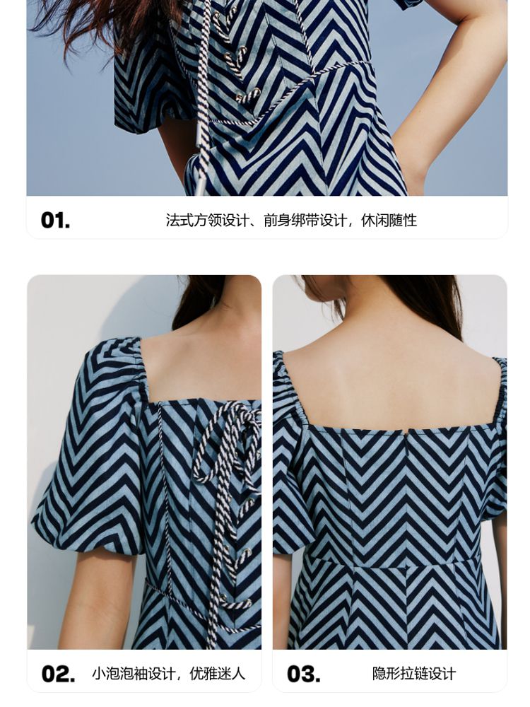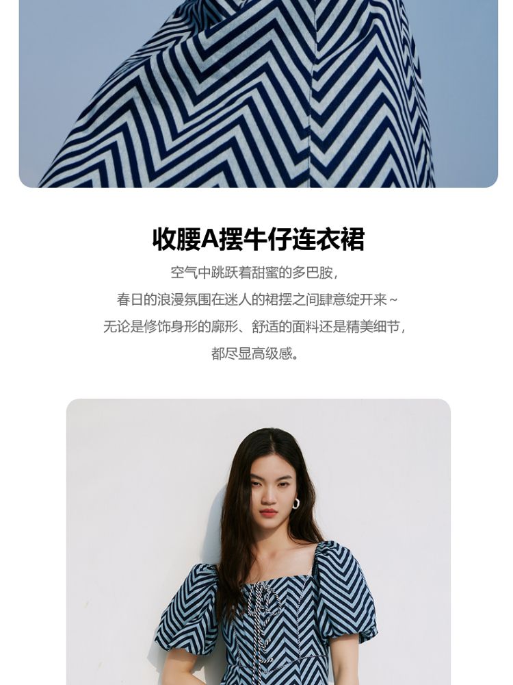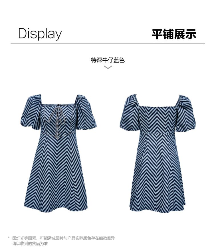 商品名称:【甜美】春夏牛仔方领泡泡袖绑带收腰A摆连衣裙气质百搭时尚 052561
