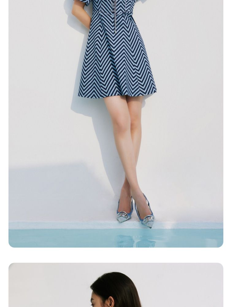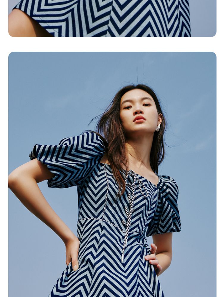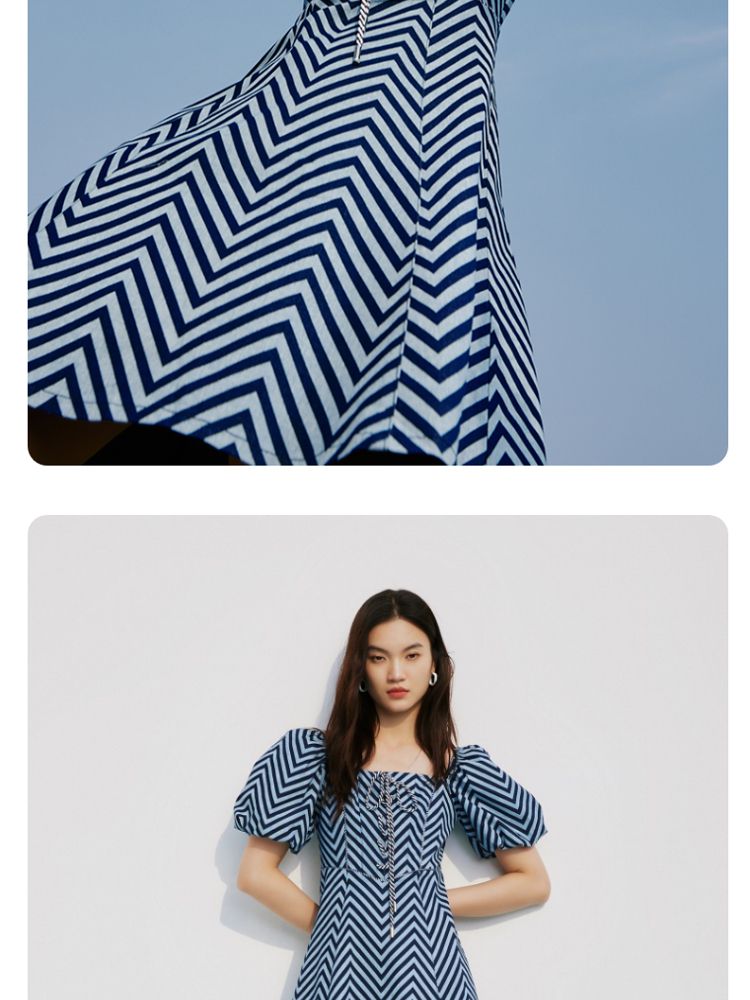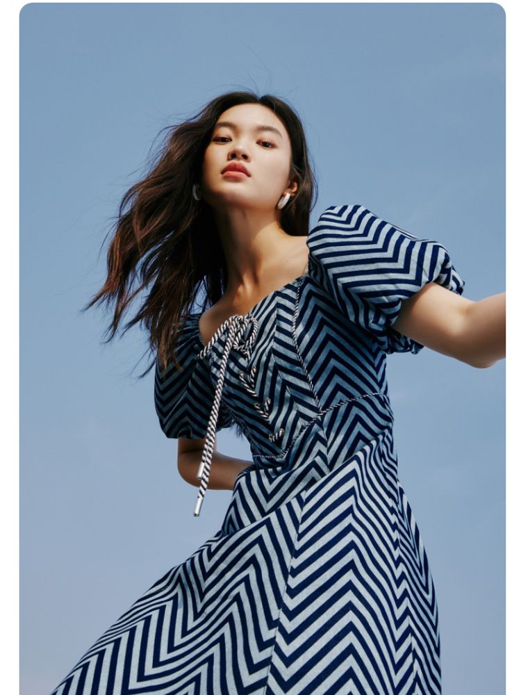 商品名称:【甜美】春夏牛仔方领泡泡袖绑带收腰A摆连衣裙气质百搭时尚 052561