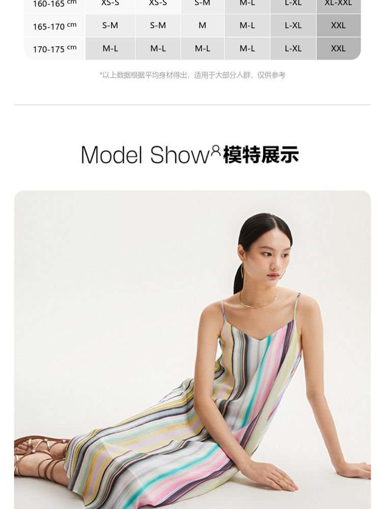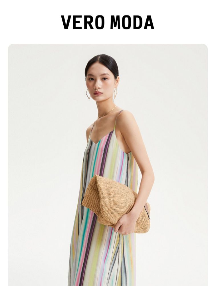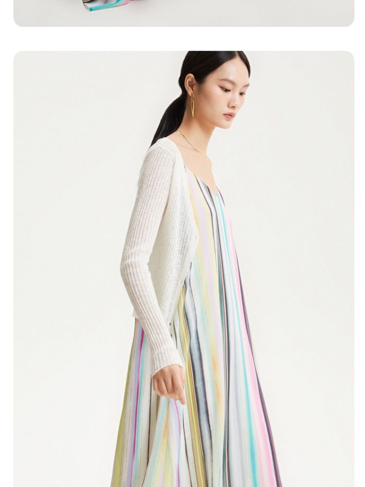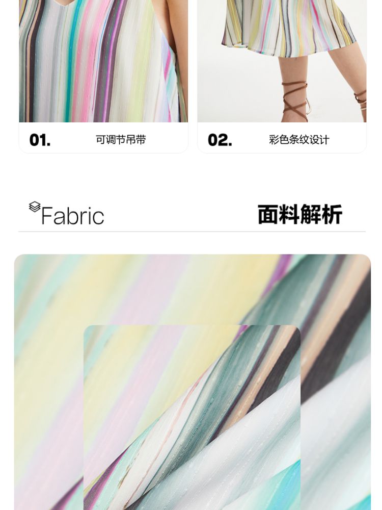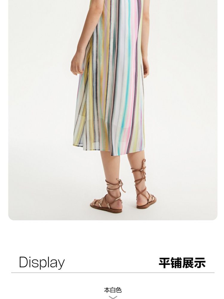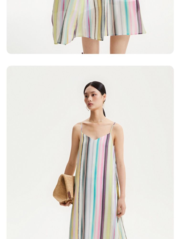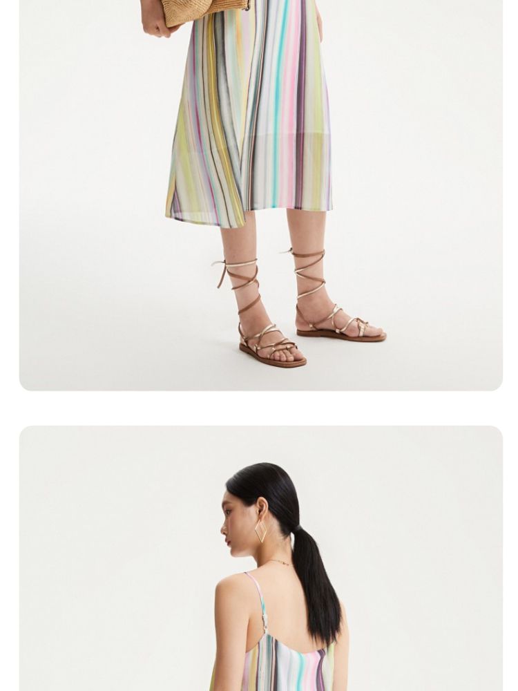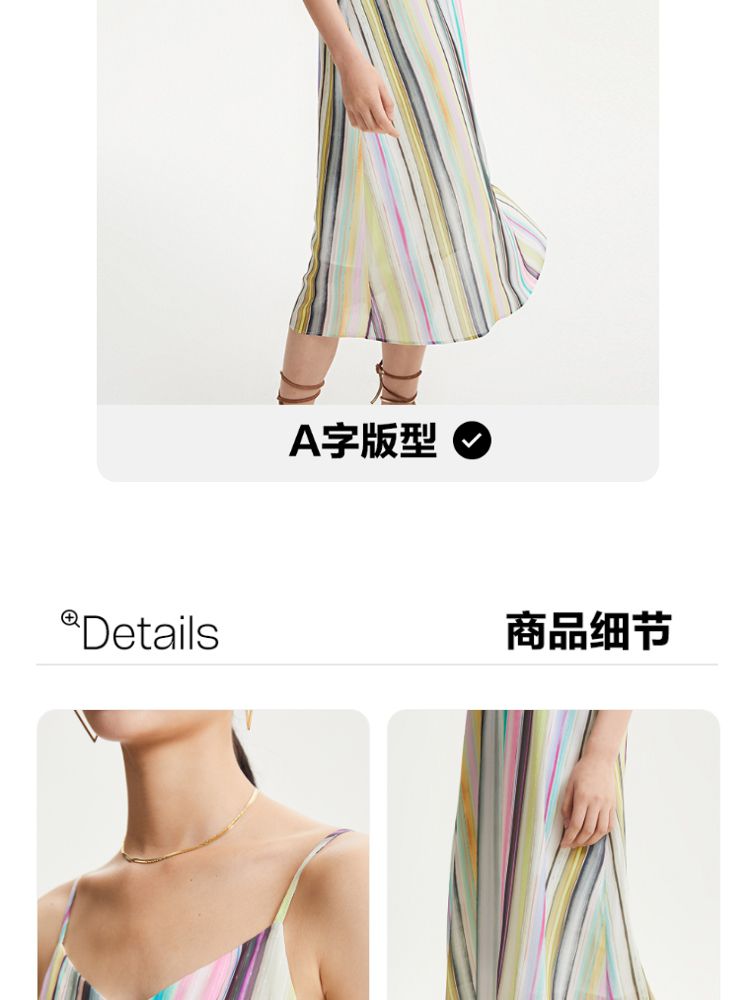 商品名称:【肌理感彩色条纹】春夏专柜款A字中长裙吊带度假连衣裙百搭时尚 390545