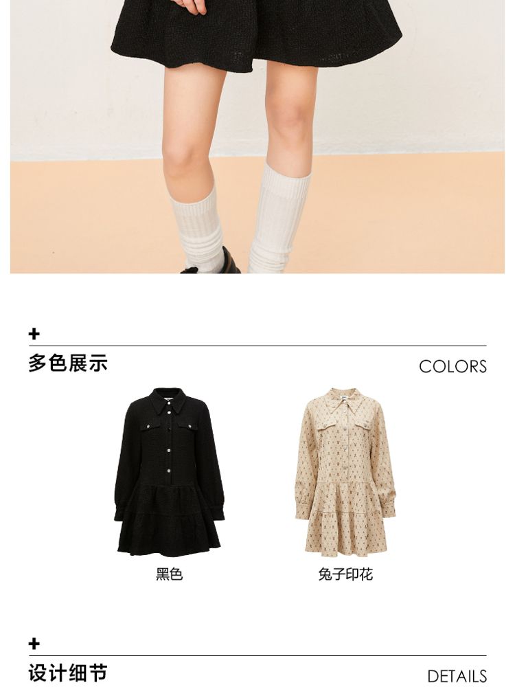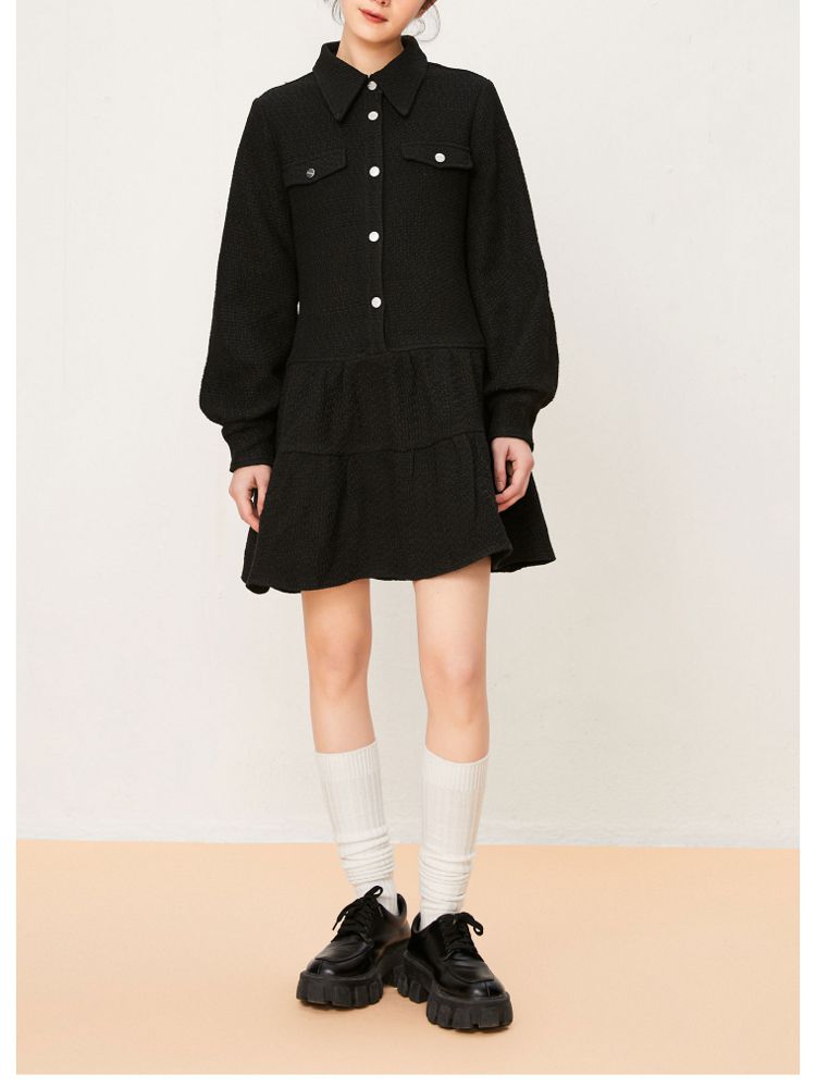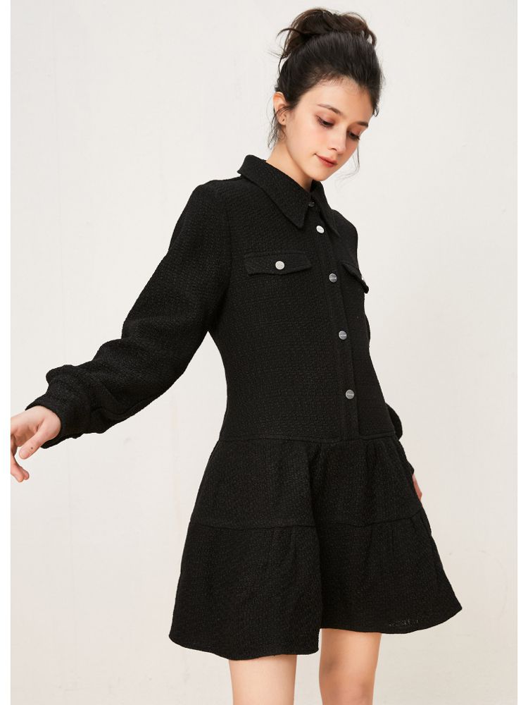 商品名称:【时尚潮流】夏季休闲翻领长袖短款连衣裙女 007322