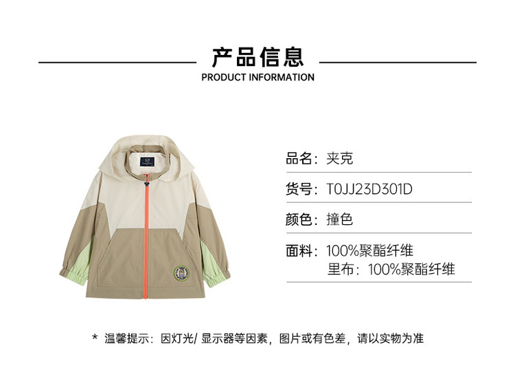 商品名称:小熊童装男宝宝夏季运动撞色连帽夹克 006209