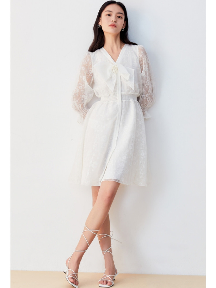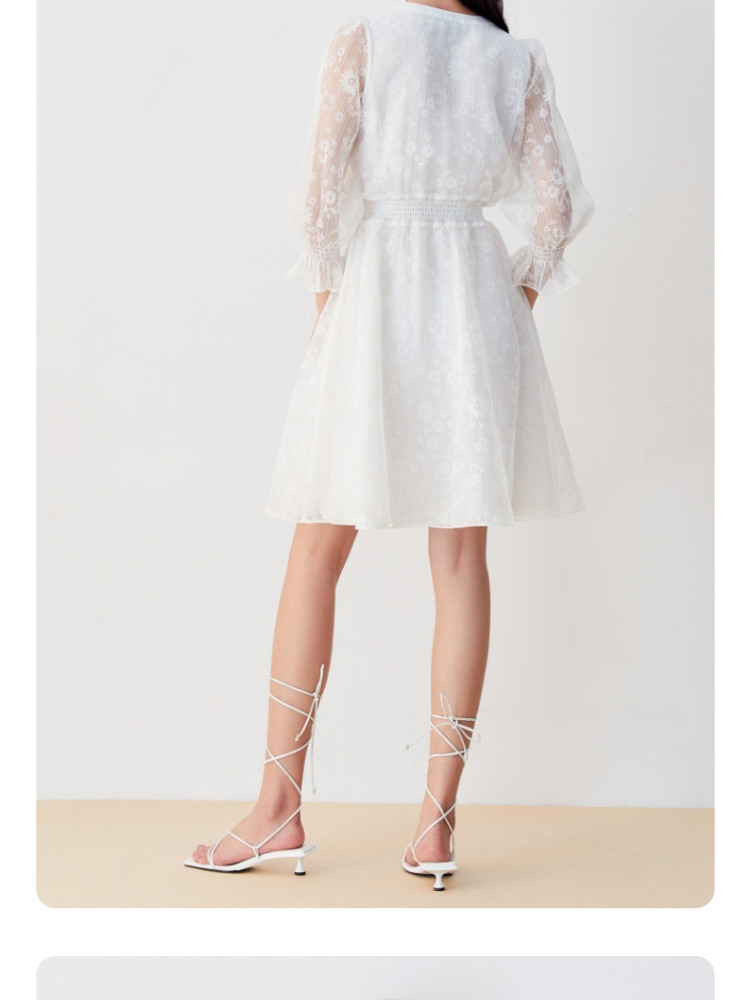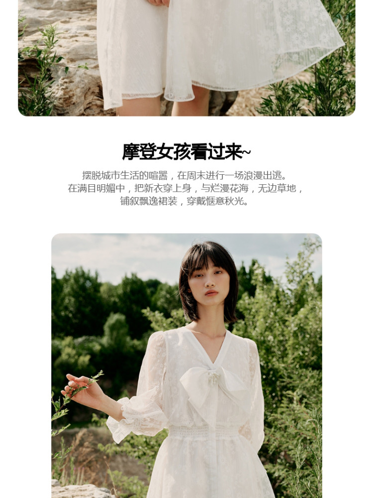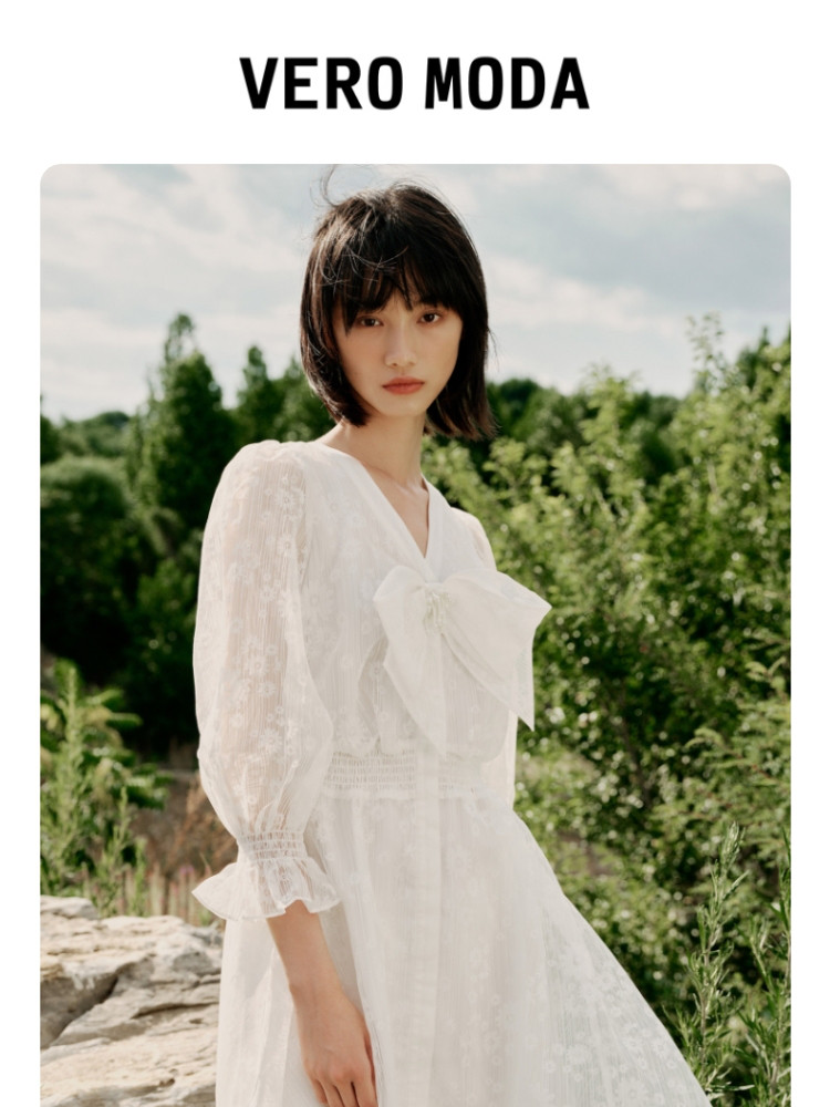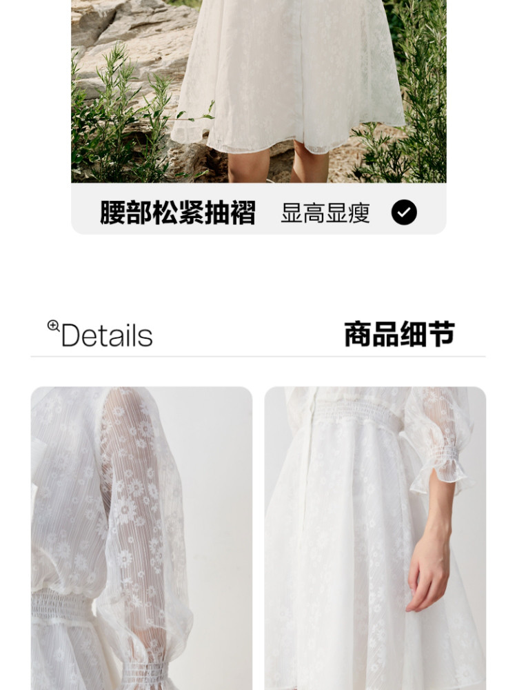 商品名称:【专柜款】春夏甜美高级感V领蕾丝七分袖连衣裙气质百搭时尚 533905