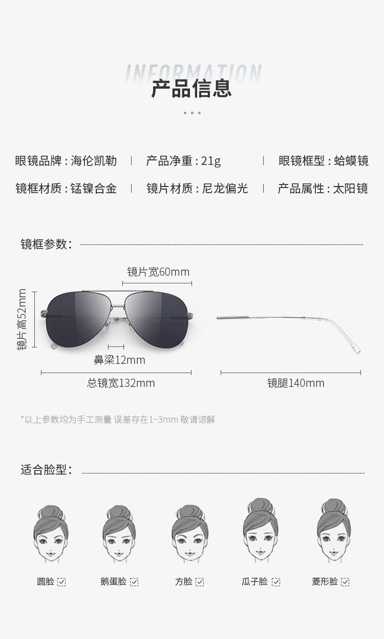 镜面宽度:132mm;镜片高度:52mm;鼻距:12mm;