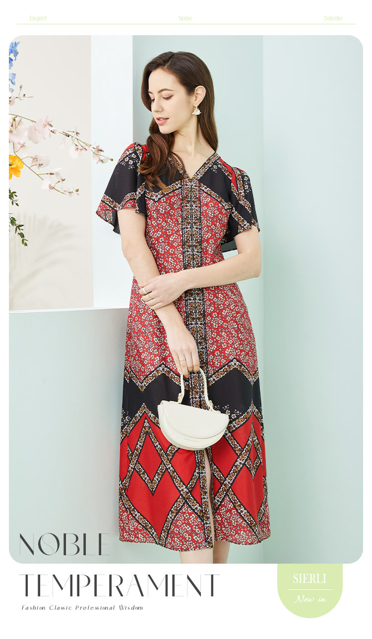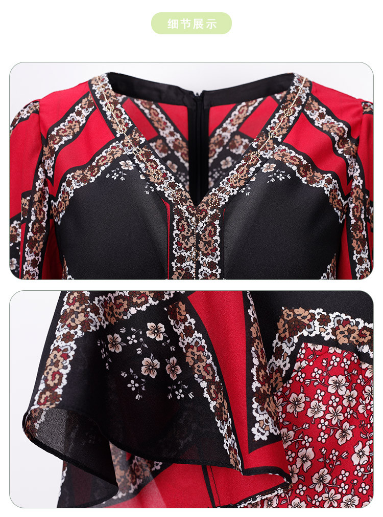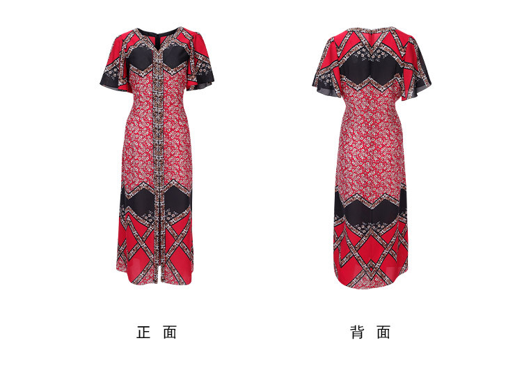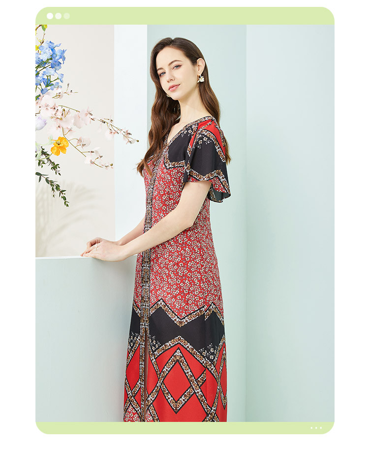 商品名称:商场同款秋季古烂漫小碎花印花V领拼接色显瘦短袖连衣裙 040095