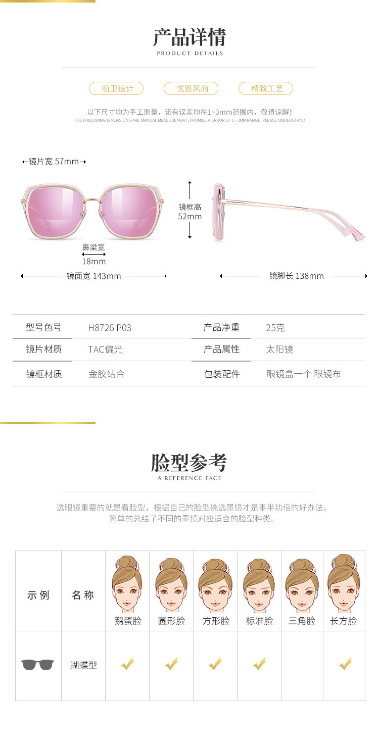 商品名称:海伦凯勒专柜同款眼镜简约优雅墨镜大框偏光女士太阳镜 823387