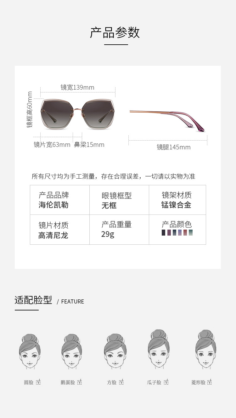 商品名称:海伦凯勒眼镜太阳镜女时尚明星同款墨镜女韩版潮大框太阳镜 165531