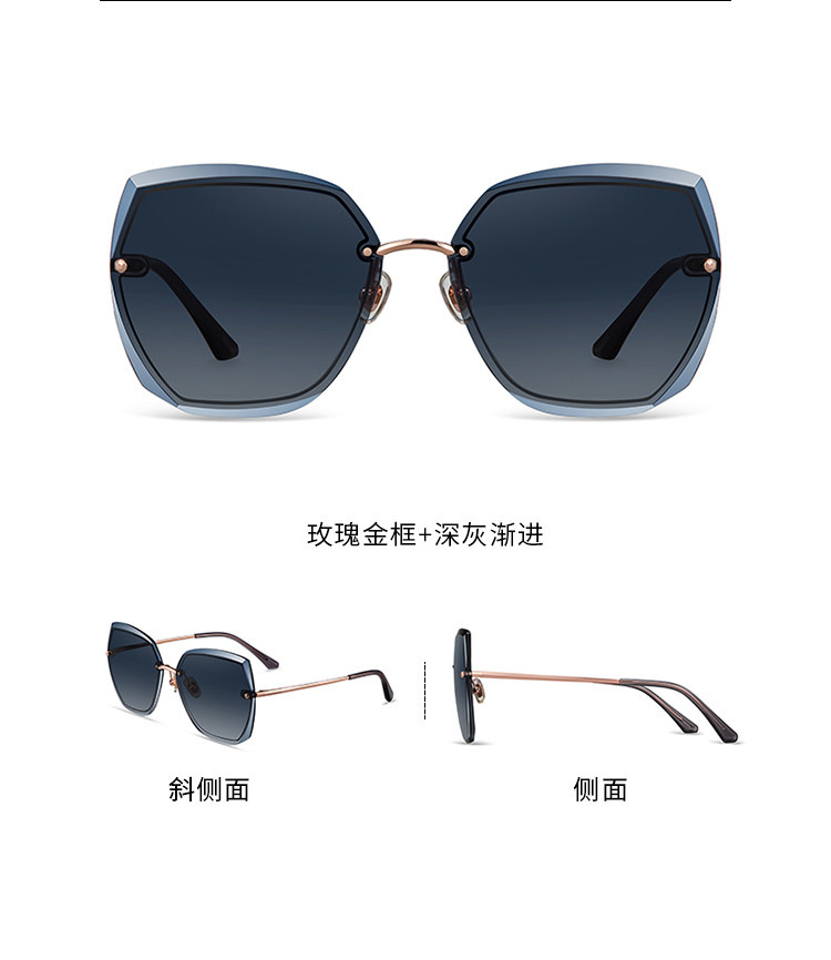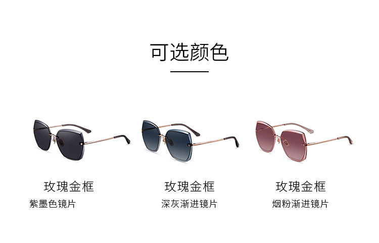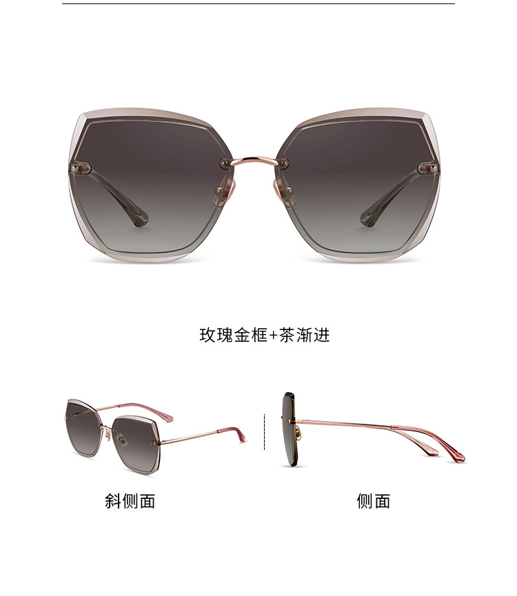 玫瑰金框+茶渐进镜片(不偏光)